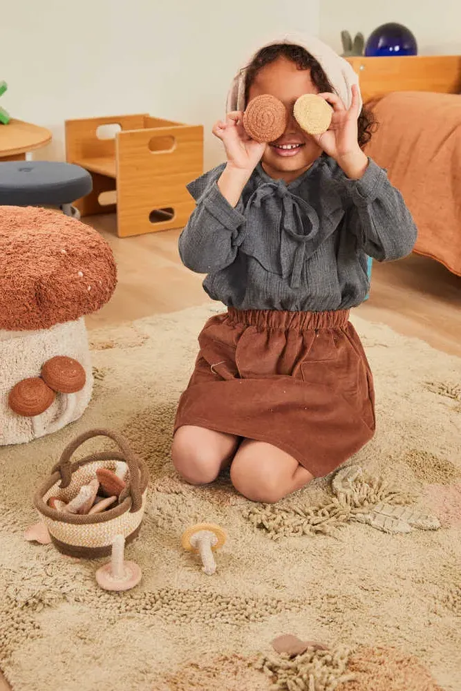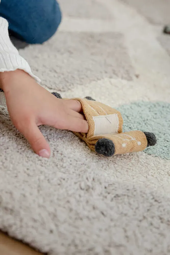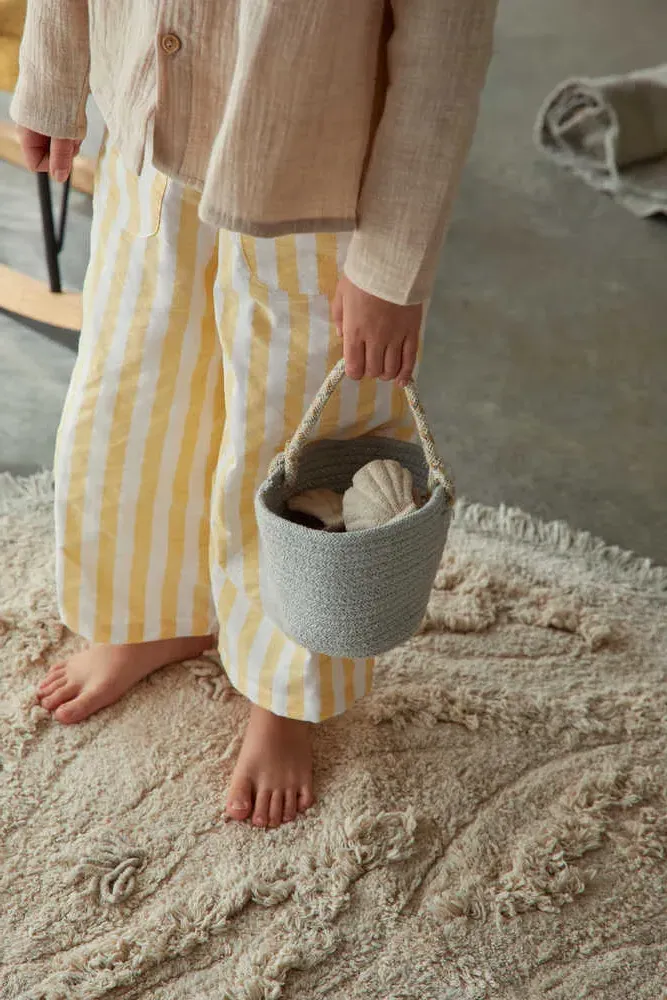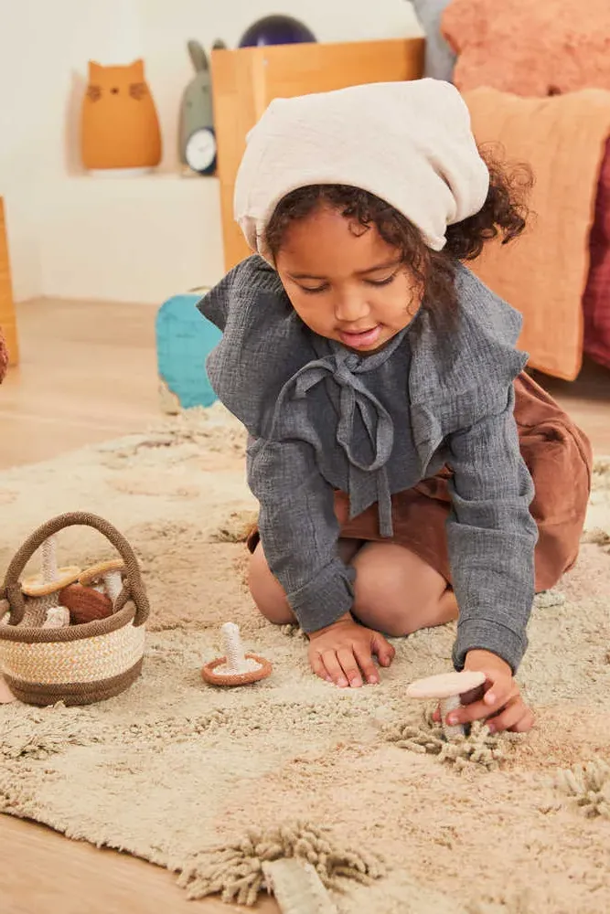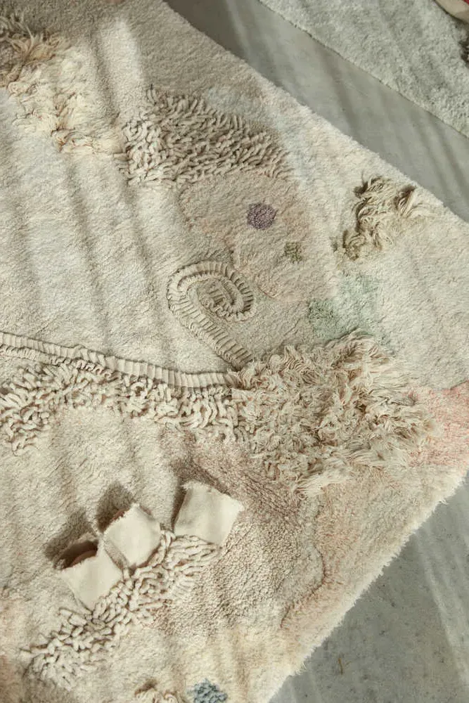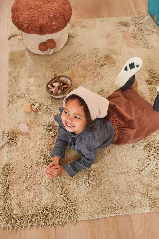 The Play Rug Ocean is the perfect playtime companion for your little ones. Made with eco-friendly materials, this cotton rug features a design that imitates the depths of the ocean. It also comes with three adorable handcrafted textile accessories for your child to play with - a toy boat, a dolphin, and a desert island playset. Your child can let their imagination run wild as they sail the seas, jump over waves with the dolphin, and explore the island. • Lightweight: flexible design that makes the rug easily machine washable without sacrificing quality. • Long Lasting: high-quality natural fibers to ensure maximum durability. It will grow with the families. • Rugcycled base made from leftovers from our own production