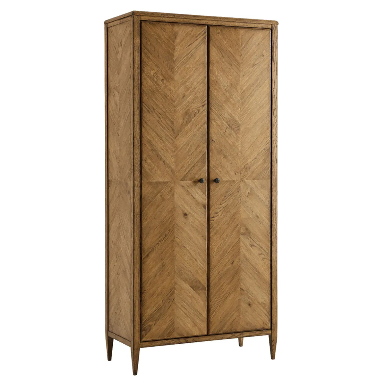 22 inches high x 28 inches wide x 20 inches deep. Constructed from oak wood and oak veneer. Finished in dawn.