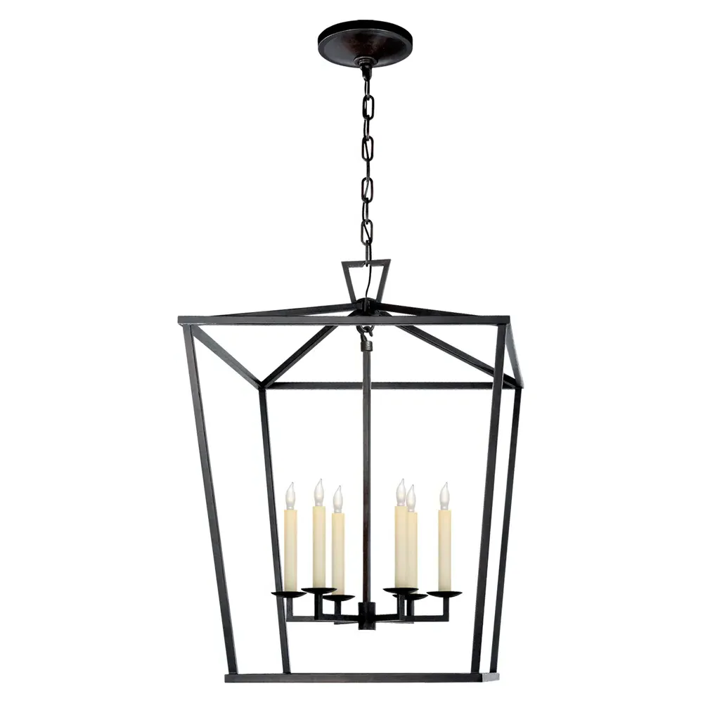 Visual Comfort Signature Collection. Overall Size: 14" high x 9.75" wide x 9.75" deep. Max Hanging Length: 86". Canopy: 5.5" Round; Chain Length: 6'. Finished In Aged Iron.