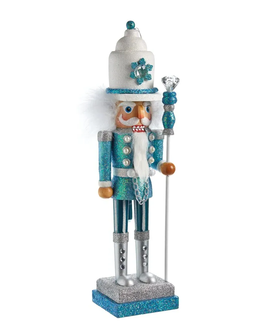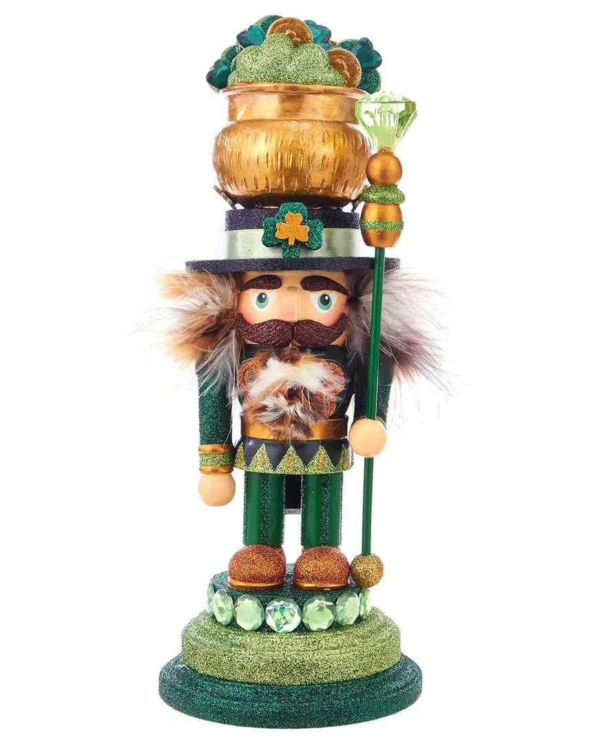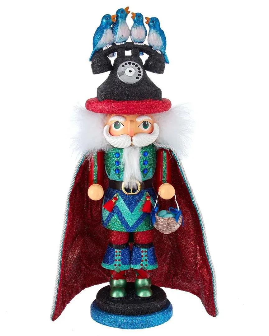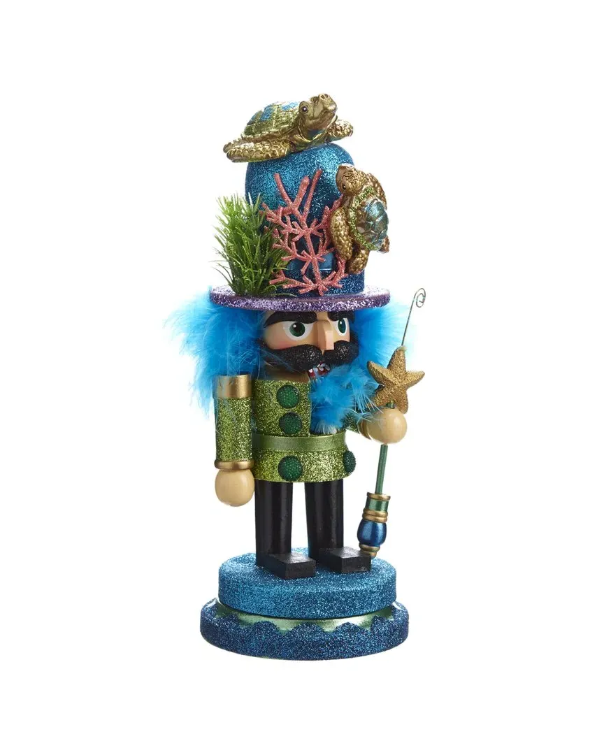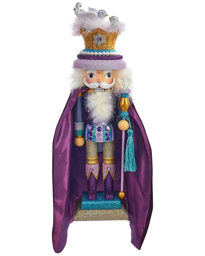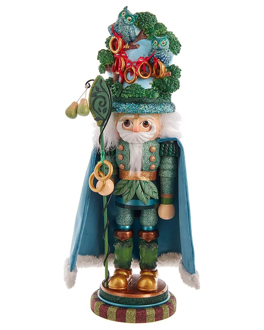 The Hollywood Nutcrackers Nutcracker provides traditional holiday appeal with its rich green finish and solid wood construction. Its compact design features feather accents and detailed paint work, while the durable wood materials ensure seasonal durability. The decorative piece combines classic nutcracker styling with festive green coloring. W8 x D6 x H23 cm.