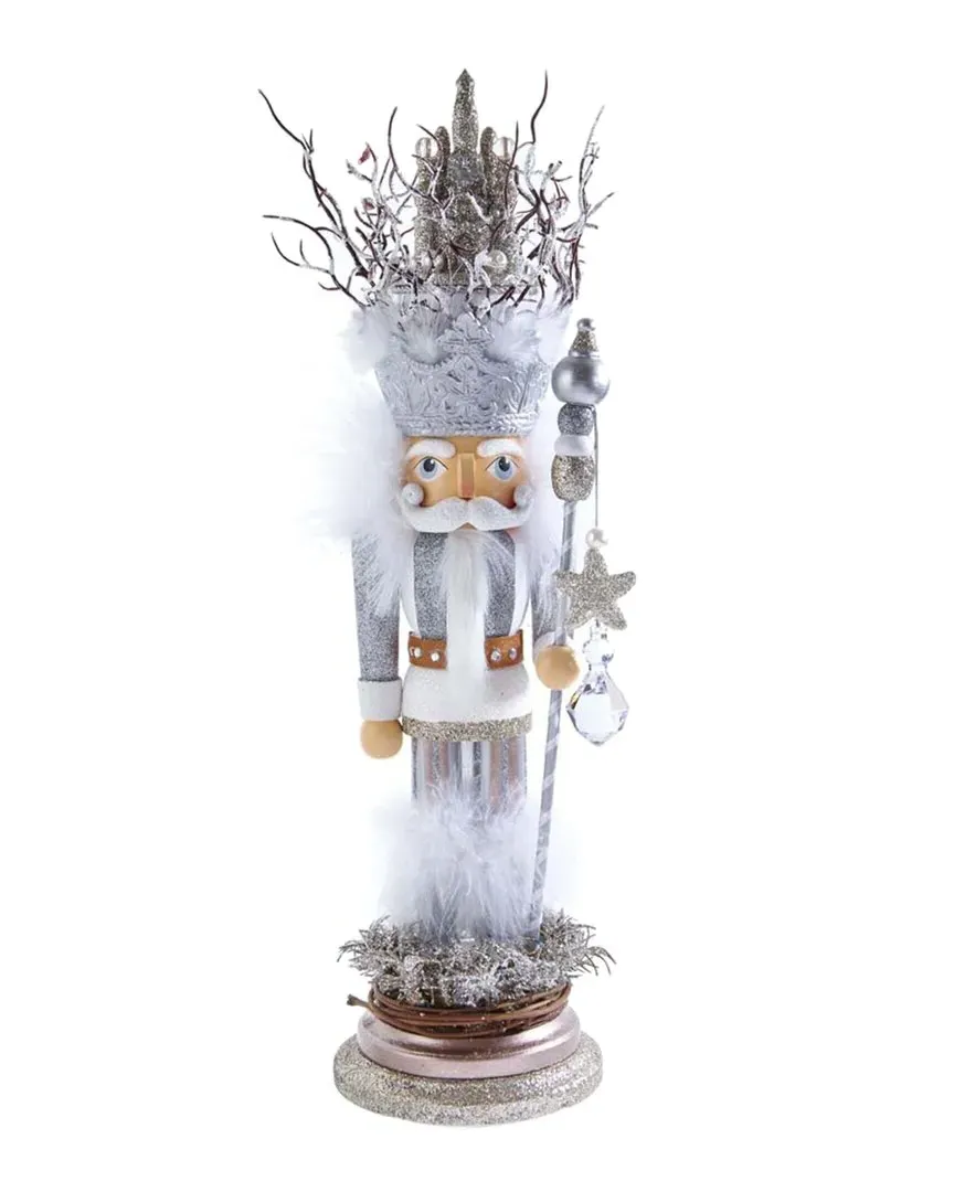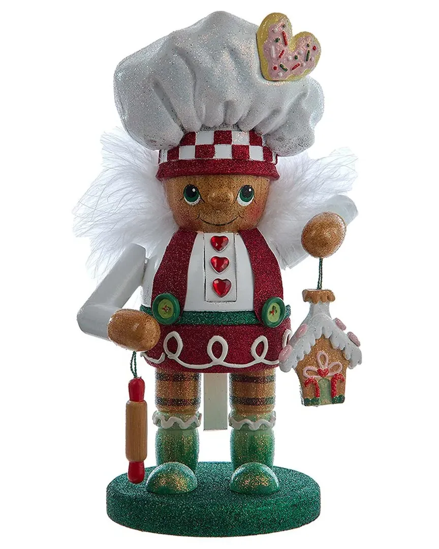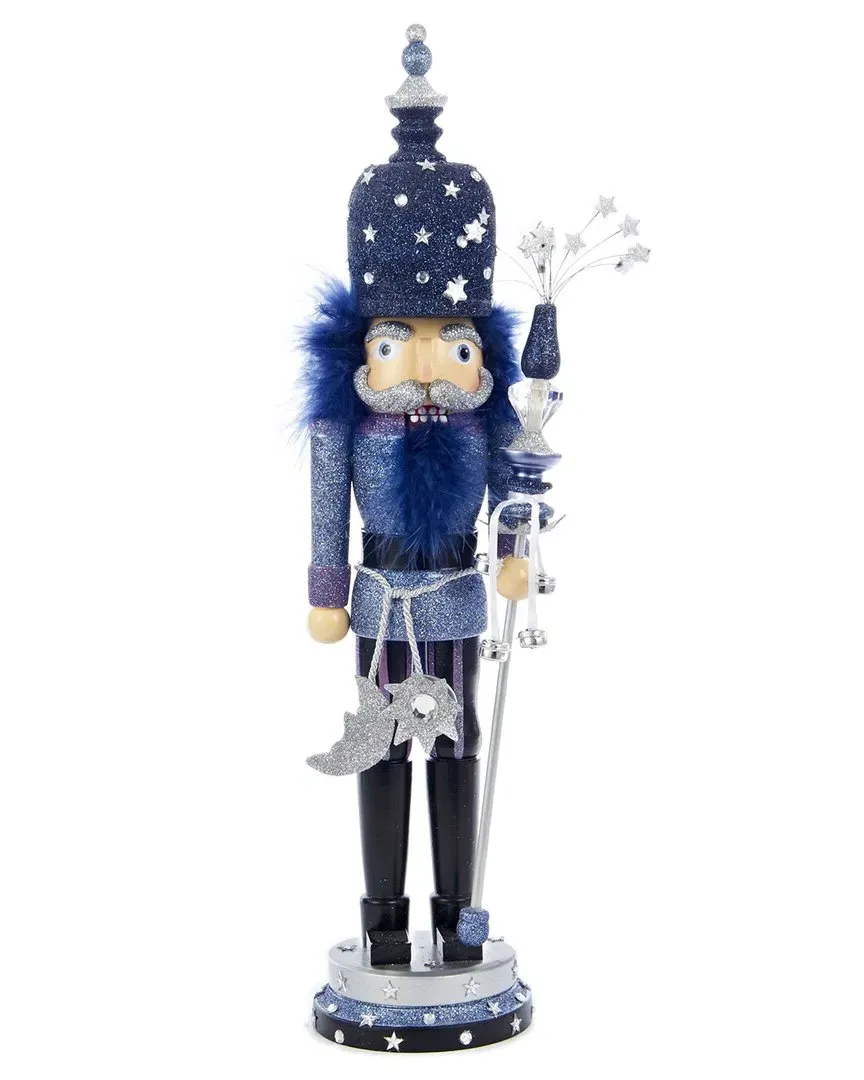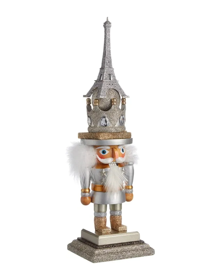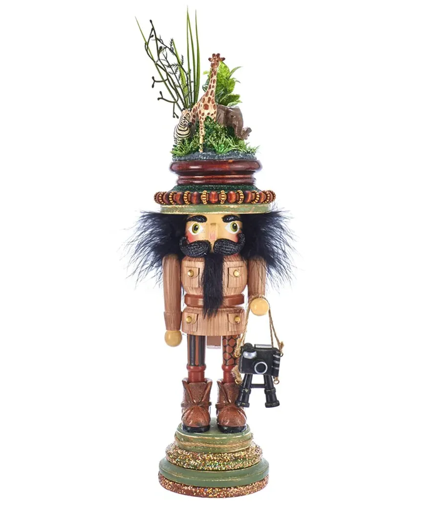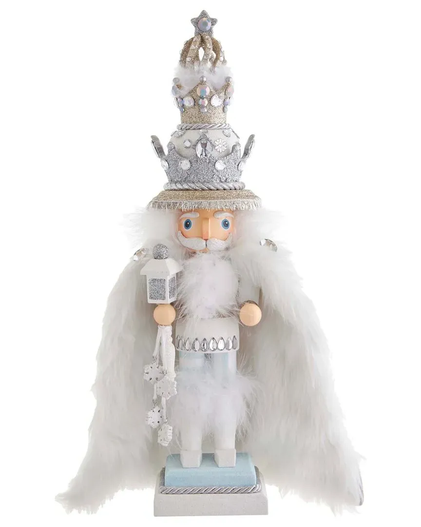 The Hollywood Nutcrackers Nutcracker provides traditional holiday appeal with its rich green finish and solid wood construction. Its compact design features feather accents and detailed paint work, while the durable wood materials ensure seasonal durability. The decorative piece combines classic nutcracker styling with festive green coloring. W8 x D6 x H23 cm.