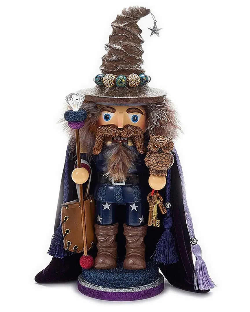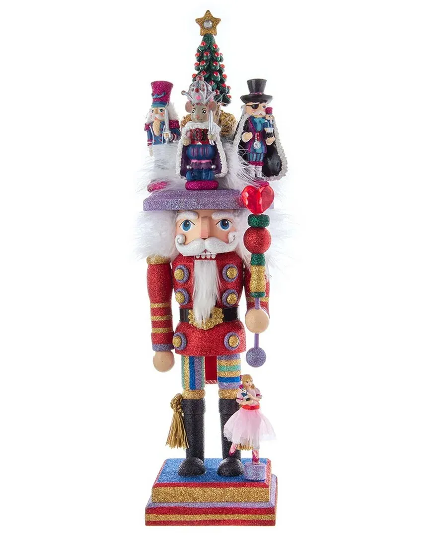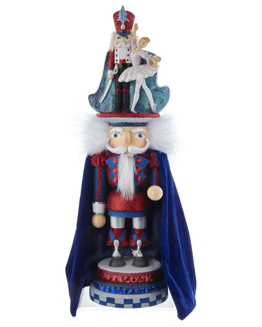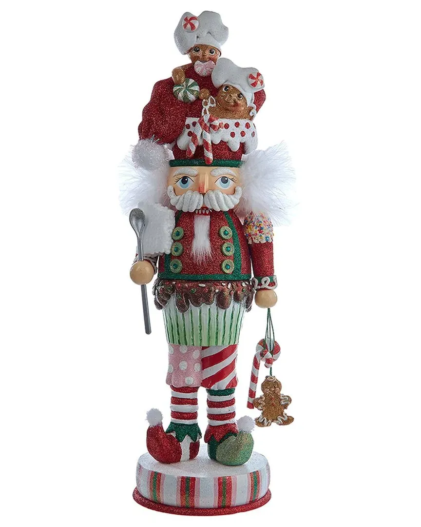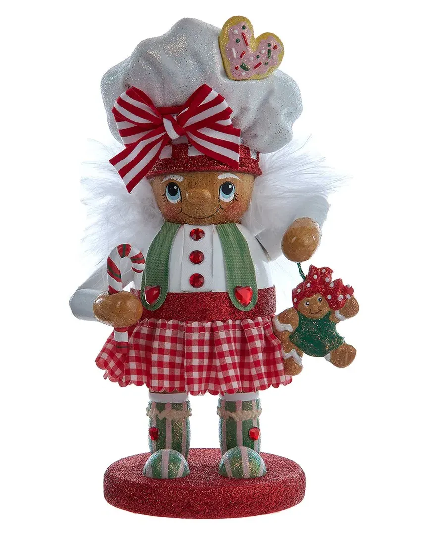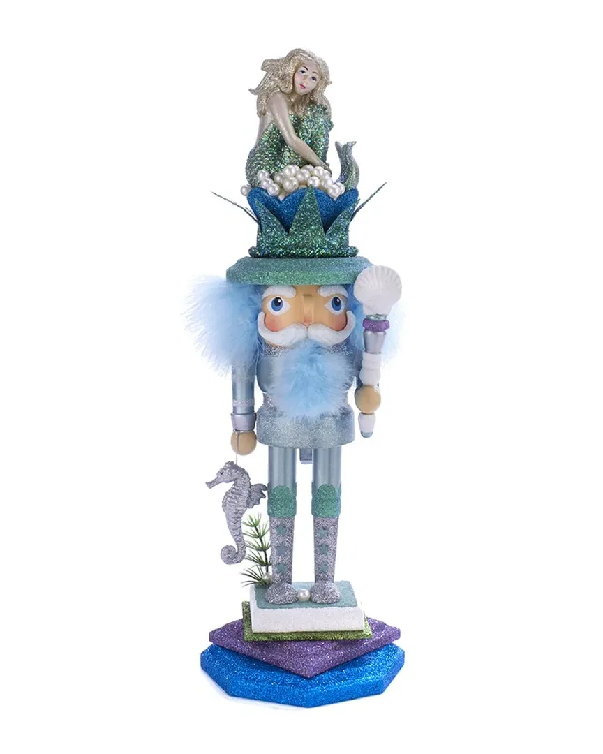 The Hollywood Nutcrackers Nutcracker provides traditional holiday appeal with its rich green finish and solid wood construction. Its compact design features feather accents and detailed paint work, while the durable wood materials ensure seasonal durability. The decorative piece combines classic nutcracker styling with festive green coloring. W8 x D6 x H23 cm.