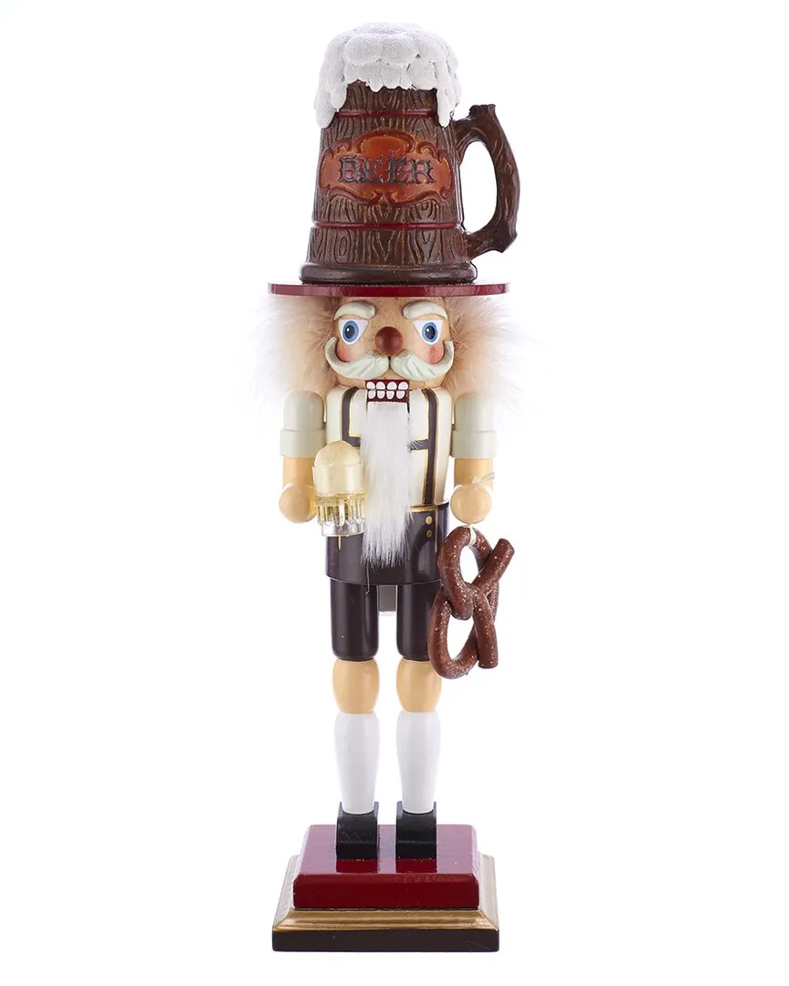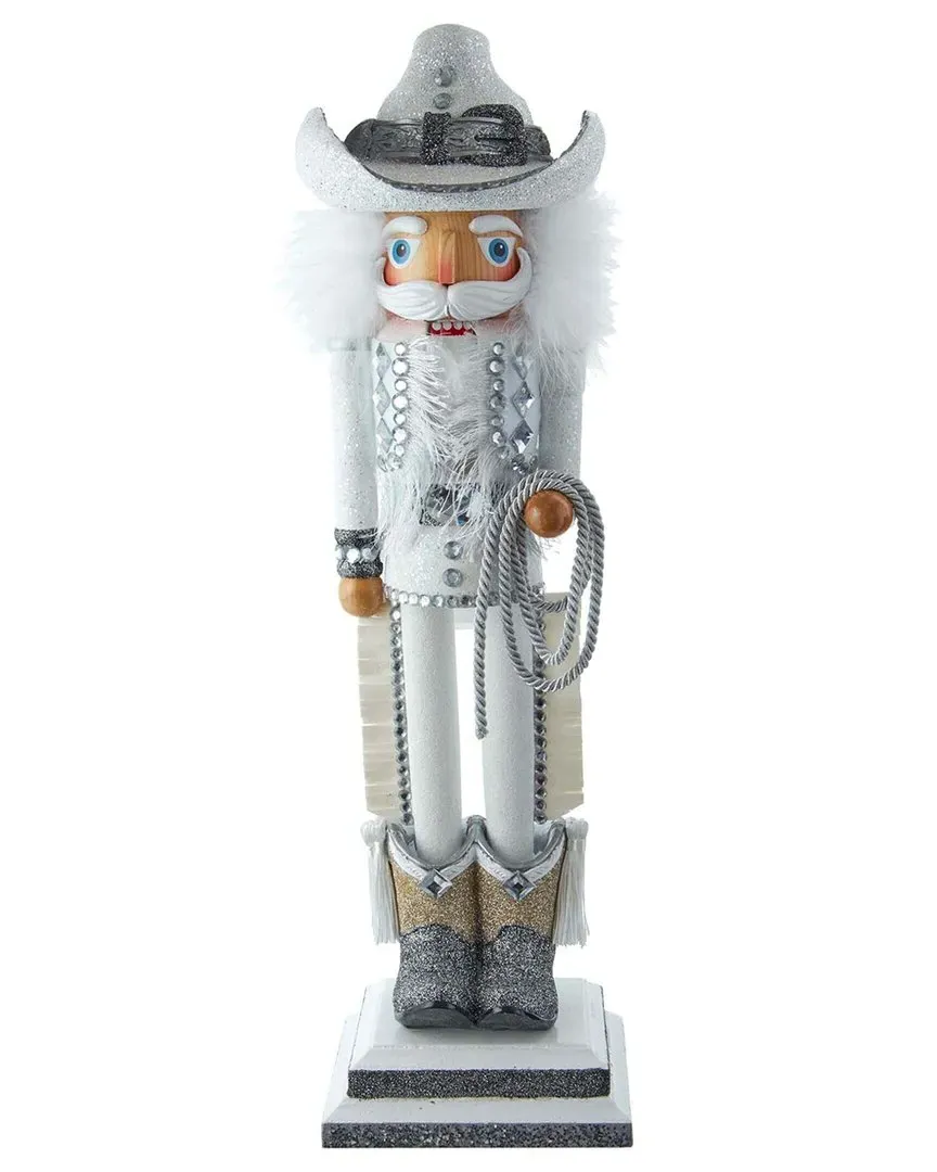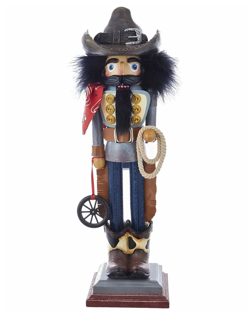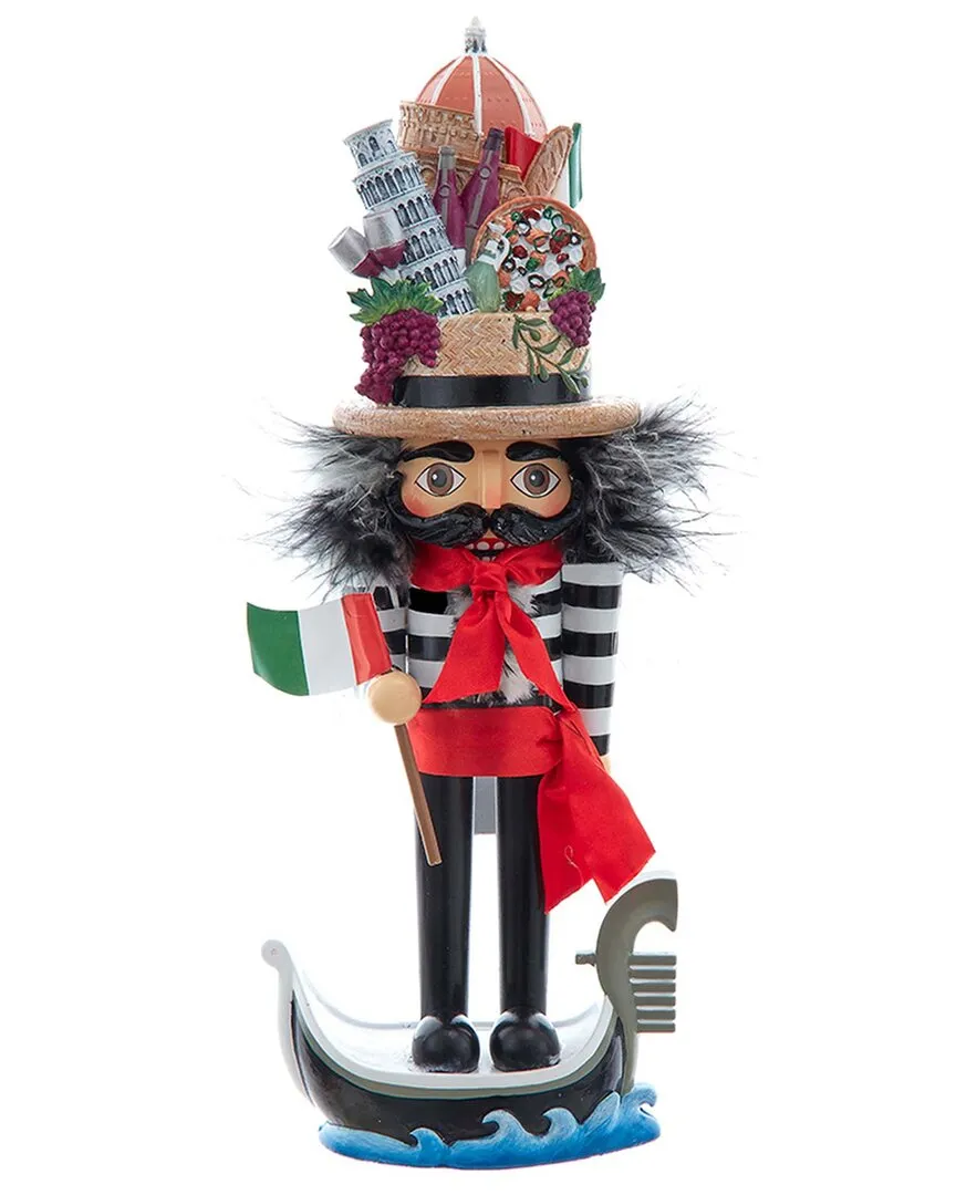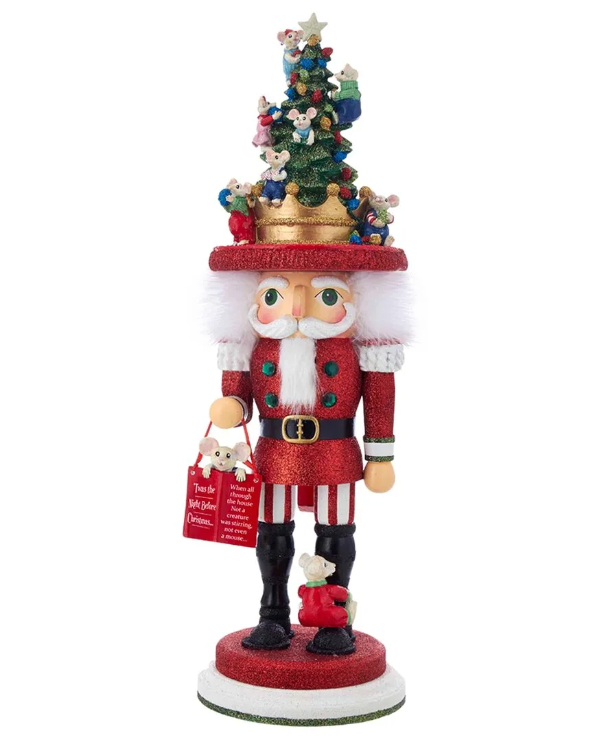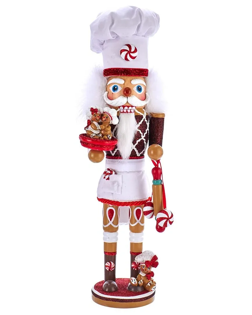 The Hollywood Nutcrackers Nutcracker provides traditional holiday appeal with its rich green finish and solid wood construction. Its compact design features feather accents and detailed paint work, while the durable wood materials ensure seasonal durability. The decorative piece combines classic nutcracker styling with festive green coloring. W8 x D6 x H23 cm.