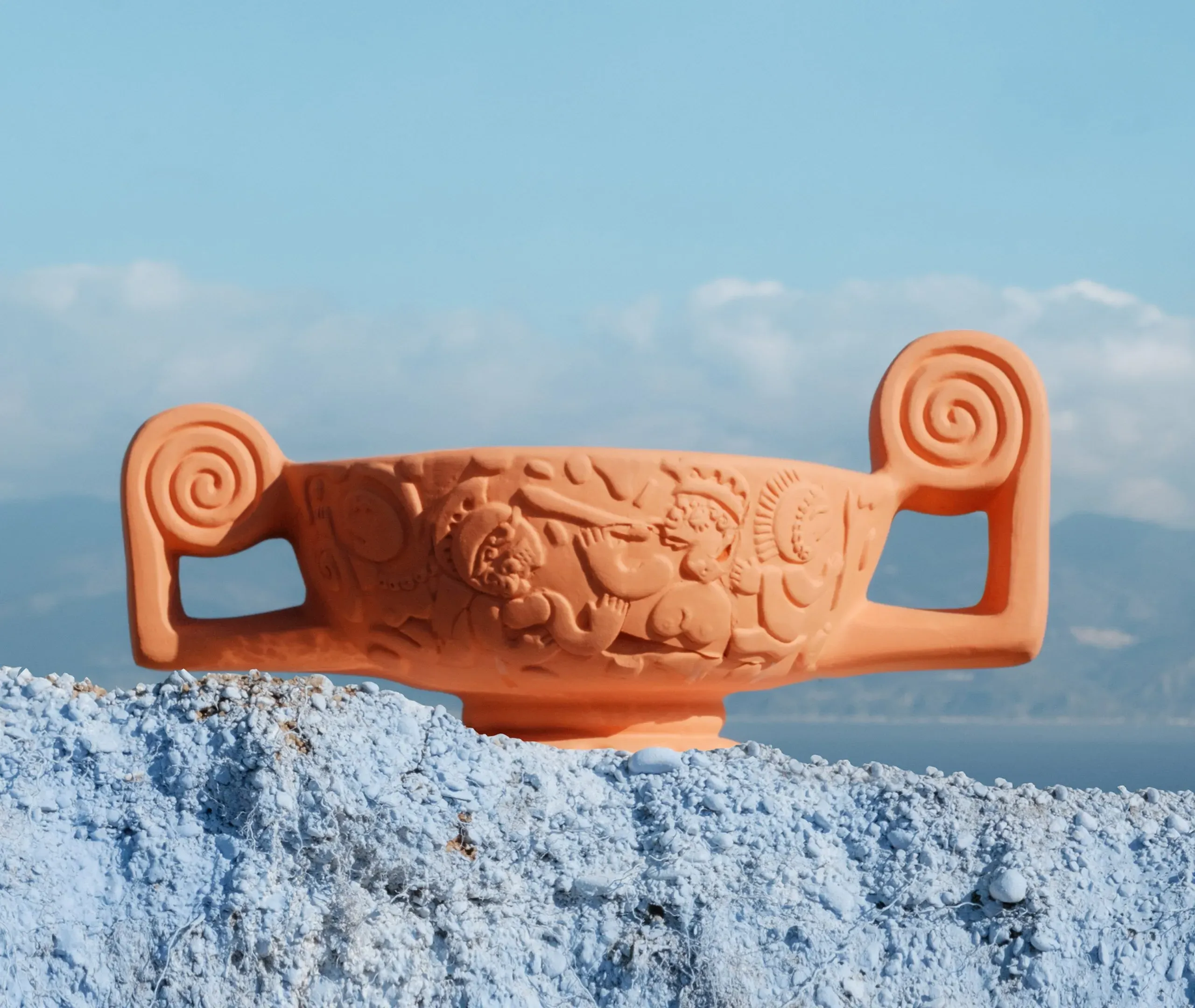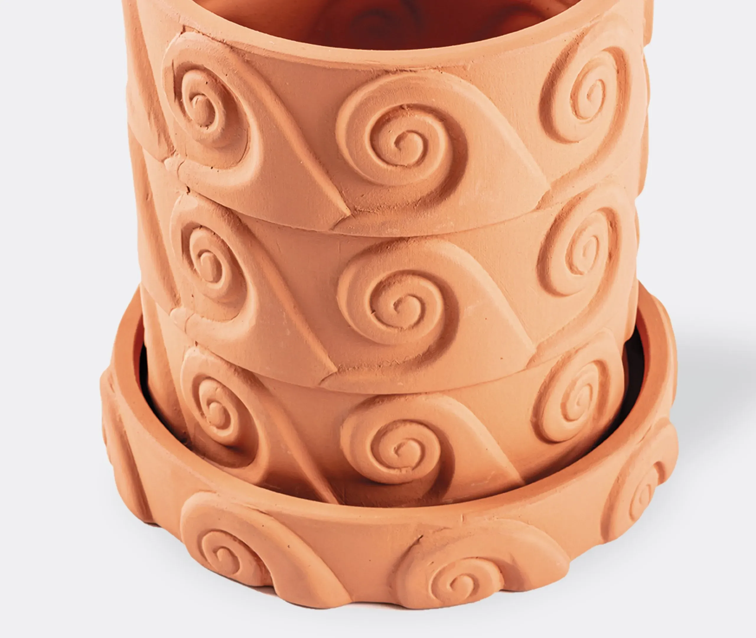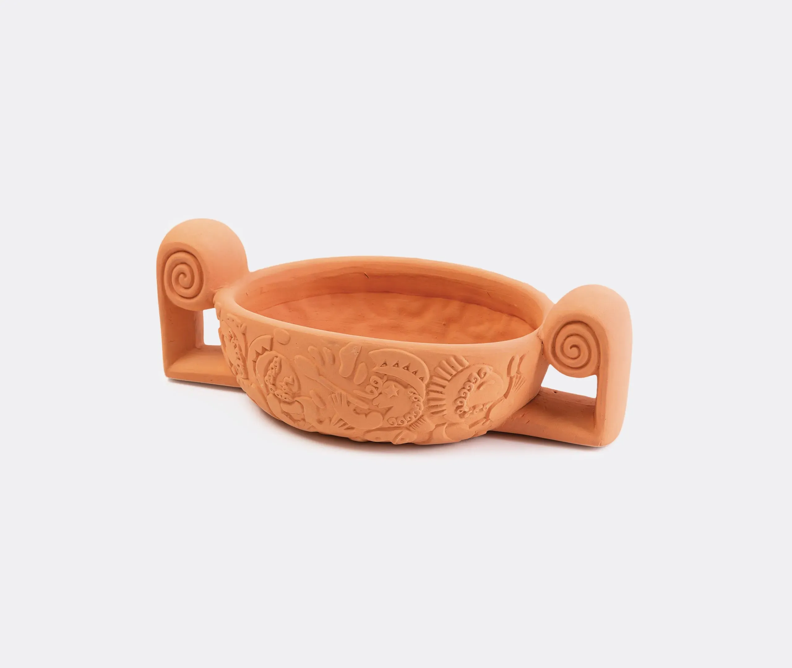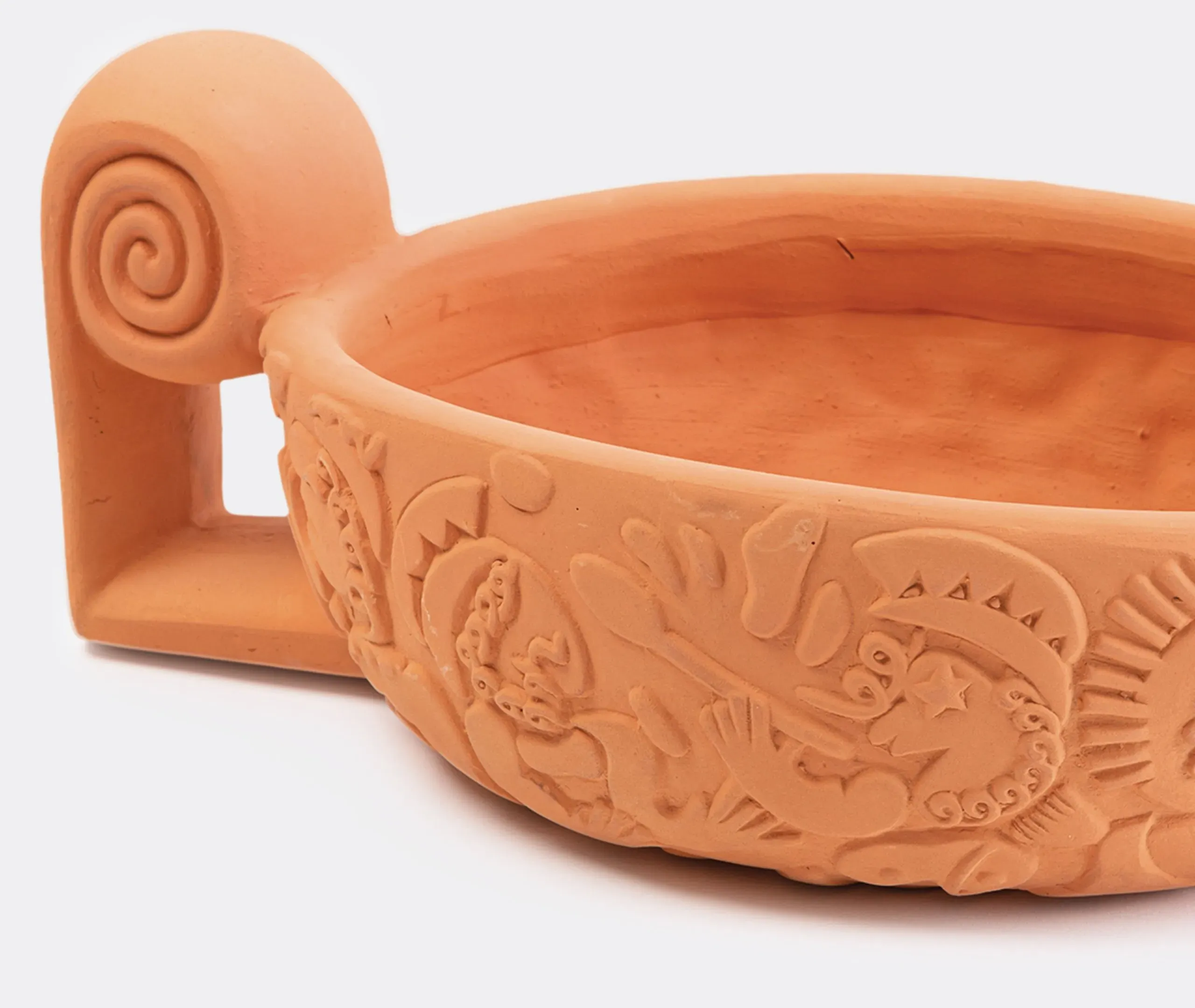 Created for outdoor spaces, such as terraces and gardens, as well as living rooms and entrance halls, Antonio Aricò's 'Magna Graecia' collection for Seletti harks to the world of ancient Greece for a deeply rooted sense of Mediterranean tradition. Crafted from terracotta — a universally recognized material and long associated with southern European aesthetics — the whimsical 'Greche' ashtray is sculpted with a geometric pattern that nods to Doric and Ionic motifs, but through a contemporary lens.