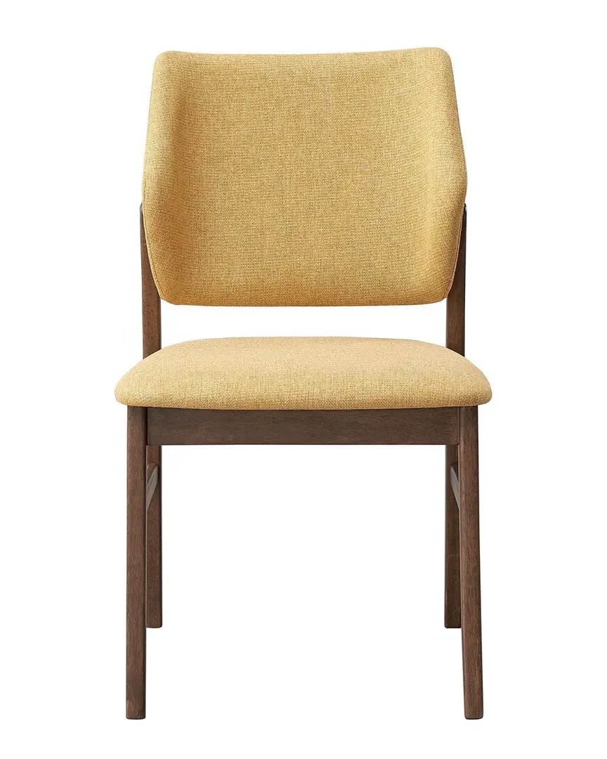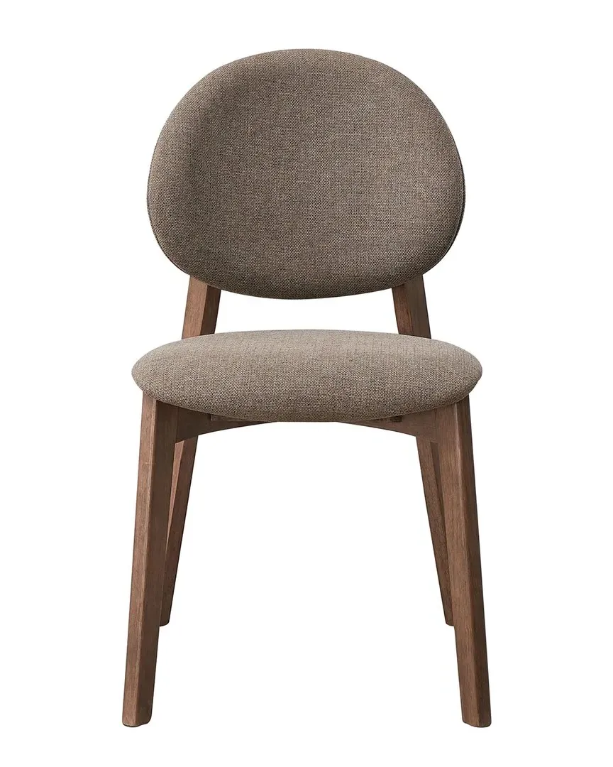 The Real side chair set features armless design with grey linen upholstery and curved backrest for added comfort. The angular rubber wood frame blends contemporary aesthetics, while the plywood construction ensures durability. This lightly padded seating offers versatile styling with its veneer finish and foam cushioning. W22 x D19 x H31 inches per chair.
