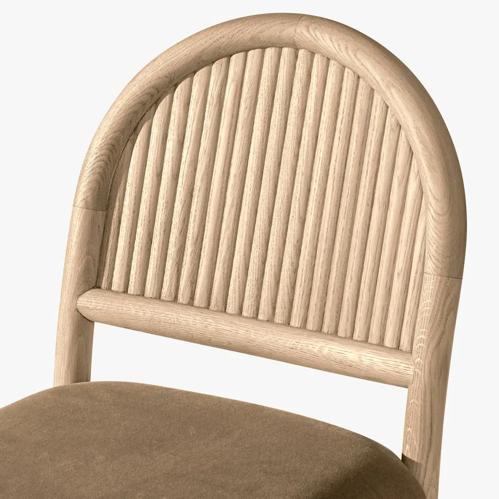Black Birch Homes x Co.House Designs 39.9 inches high x 17.99 inches wide x 22.52 inches deep. Seat: 22.87 inches high. Constructed from oak wood. Finished in dark brown. Upholstered in brown velvet fabric. Fabric content: 82% polyester and 18% cotton; Cushion filling: foam and fiber.
