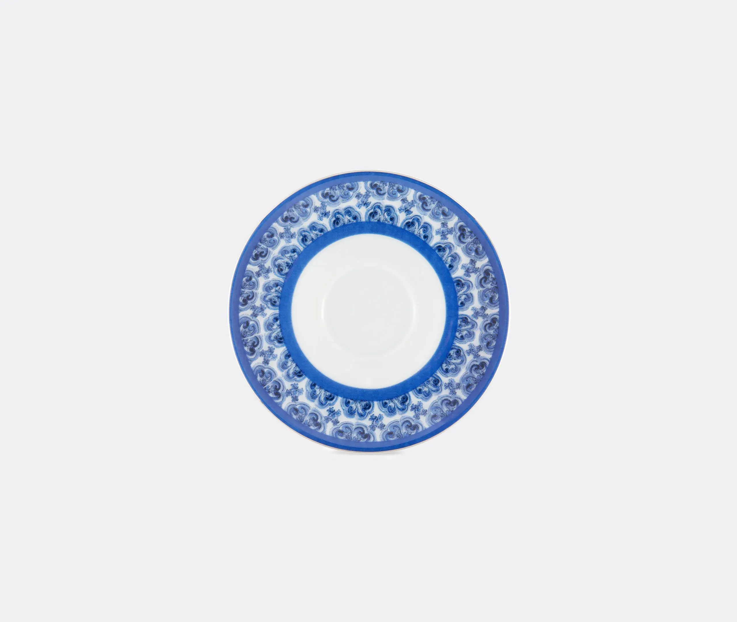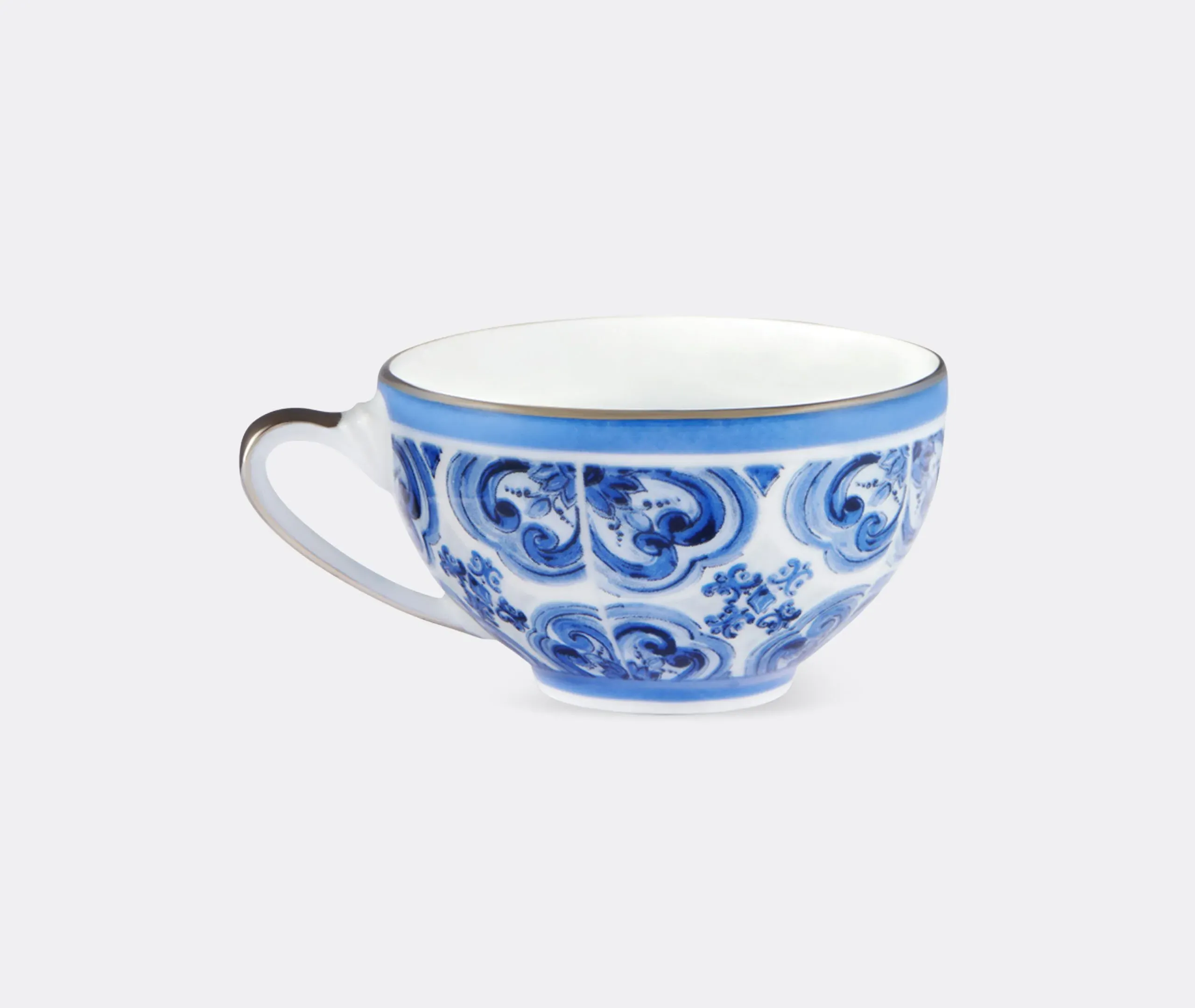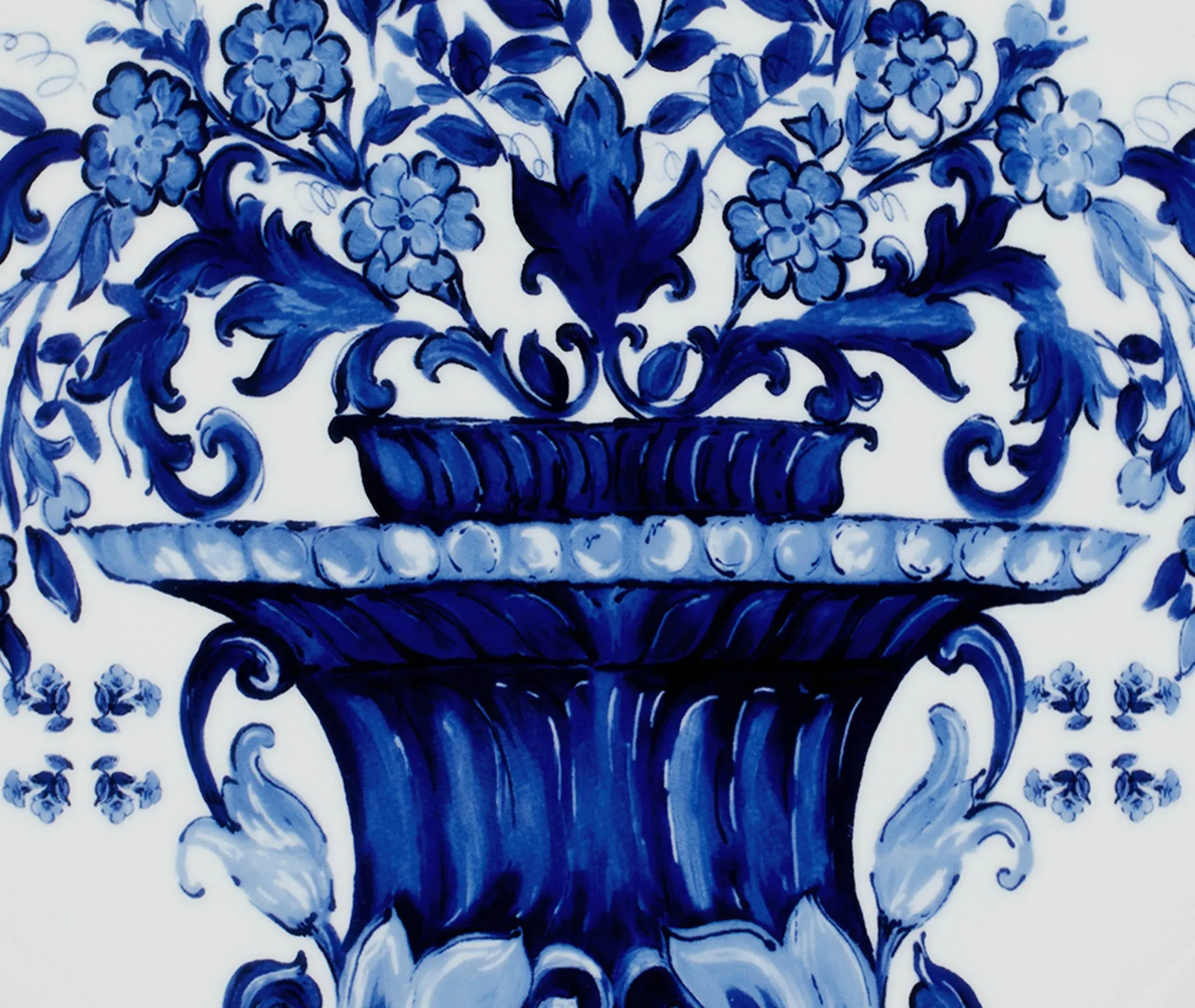An elegant reflection of Dolce & Gabbana's 'Blu Mediterraneo' and the sensorial appeal of the popular aesthetic, this water cup brings a sense of luxury to an everyday item. Defined by a smooth marriage of pure white and intense blue tones, the cup is additionally marked by a logo at its base and raised details that are the result of a carefully hand applied glaze that is a testament to Italian craftsmanship. In addition to offering an appealing texture to touch, this finish also renders the cup scratch and abrasion resistant.