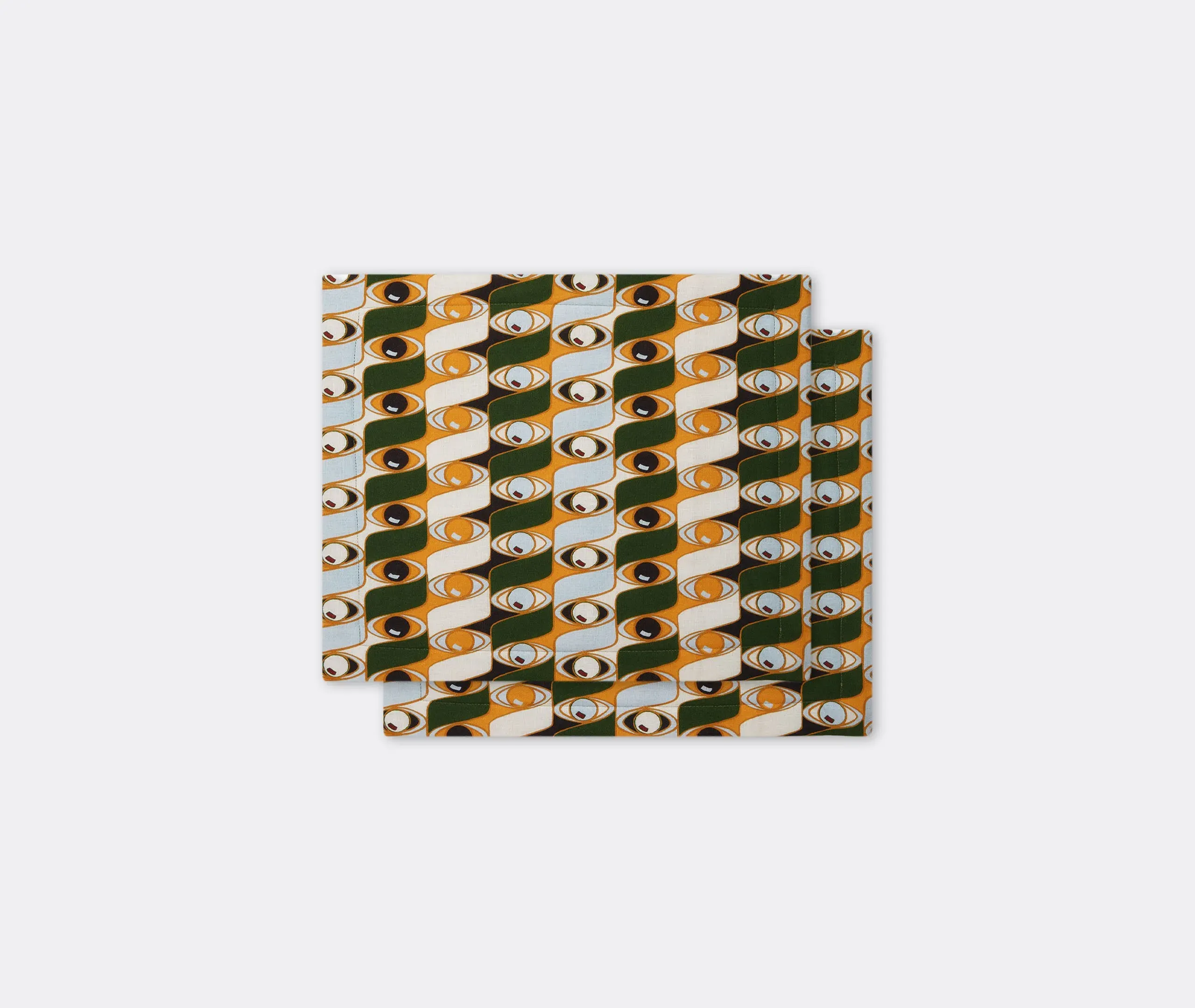 The Strisce tablemat set features a punchy floral pattern in varying shades for lively table accent appeal. Woven from 100% Italian linen, each tablemat combines vibrant color with natural texture and durability. The duo provides versatile styling options, working individually or as part of a coordinated table setting. The linen construction may include small natural irregularities such as tiny knots in the yarn, adding authentic character.