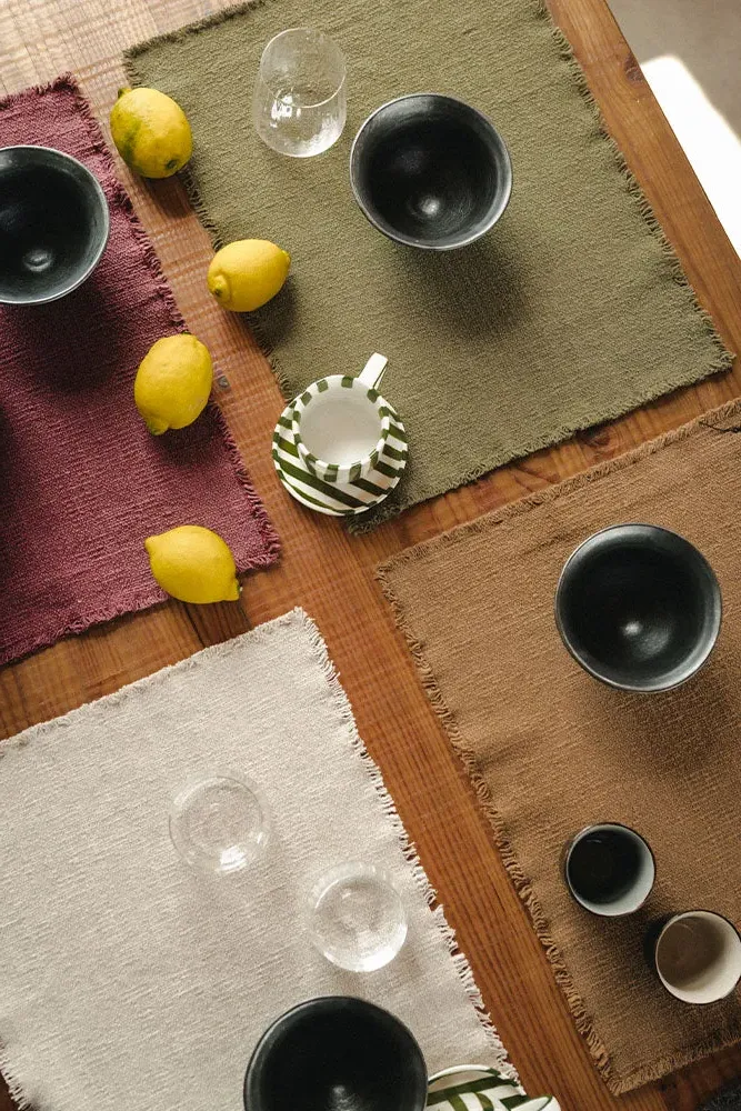 Set a rustic yet refined tone at your table with this set of four handcrafted placemats. Made from a blend of RugCycled® fibers, natural cotton, and black lines, each piece features unique variations in color and weave. Their organic texture and subtle irregularities reflect the beauty of handmade craftsmanship, bringing a warm, grounded feel to everyday dining.