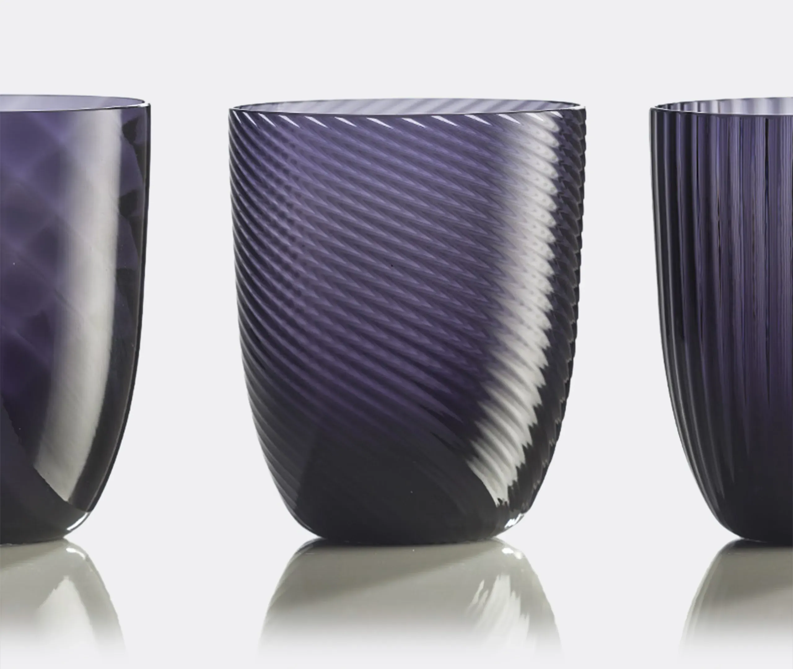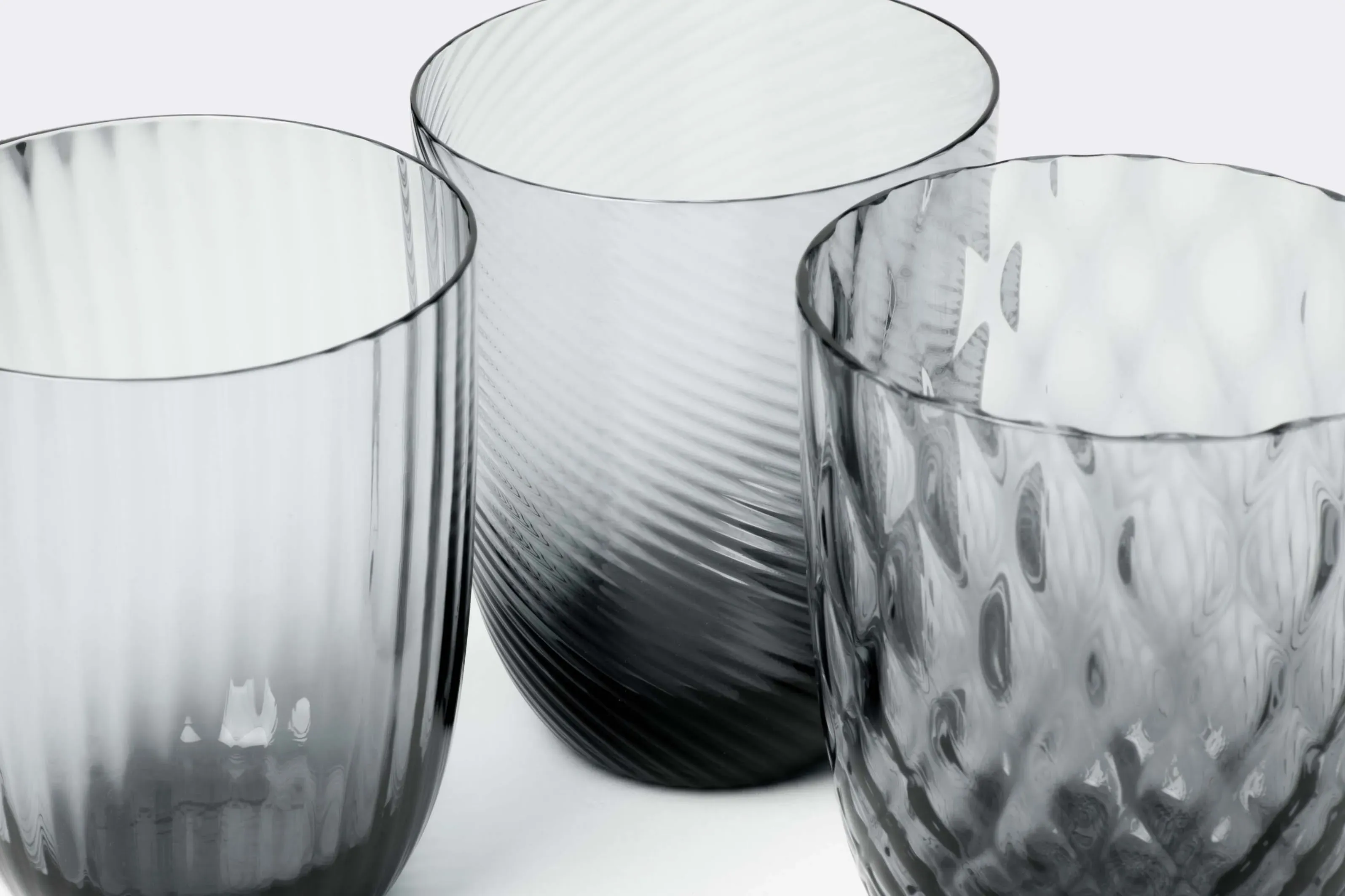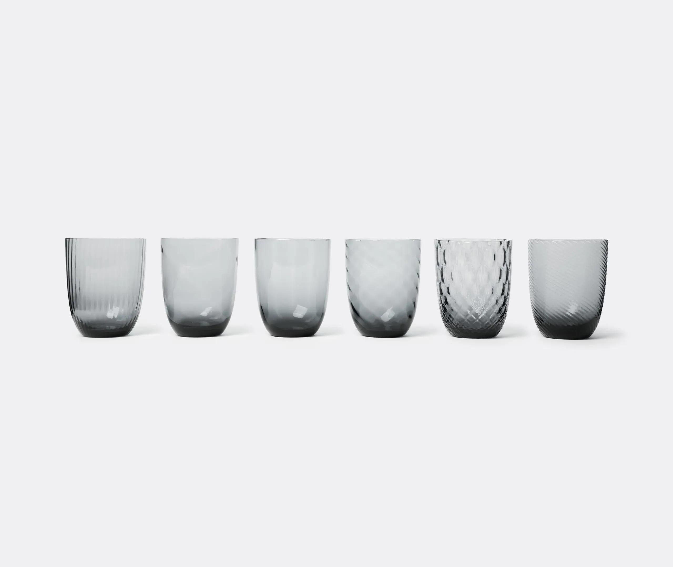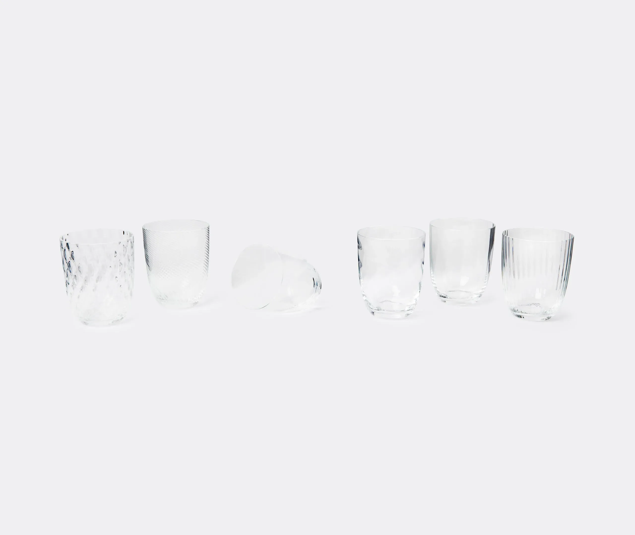 Born from designer Stefano Marcato's passion for the glass-making process, the 'Idra' water glass set combines six distinct textures for a collection that is at once original and harmonious. Produced by NasonMoretti, the unique glass surfaces span lens, rigadin, balloton, rigadin twisted and twisted optical designs, each one engraved into the glass while it is still hot, in true Murano tradition.