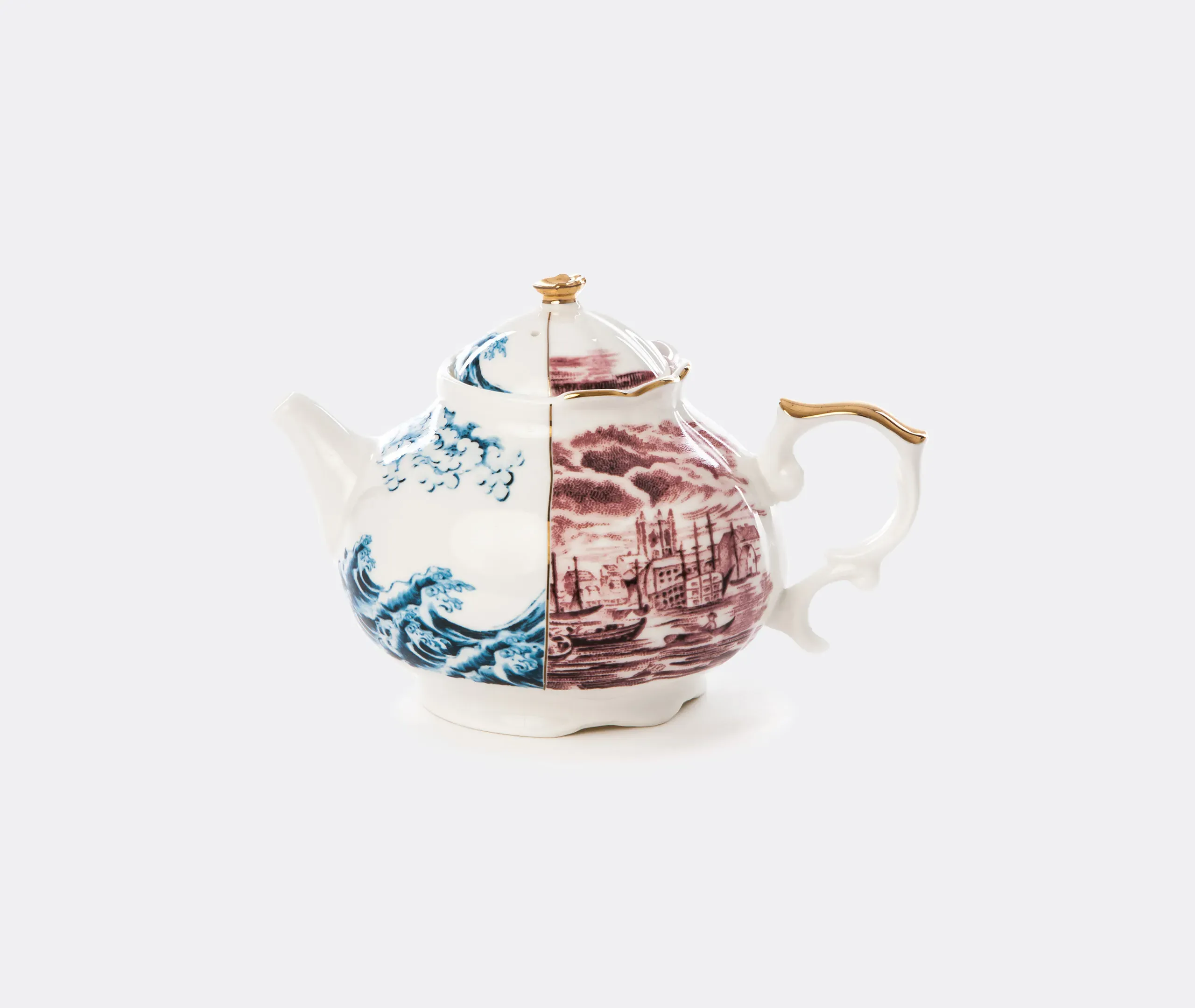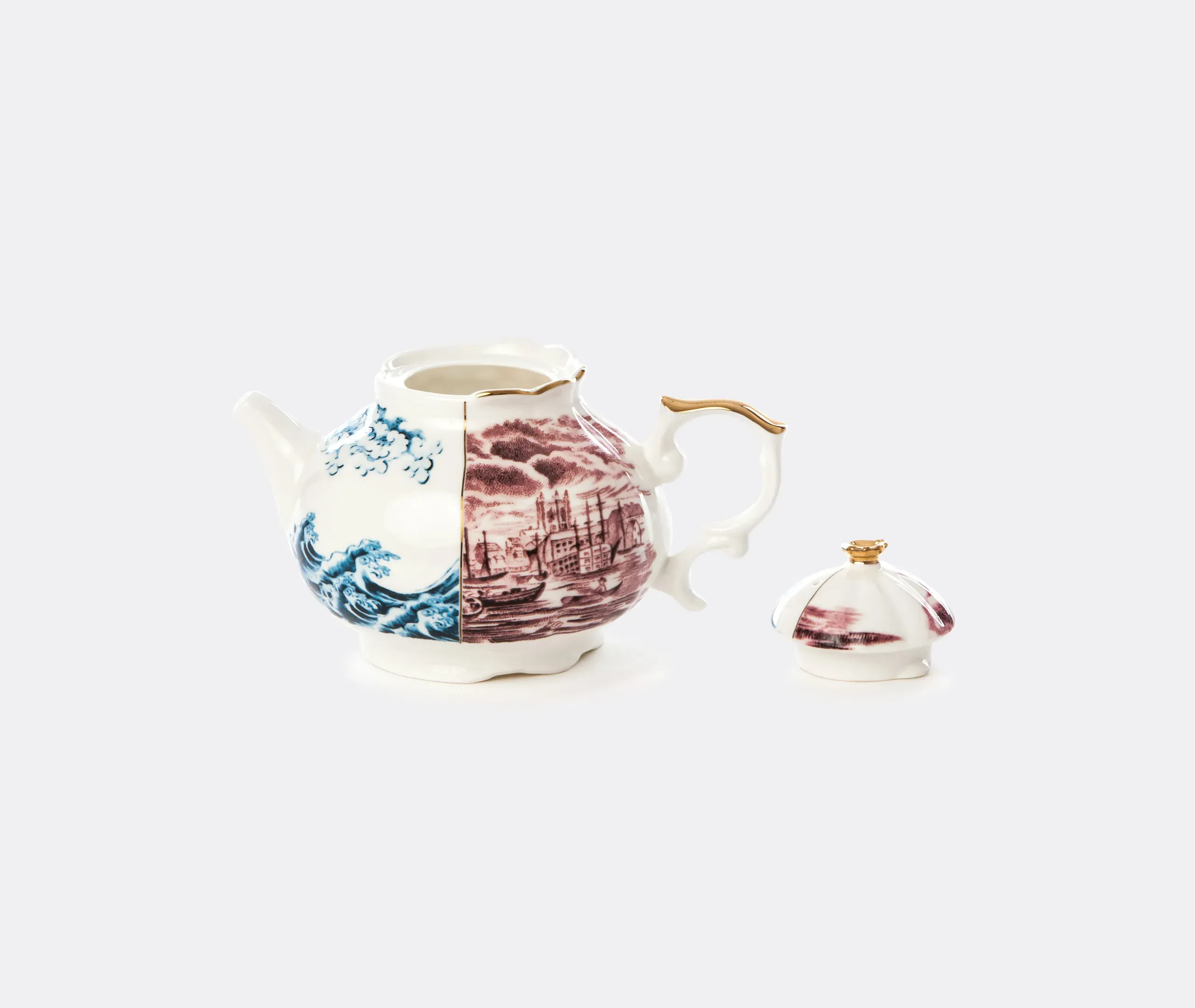 Taken from a collection of tableware pieces that celebrate ancient historic Western and Eastern ceramic production, 'Hybrid Isidora' is a teacup with saucer that combines complex decorations from the past into a contemporary aesthetic. Defined by two distinct patterns that each cover half of the bone china bowl, the pieces can be combined with other items from the eclectic series for an exciting dining table setup.