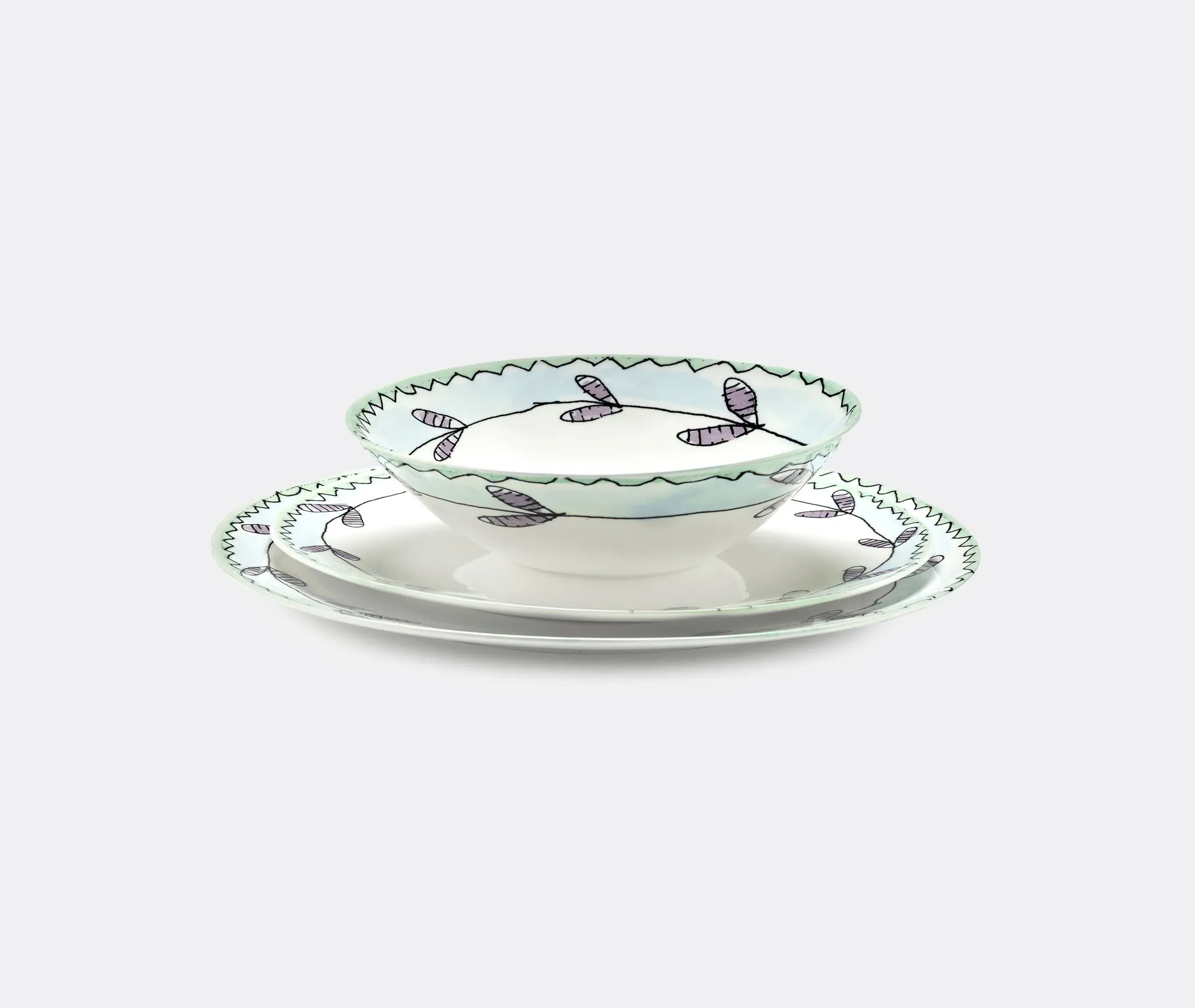 The meeting of two design heavyweights — Marni and Serax — has culminated in an ultra collectible 120-piece porcelain tableware set that literally brings both brand's artistic visions to the table. Inspired by nature and featuring decal applied flower motifs designed by Marni Creative Director Francesco Risso, each item in the series is cut from glazed fine bone china that is purposely shaped with a slight asymmetry to enhance the quality of the porcelain. This set of two hand-finished coffee cups and saucers features the 'Blossom Milk' motif, defined by a delicate band of blue florals and squiggled lines on both cups and saucers.