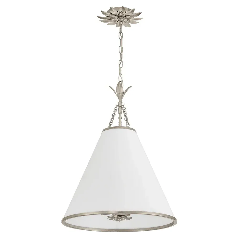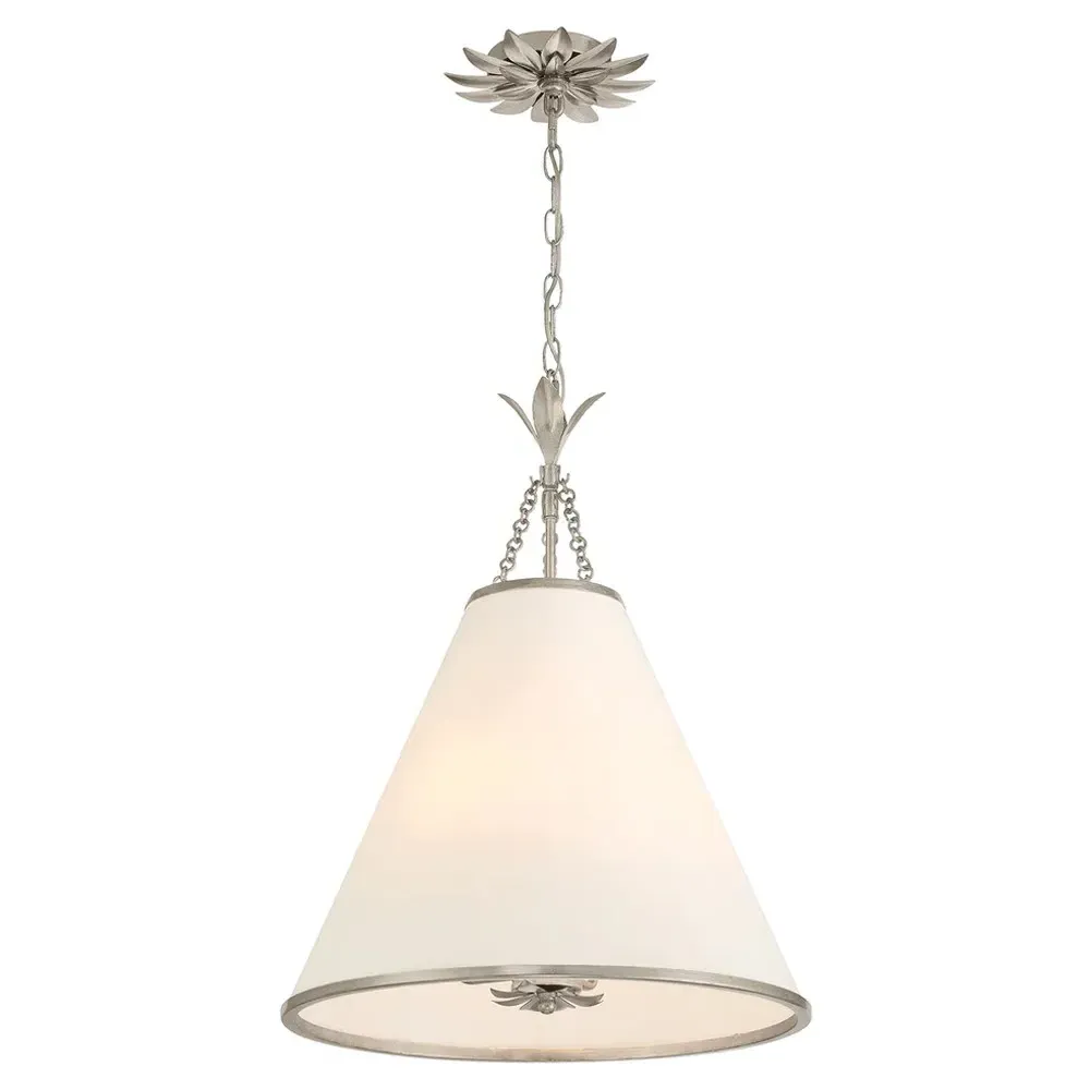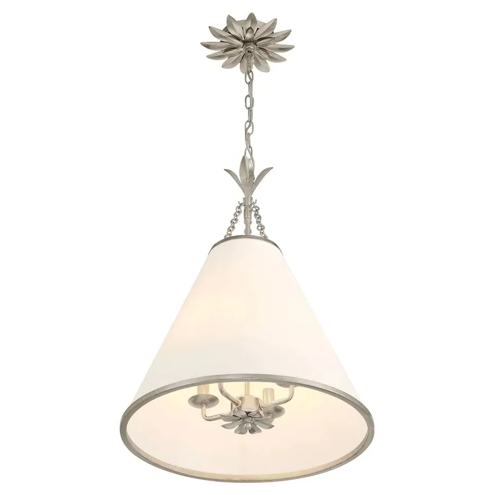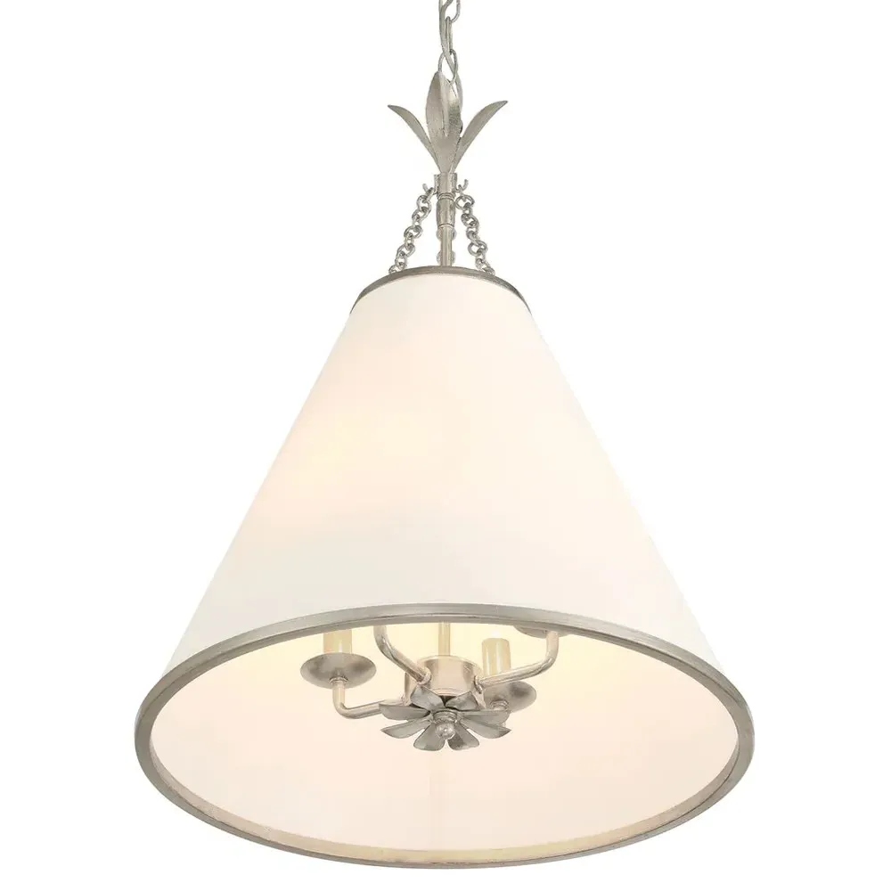 The Liora Wall Sconce combines steel construction with a white silk shade for ambient lighting. Its antique silver finish provides durability while the round backplate ensures secure wall mounting. The fixture offers single light illumination with adjustable positioning, and the steel frame adds lasting strength. W15 x D18 x H53 cm.