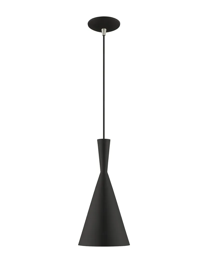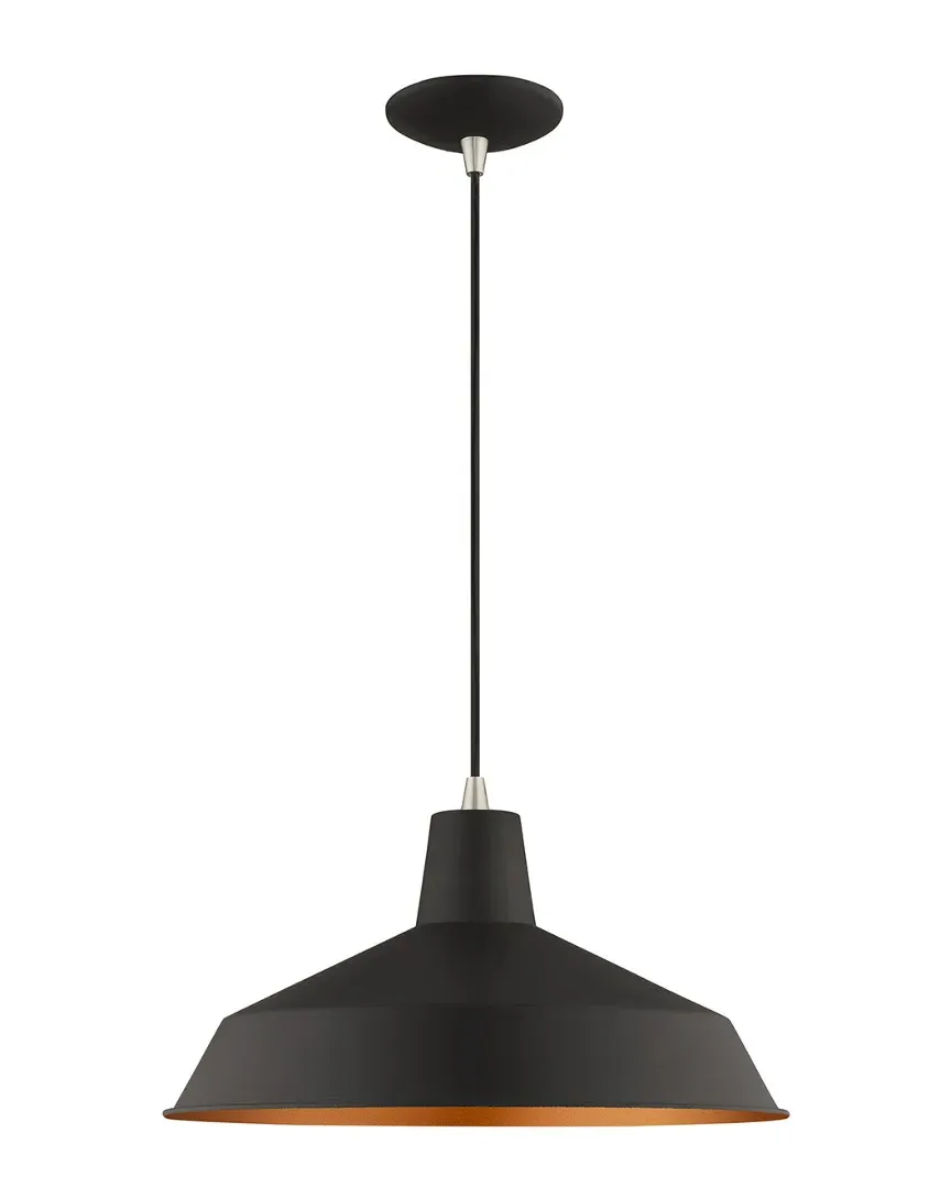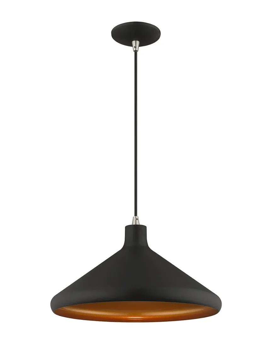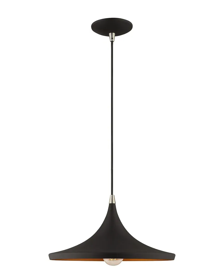 The Metal Shade Mini Pendant Light offers minimalist appeal with its shiny black finish and gold interior accent. Its steel construction provides durability, while the single-bulb design delivers focused illumination. The pendant includes installation hardware and requires one 60-watt medium base bulb. W15.9 x D15.9 x H43.2 cm.