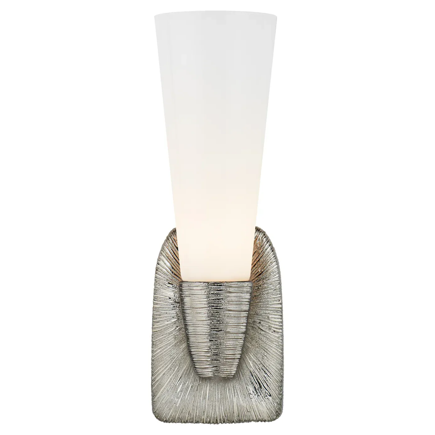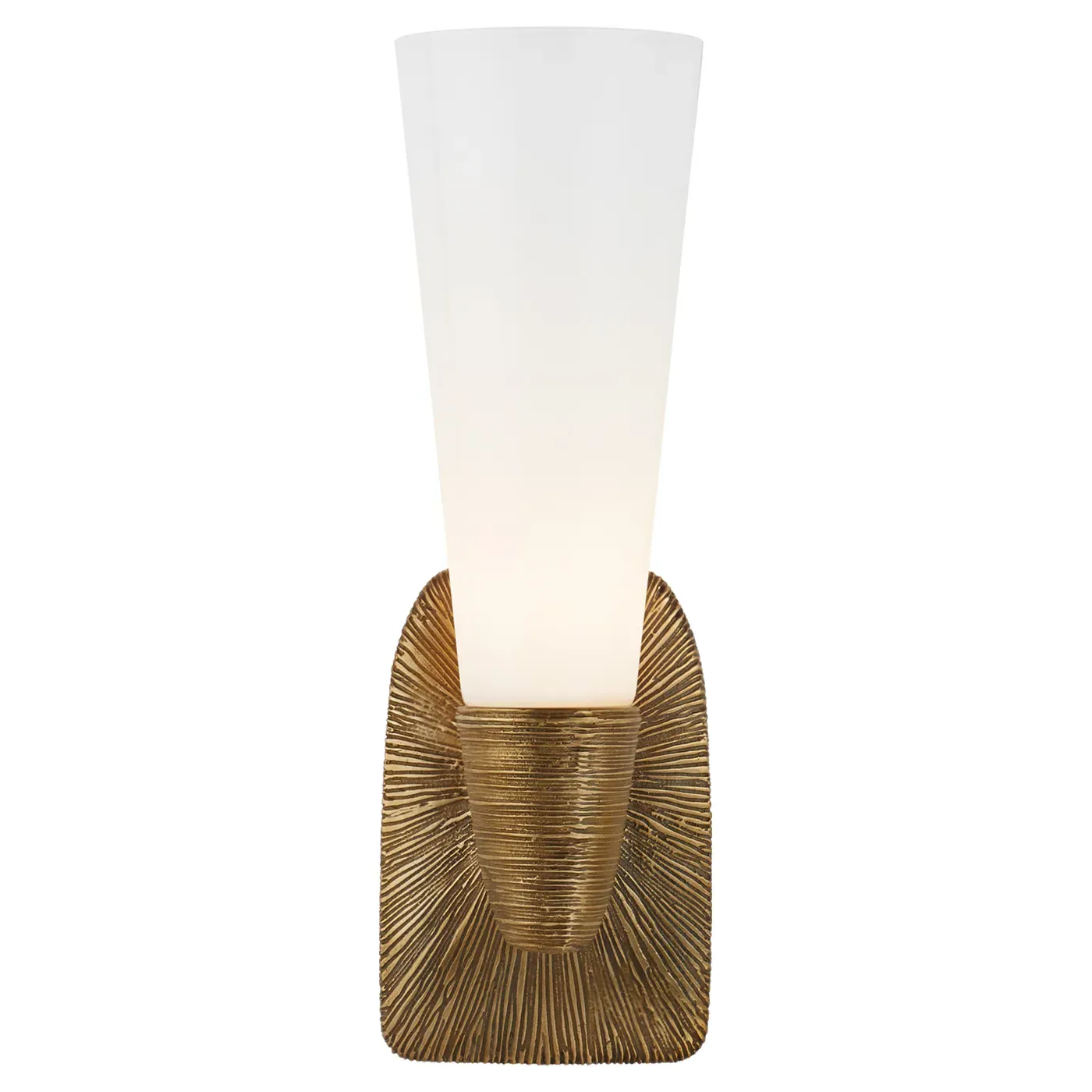 The Utopia Single Bath Sconce provides focused lighting with its white glass shade and aged iron finish. The decorative backplate ensures secure wall mounting, while the metal construction adds lasting durability. Its single-light design suits targeted illumination needs. W12 x D13 x H36 cm.