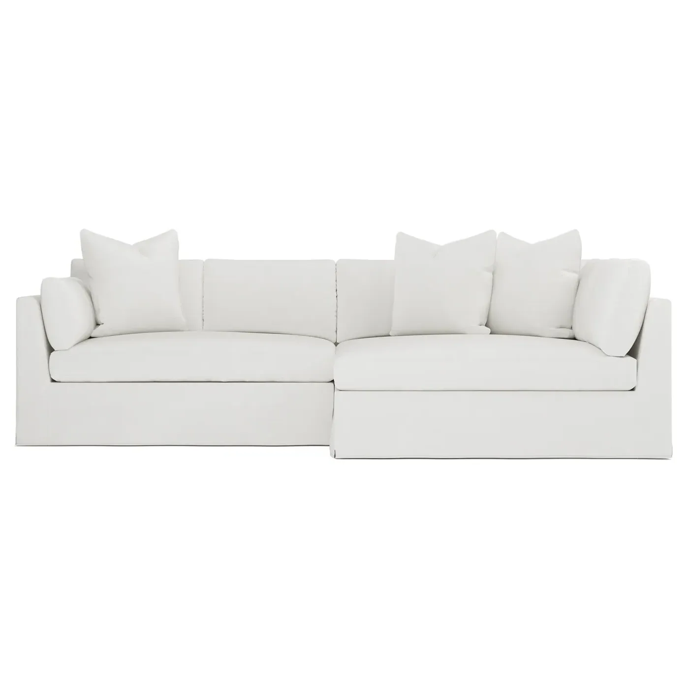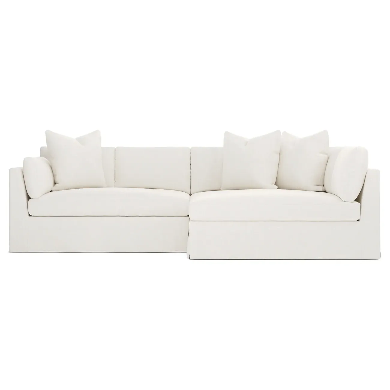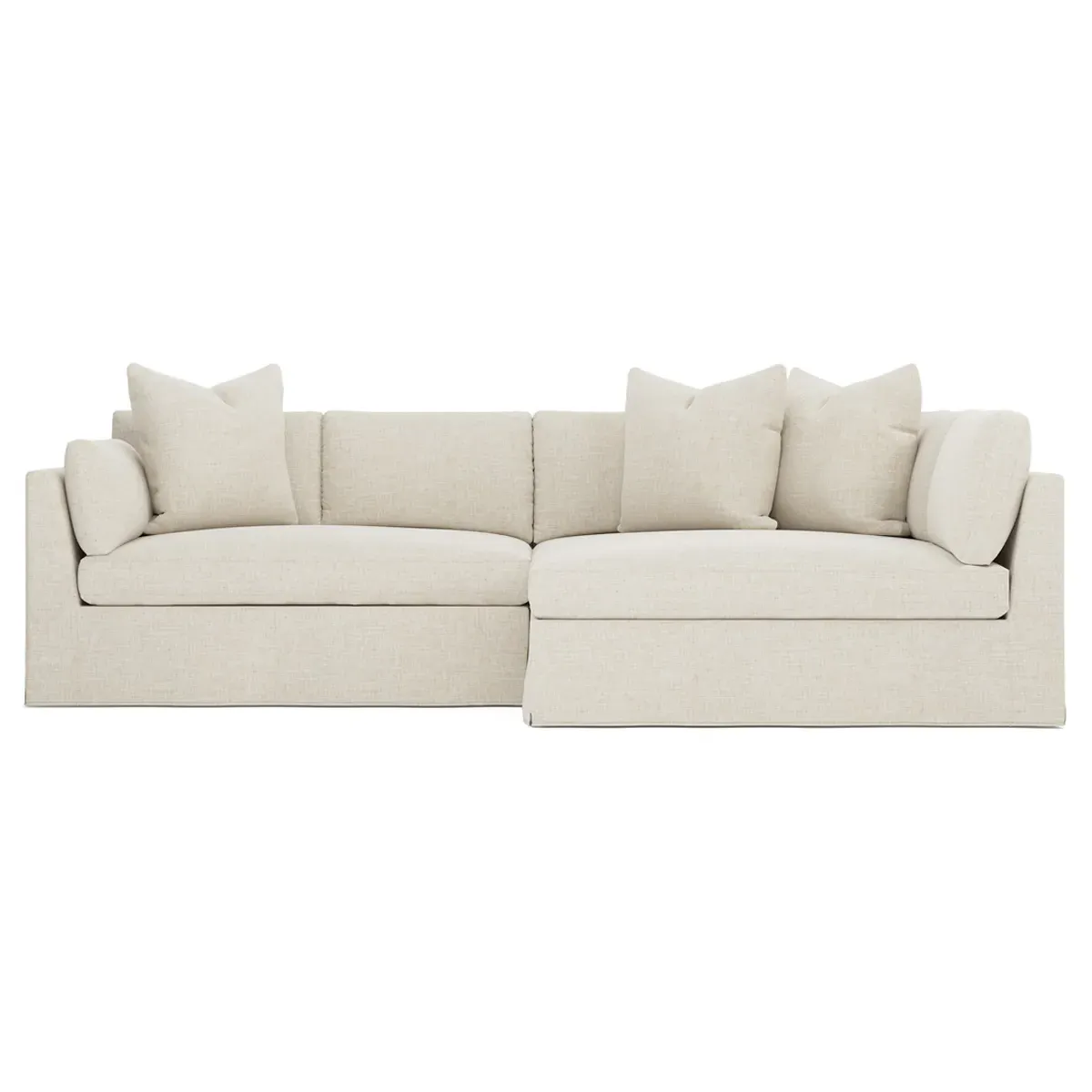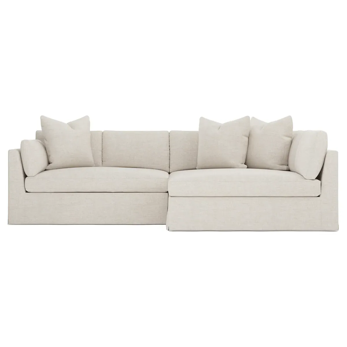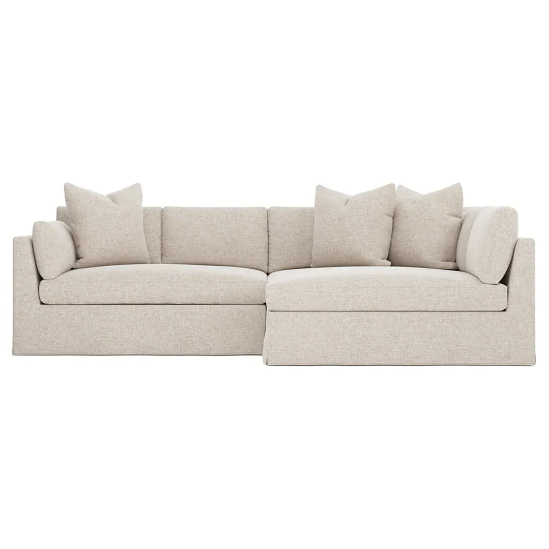 Designed with generous proportions, gently angled arms, and large throw pillows, the left 116” Adelle bumper sectional invites relaxation. A beautiful wood rail grounds the timeless transitional silhouette. Plush, comfortable seating is soft yet supportive, with a foam core surrounded by a blend of fiber, down, and feather fill. Choose from a variety of upholstery options, including linen, velvet, and performance fabrics. <b>Overall Dimensions:</b> 116" W x 61" D x 35" H. <b>Bumper Sofa Dimensions:</b> 58” W x 61” D x 35” H; <b>End Sofa Dimensions:</b> 58” W x 38” D x 35” H; <b>Seat Dimensions:</b> 25” D x 21” H; <b>Arm Height:</b> 28”; <b>Leg Height:</b> 5”. <b>Materials:</b> FSC®-certified, US-sourced, formaldehyde-free solid kiln-dried hardwood and furniture-grade laminates. <b>Material Finish:</b> Espresso legs. <b>Pieces Included:</b> Left bumper sofa, right end sofa.