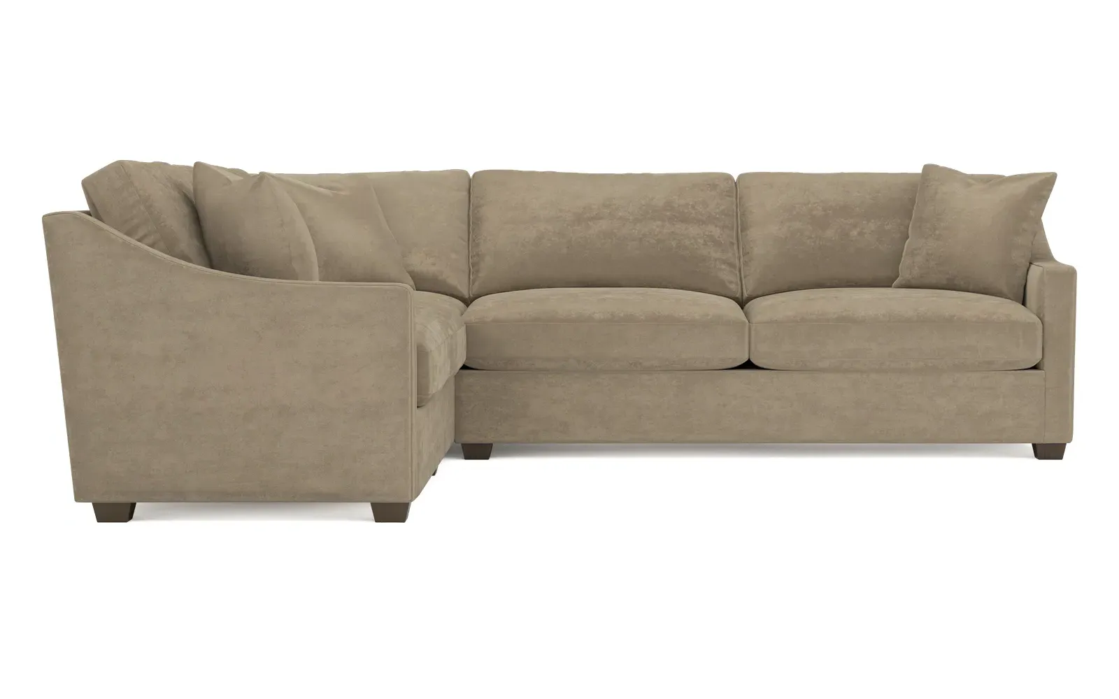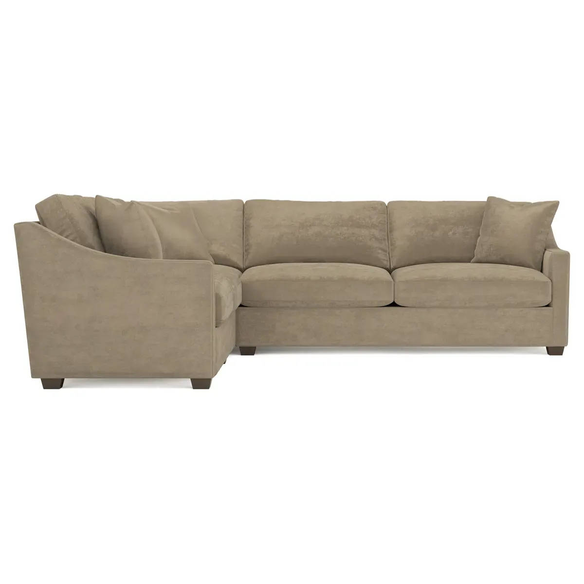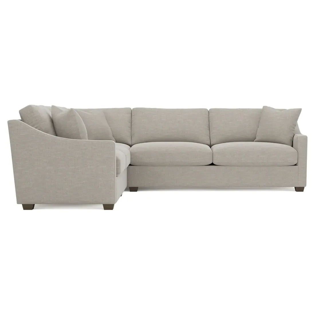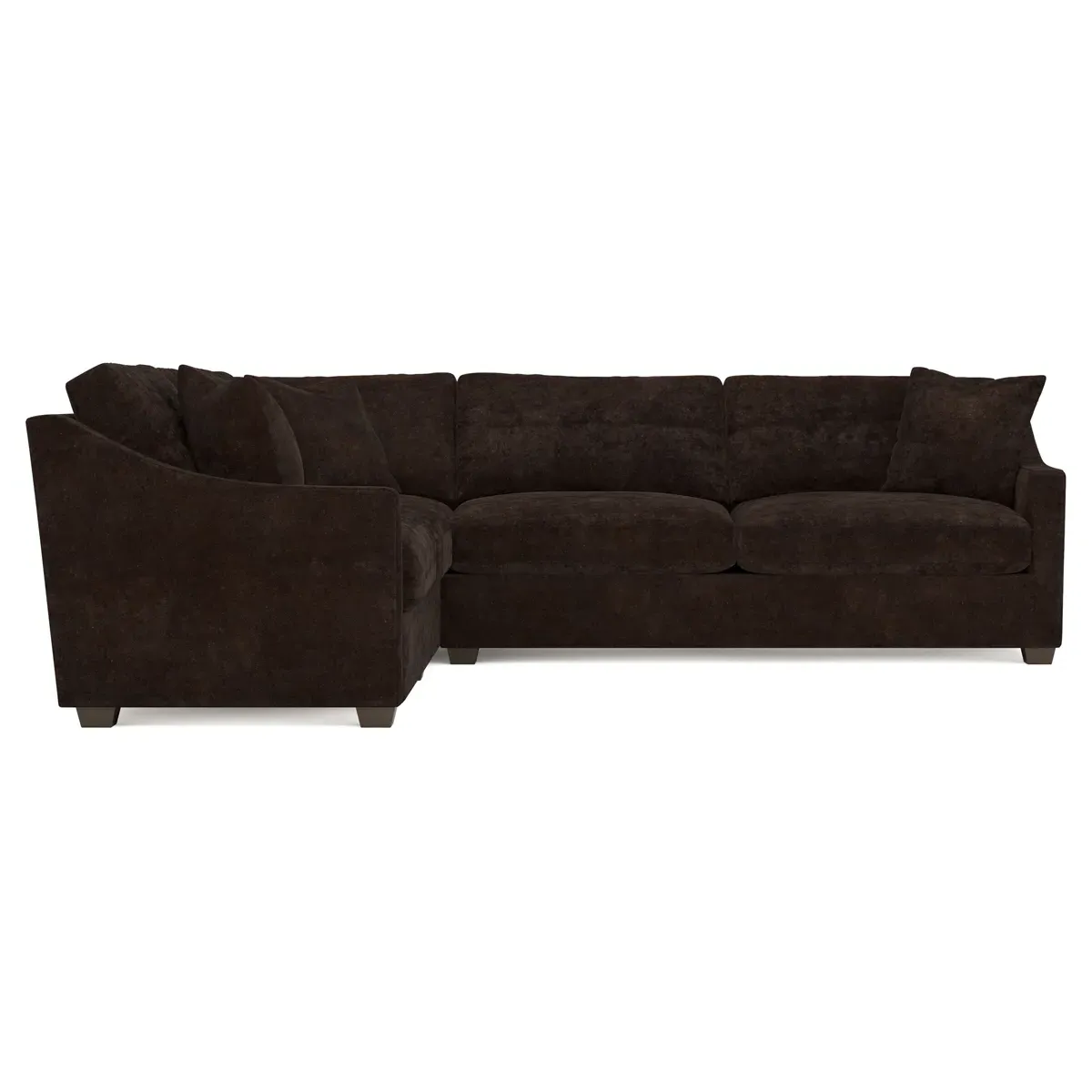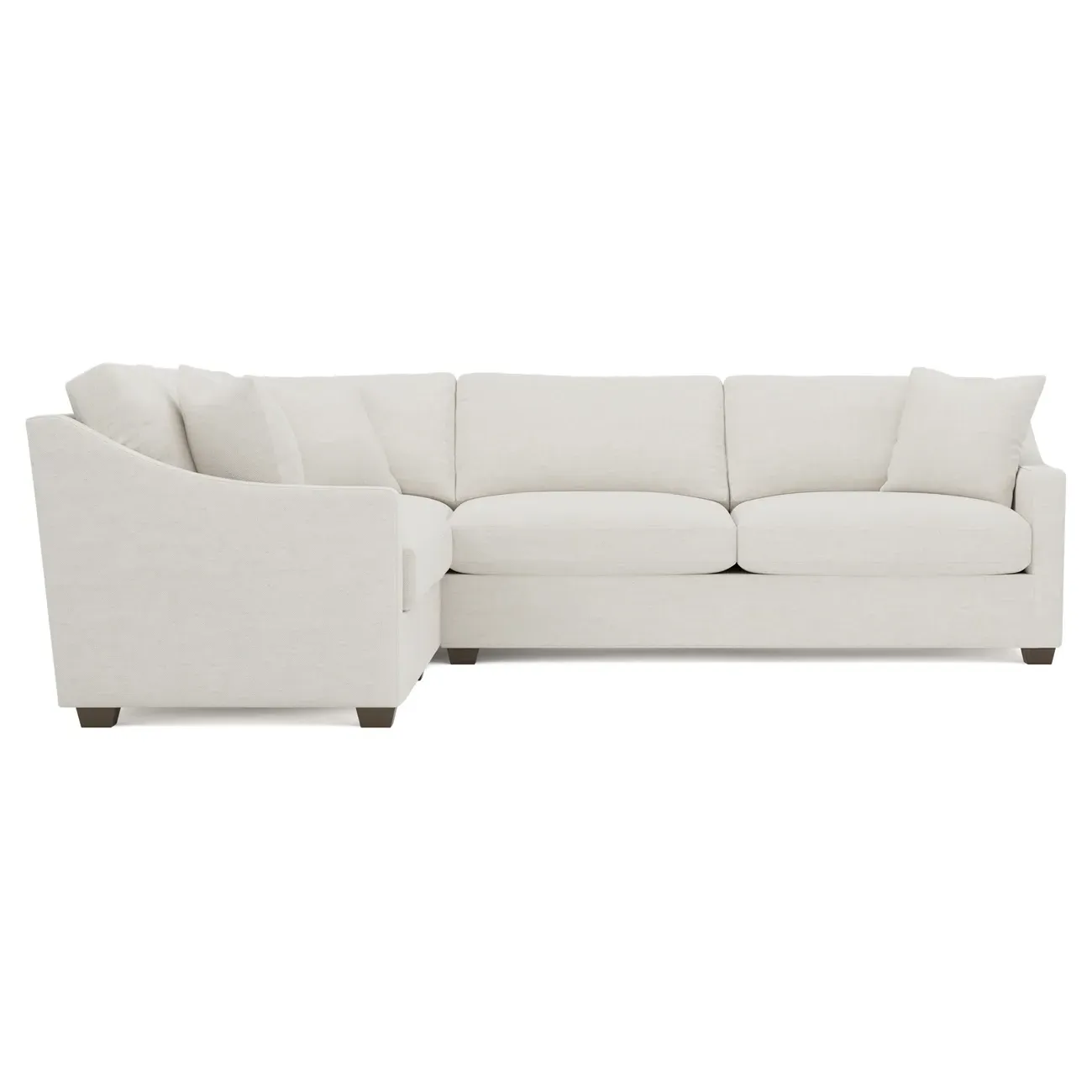 The left 111” Avery corner sectional brings casual comfort and elevated simplicity to any living space. Tapered wood legs ground the frame, while gently sloped arms lend a touch of elegance to the timeless silhouette. Soft yet supportive with a slightly firm sit, the low-maintenance seat cushions feature a foam core surrounded by plush fiber fill. Cozy throw pillows make for easy lounging. Choose from a variety of upholstery options, including linen, velvet, and performance fabrics. <b>Overall Dimensions:</b> 111" W x 111" D x 36" H. <b>End Sofa Dimensions:</b> 72” W x 39” D x 36" H; <b>End Sofa with Corner Dimensions:</b> 111” W x 39” D x 36" H; <b>Seat Dimensions:</b> 23” D x 22” H; <b>Arm Height:</b> 26”; <b>Leg Height:</b> 2.5”. <b>Materials:</b> FSC®-certified, US-sourced, formaldehyde-free solid kiln-dried hardwood and furniture-grade laminates. <b>Material Finish:</b> Espresso legs. <b>Pieces Included:</b> Left end sofa, right end sofa with corner.