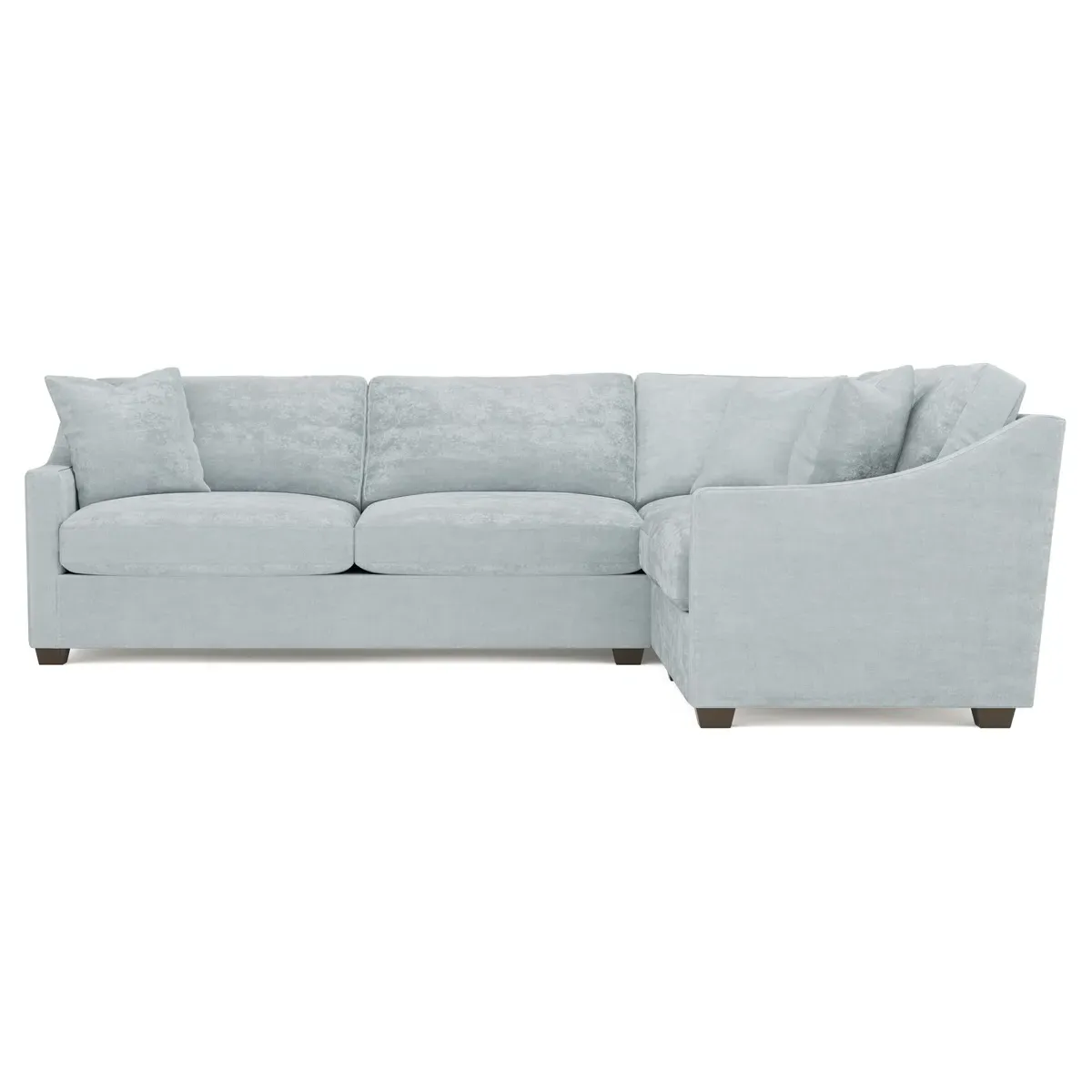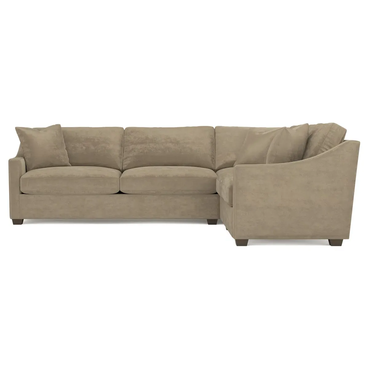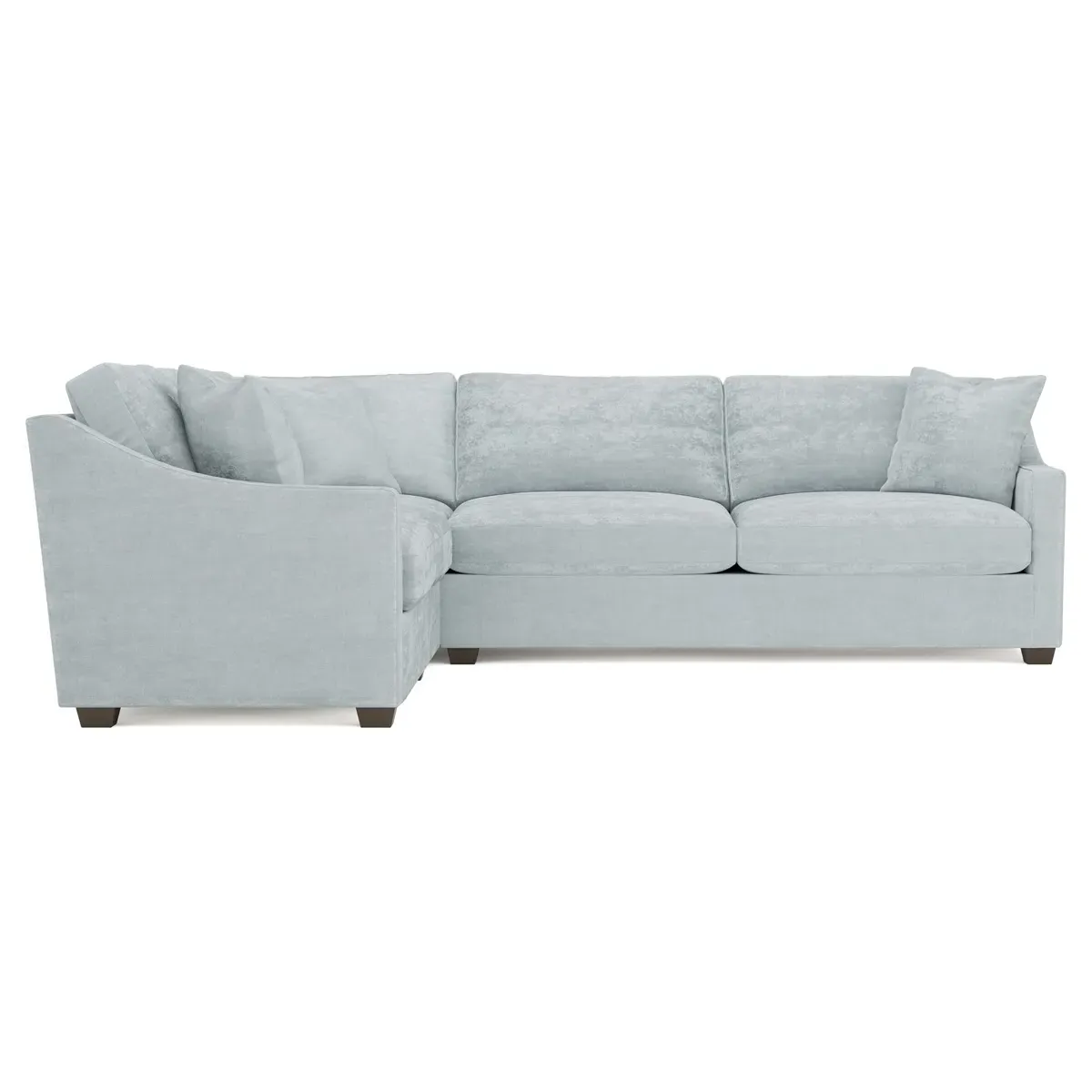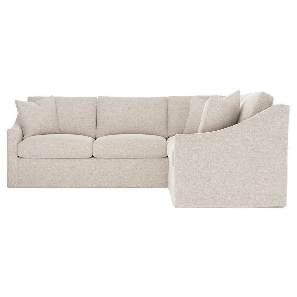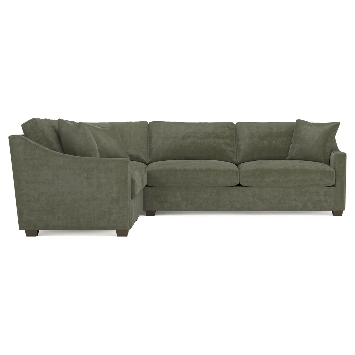 The left 111” Avery corner sectional brings casual comfort and elevated simplicity to any living space. Tapered wood legs ground the frame, while gently sloped arms lend a touch of elegance to the timeless silhouette. Soft yet supportive with a slightly firm sit, the low-maintenance seat cushions feature a foam core surrounded by plush fiber fill. Cozy throw pillows make for easy lounging. Choose from a variety of upholstery options, including linen, velvet, and performance fabrics. <b>Overall Dimensions:</b> 111" W x 111" D x 36" H. <b>End Sofa Dimensions:</b> 72” W x 39” D x 36" H; <b>End Sofa with Corner Dimensions:</b> 111” W x 39” D x 36" H; <b>Seat Dimensions:</b> 23” D x 22” H; <b>Arm Height:</b> 26”; <b>Leg Height:</b> 2.5”. <b>Materials:</b> FSC®-certified, US-sourced, formaldehyde-free solid kiln-dried hardwood and furniture-grade laminates. <b>Material Finish:</b> Espresso legs. <b>Pieces Included:</b> Left end sofa, right end sofa with corner.