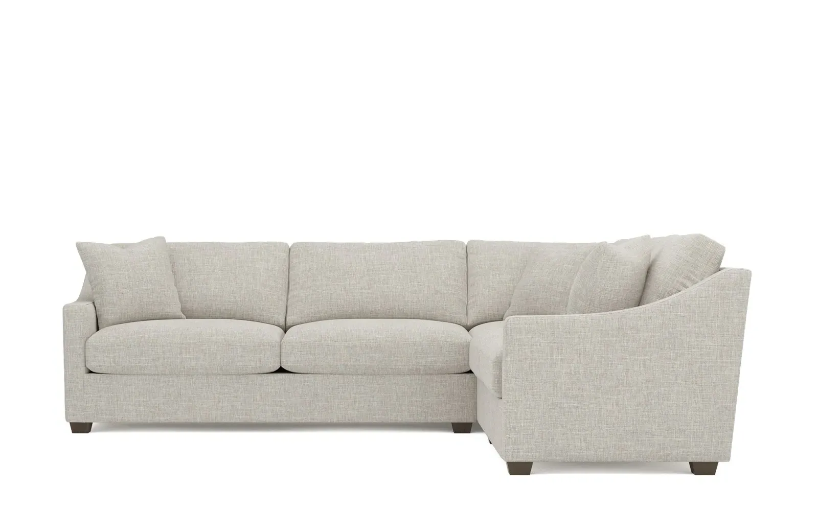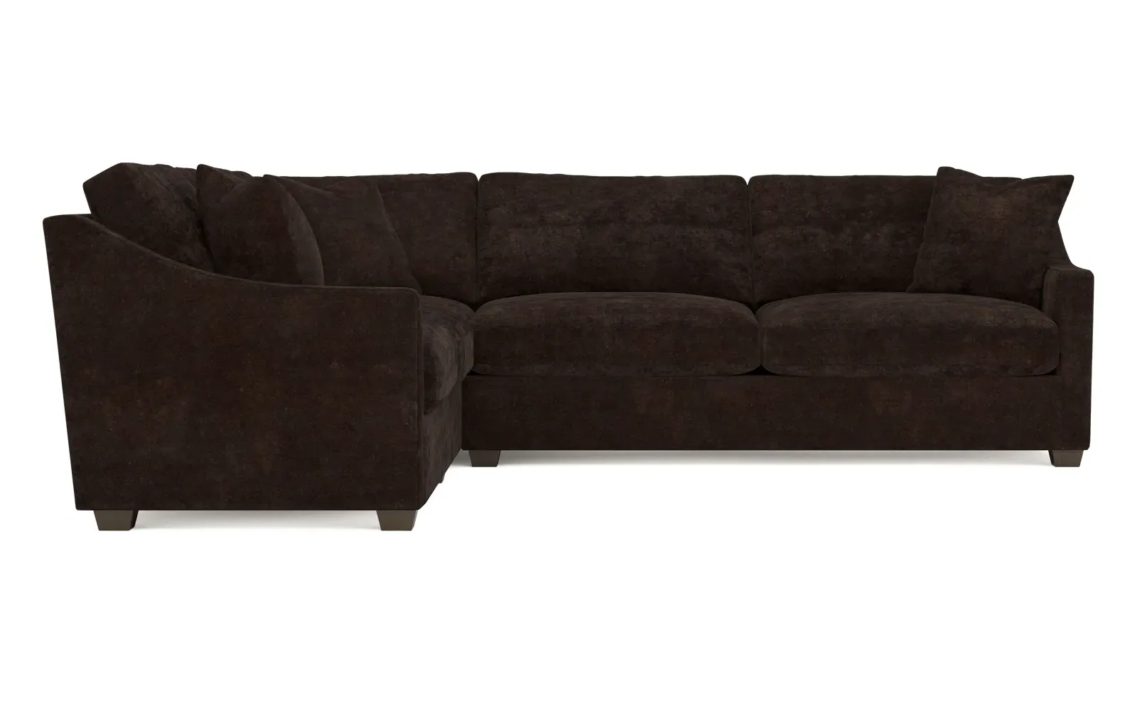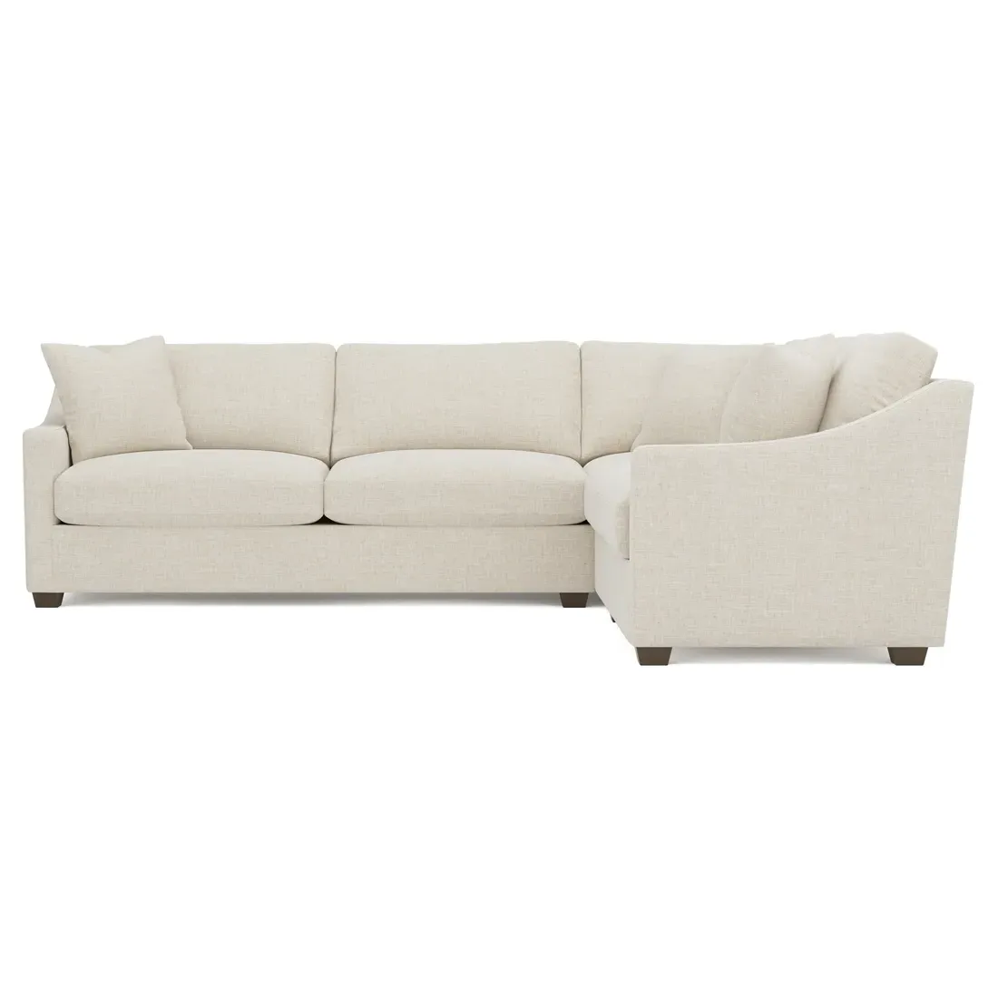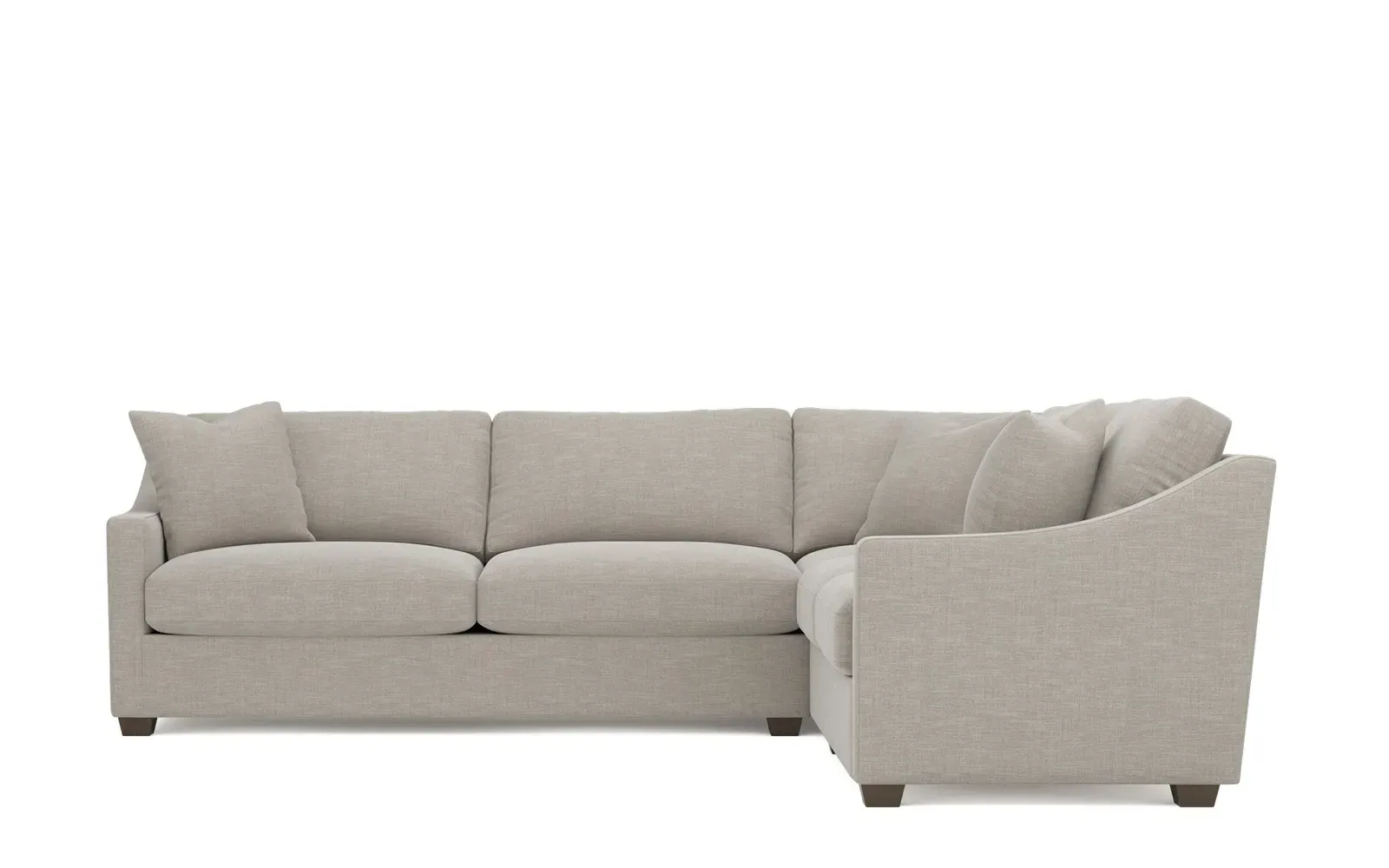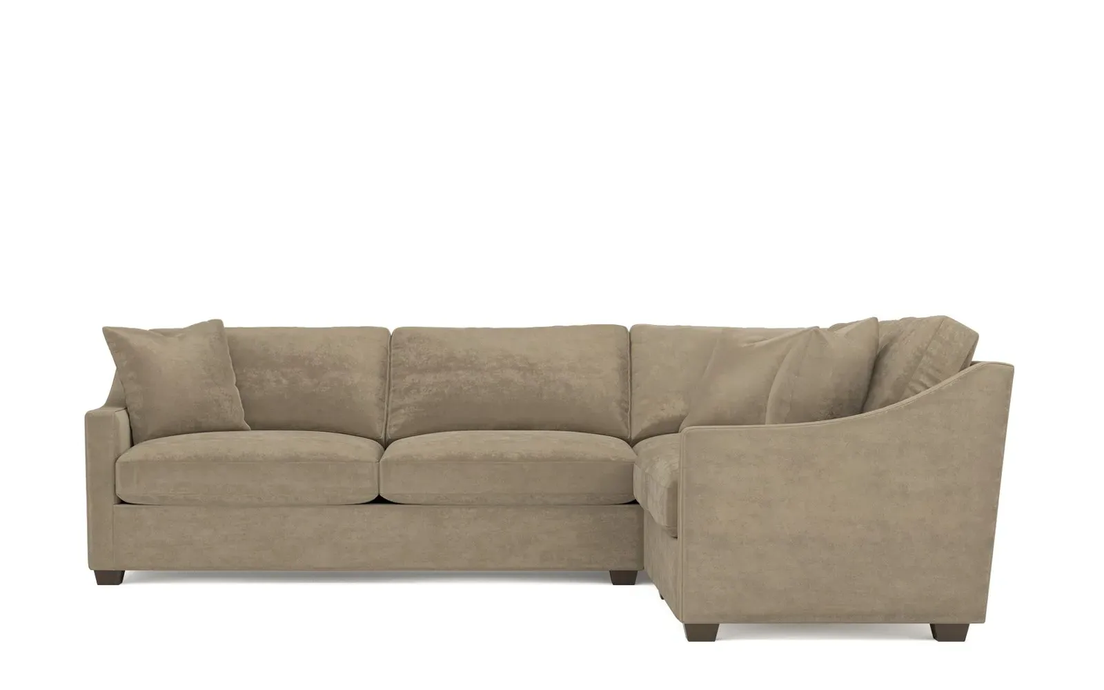 The left 111” Avery corner sectional brings casual comfort and elevated simplicity to any living space. Tapered wood legs ground the frame, while gently sloped arms lend a touch of elegance to the timeless silhouette. Soft yet supportive with a slightly firm sit, the low-maintenance seat cushions feature a foam core surrounded by plush fiber fill. Cozy throw pillows make for easy lounging. Choose from a variety of upholstery options, including linen, velvet, and performance fabrics. <b>Overall Dimensions:</b> 111" W x 111" D x 36" H. <b>End Sofa Dimensions:</b> 72” W x 39” D x 36" H; <b>End Sofa with Corner Dimensions:</b> 111” W x 39” D x 36" H; <b>Seat Dimensions:</b> 23” D x 22” H; <b>Arm Height:</b> 26”; <b>Leg Height:</b> 2.5”. <b>Materials:</b> FSC®-certified, US-sourced, formaldehyde-free solid kiln-dried hardwood and furniture-grade laminates. <b>Material Finish:</b> Espresso legs. <b>Pieces Included:</b> Left end sofa, right end sofa with corner.