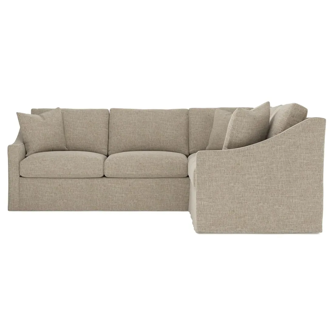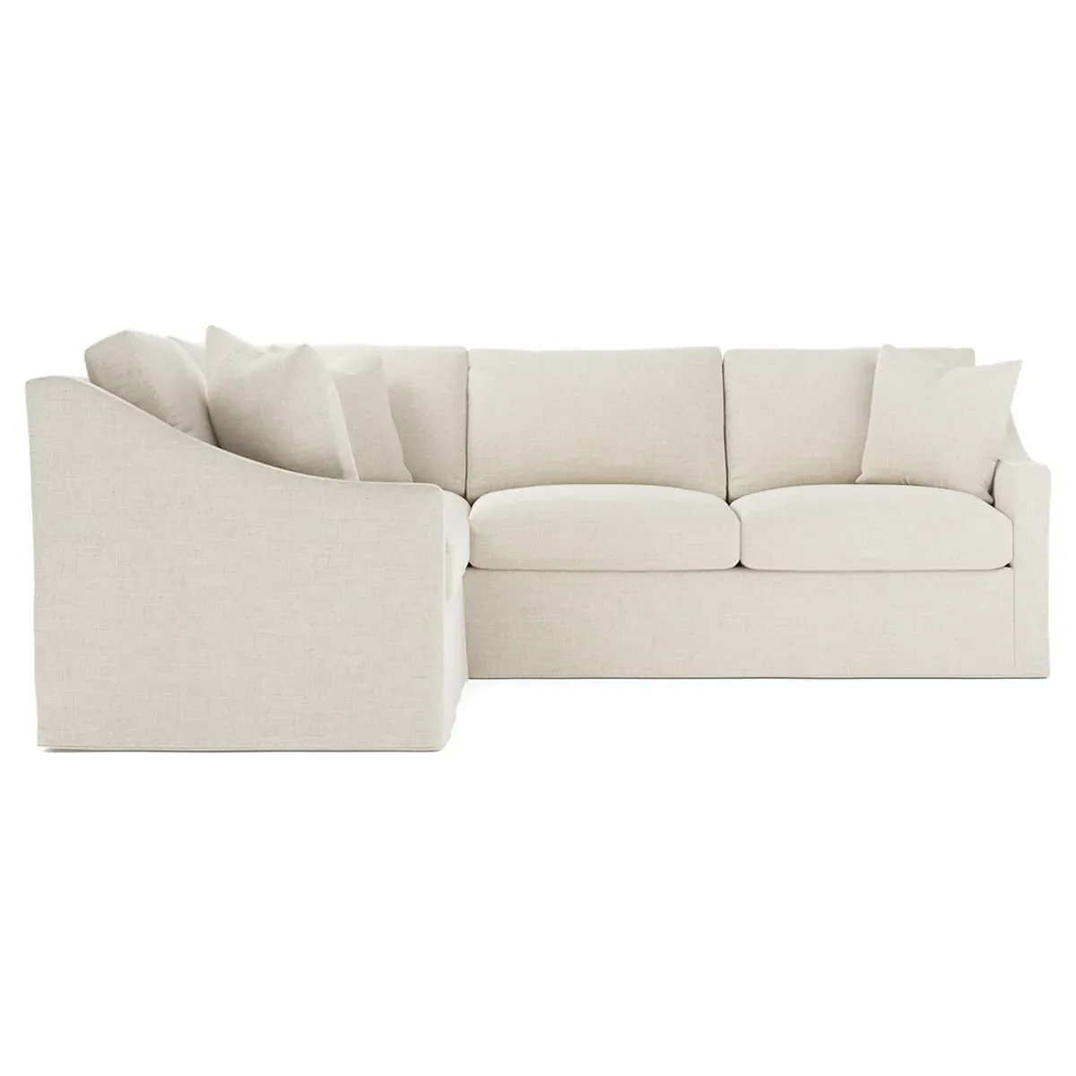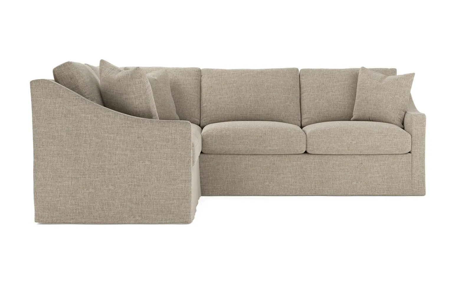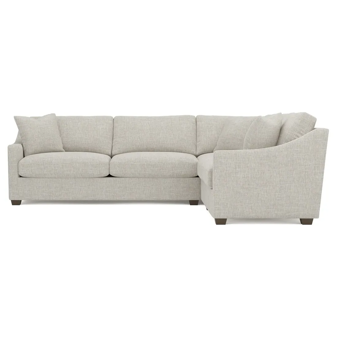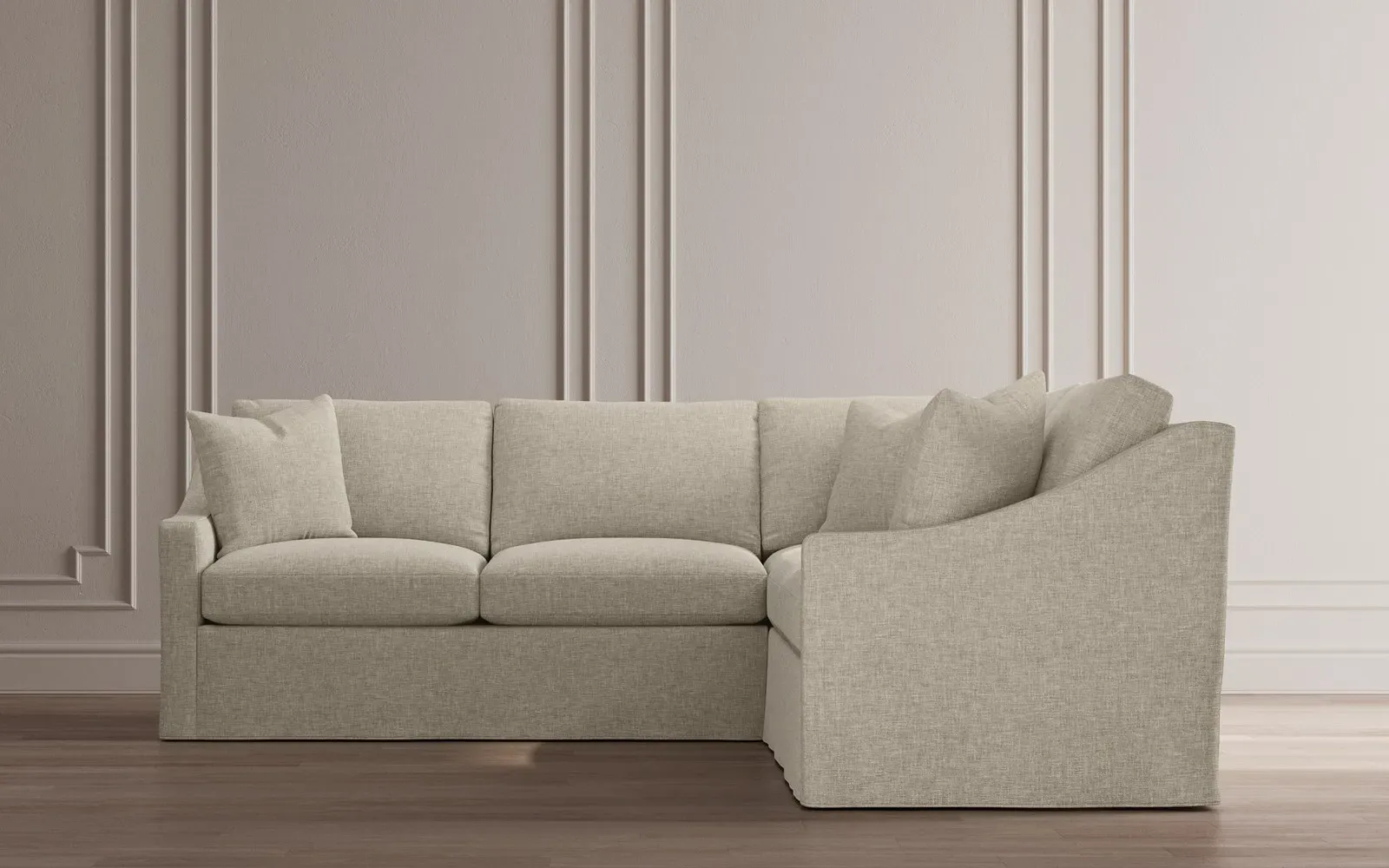 The left 111” Avery corner sectional brings casual comfort and elevated simplicity to any living space. Tapered wood legs ground the frame, while gently sloped arms lend a touch of elegance to the timeless silhouette. Soft yet supportive with a slightly firm sit, the low-maintenance seat cushions feature a foam core surrounded by plush fiber fill. Cozy throw pillows make for easy lounging. Choose from a variety of upholstery options, including linen, velvet, and performance fabrics. <b>Overall Dimensions:</b> 111" W x 111" D x 36" H. <b>End Sofa Dimensions:</b> 72” W x 39” D x 36" H; <b>End Sofa with Corner Dimensions:</b> 111” W x 39” D x 36" H; <b>Seat Dimensions:</b> 23” D x 22” H; <b>Arm Height:</b> 26”; <b>Leg Height:</b> 2.5”. <b>Materials:</b> FSC®-certified, US-sourced, formaldehyde-free solid kiln-dried hardwood and furniture-grade laminates. <b>Material Finish:</b> Espresso legs. <b>Pieces Included:</b> Left end sofa, right end sofa with corner.