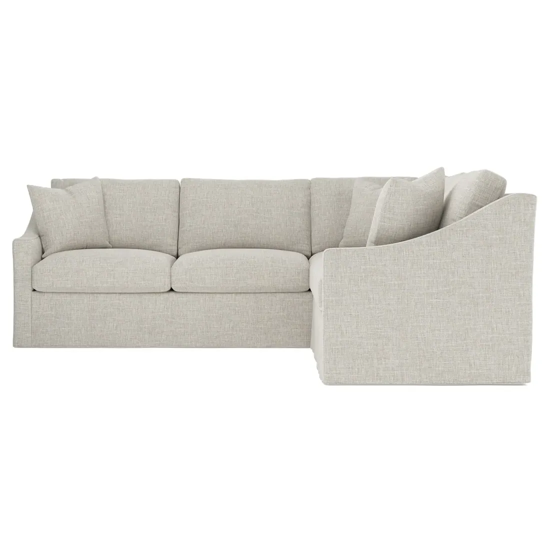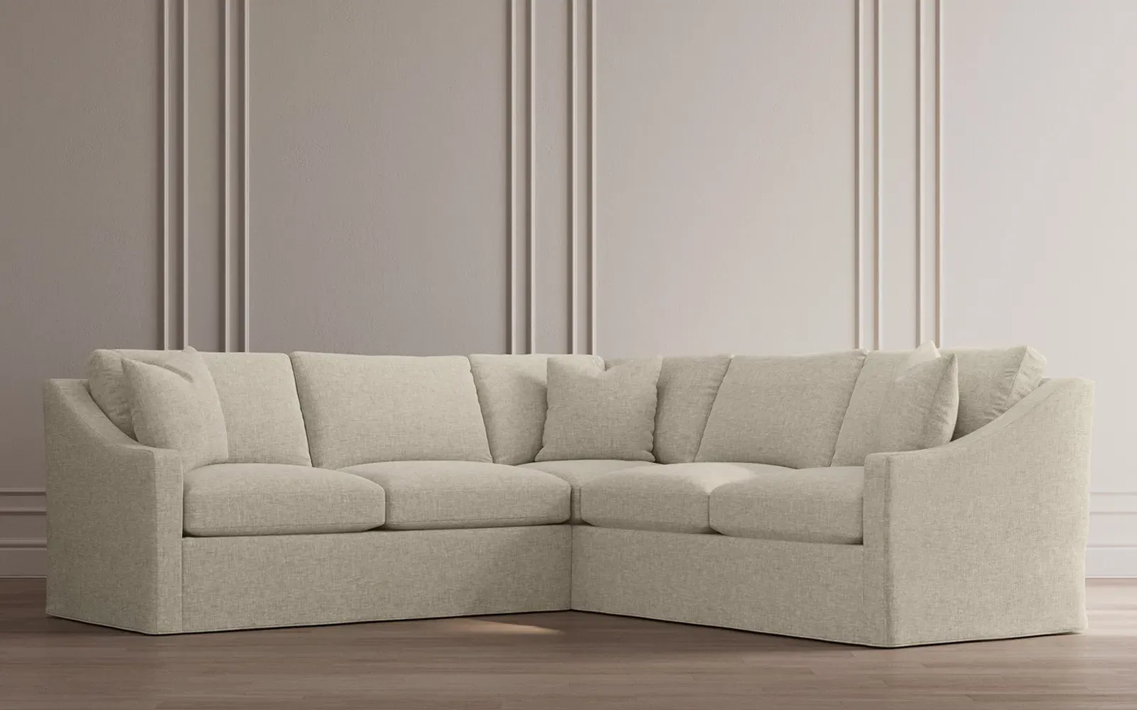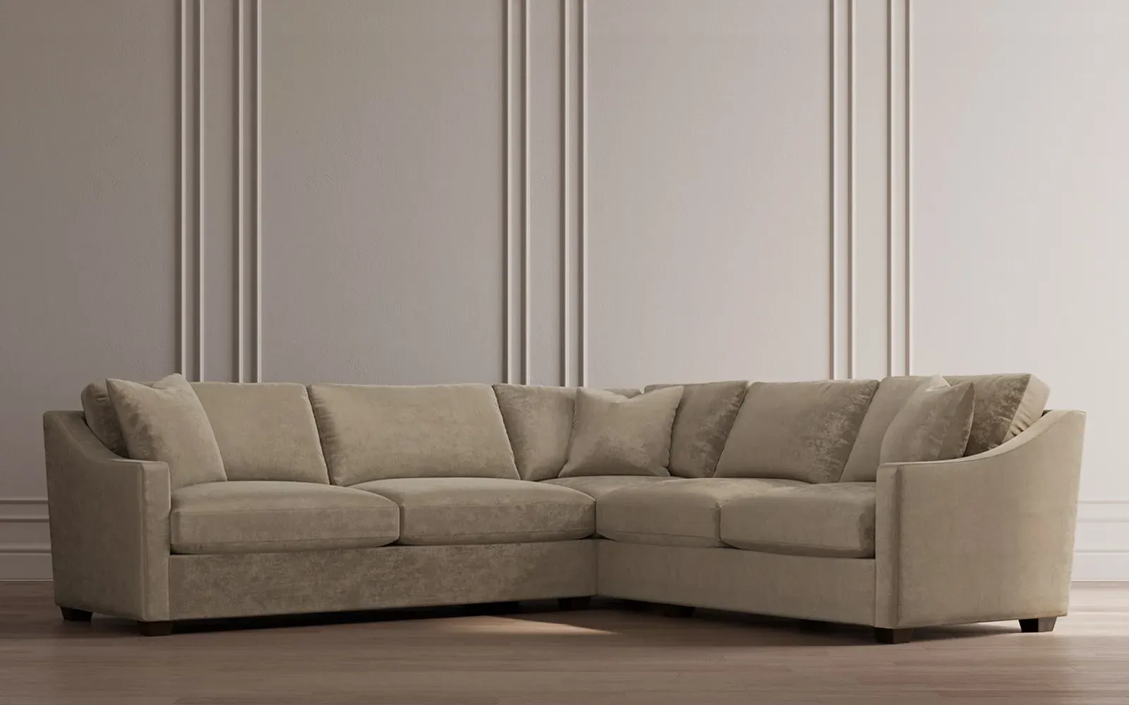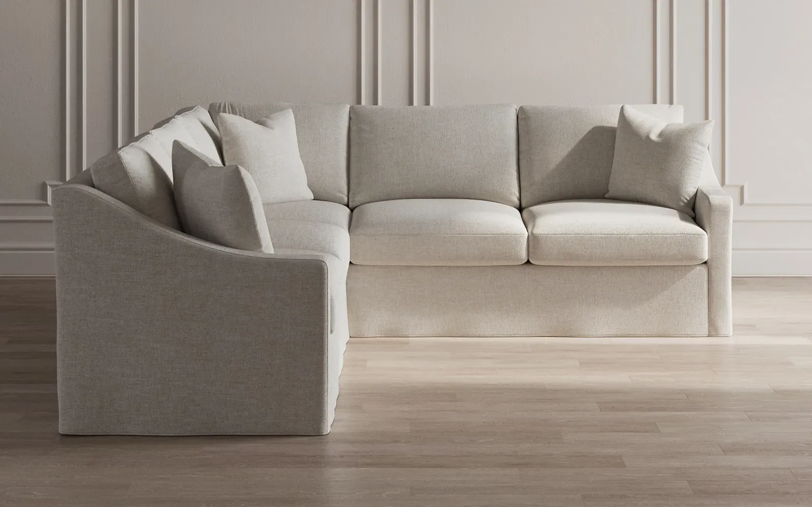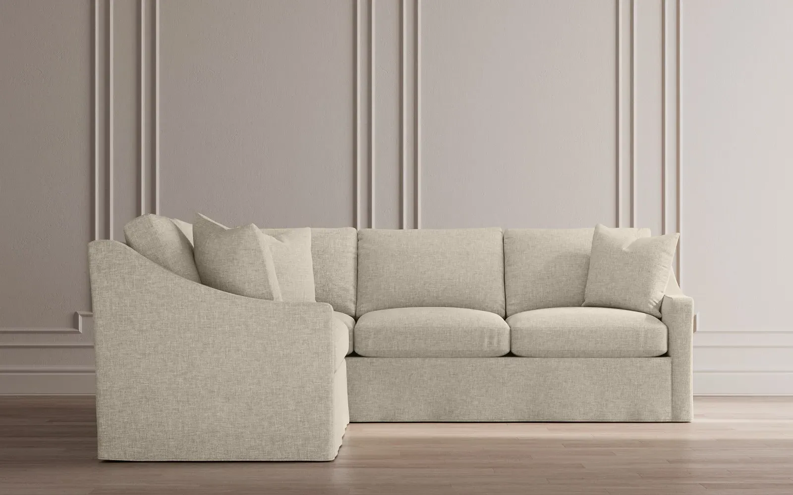 The left 111” Avery corner sectional brings casual comfort and elevated simplicity to any living space. Tapered wood legs ground the frame, while gently sloped arms lend a touch of elegance to the timeless silhouette. Soft yet supportive with a slightly firm sit, the low-maintenance seat cushions feature a foam core surrounded by plush fiber fill. Cozy throw pillows make for easy lounging. Choose from a variety of upholstery options, including linen, velvet, and performance fabrics. <b>Overall Dimensions:</b> 111" W x 111" D x 36" H. <b>End Sofa Dimensions:</b> 72” W x 39” D x 36" H; <b>End Sofa with Corner Dimensions:</b> 111” W x 39” D x 36" H; <b>Seat Dimensions:</b> 23” D x 22” H; <b>Arm Height:</b> 26”; <b>Leg Height:</b> 2.5”. <b>Materials:</b> FSC®-certified, US-sourced, formaldehyde-free solid kiln-dried hardwood and furniture-grade laminates. <b>Material Finish:</b> Espresso legs. <b>Pieces Included:</b> Left end sofa, right end sofa with corner.