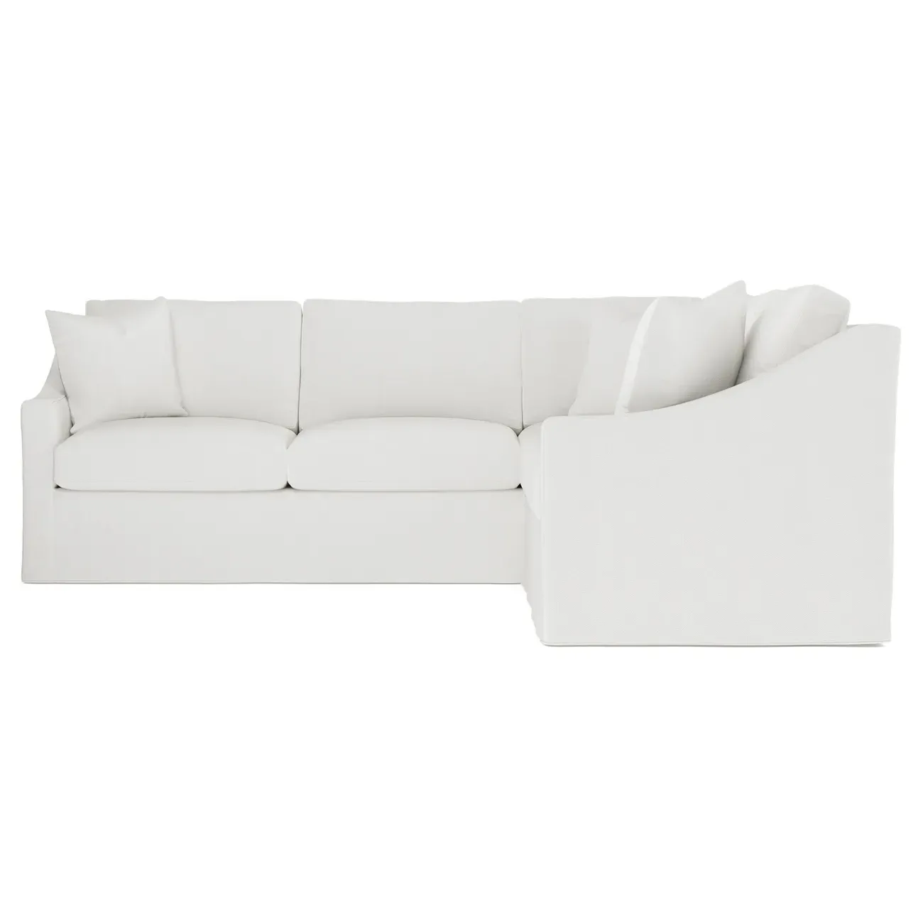 The Avery corner sectional offers casual comfort with its gently sloped arms and tapered wood legs that ground the frame. Its seat cushions feature a foam core surrounded by plush fiber fill, providing soft yet supportive seating with a slightly firm sit. The low-maintenance design includes cozy throw pillows for easy lounging, while the FSC-certified kiln-dried hardwood construction ensures durability. W282 x D282 x H91 cm.