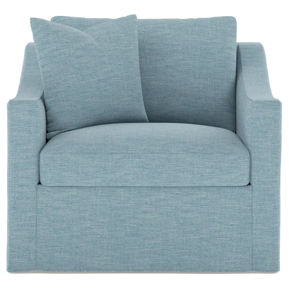 The Avery slipcovered chair combines comfort with low-maintenance design, featuring gently sloped arms that frame the seat while a relaxed slipcover grazes the floor. Its Harmony cushion provides supportive seating with a high-density foam core surrounded by plush fiber fill, while the washable slipcover fabric offers easy care. The FSC-certified hardwood frame ensures durability, and the breathable fabric ticking prevents shifting for consistent comfort. W107 x D99 x H94 cm.
