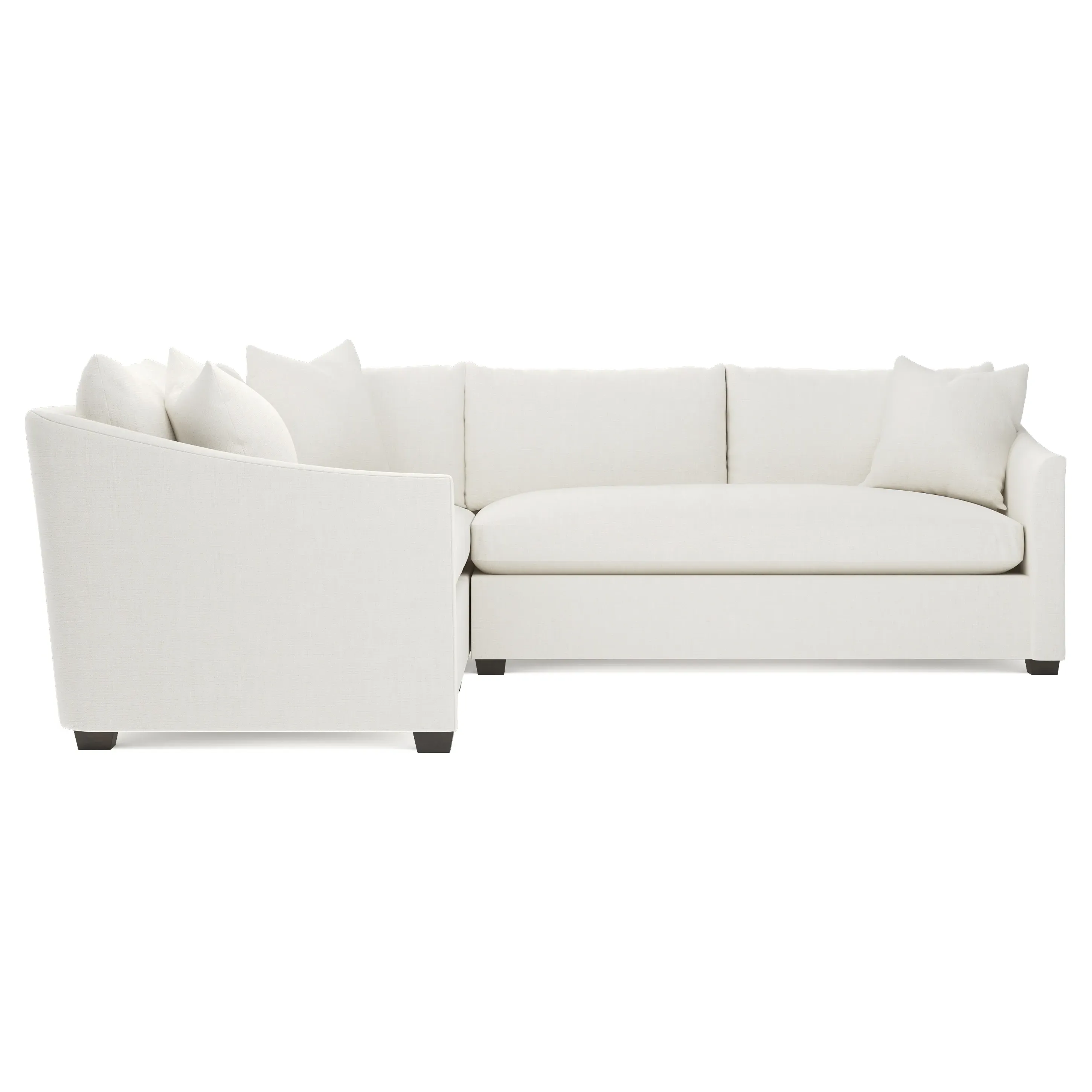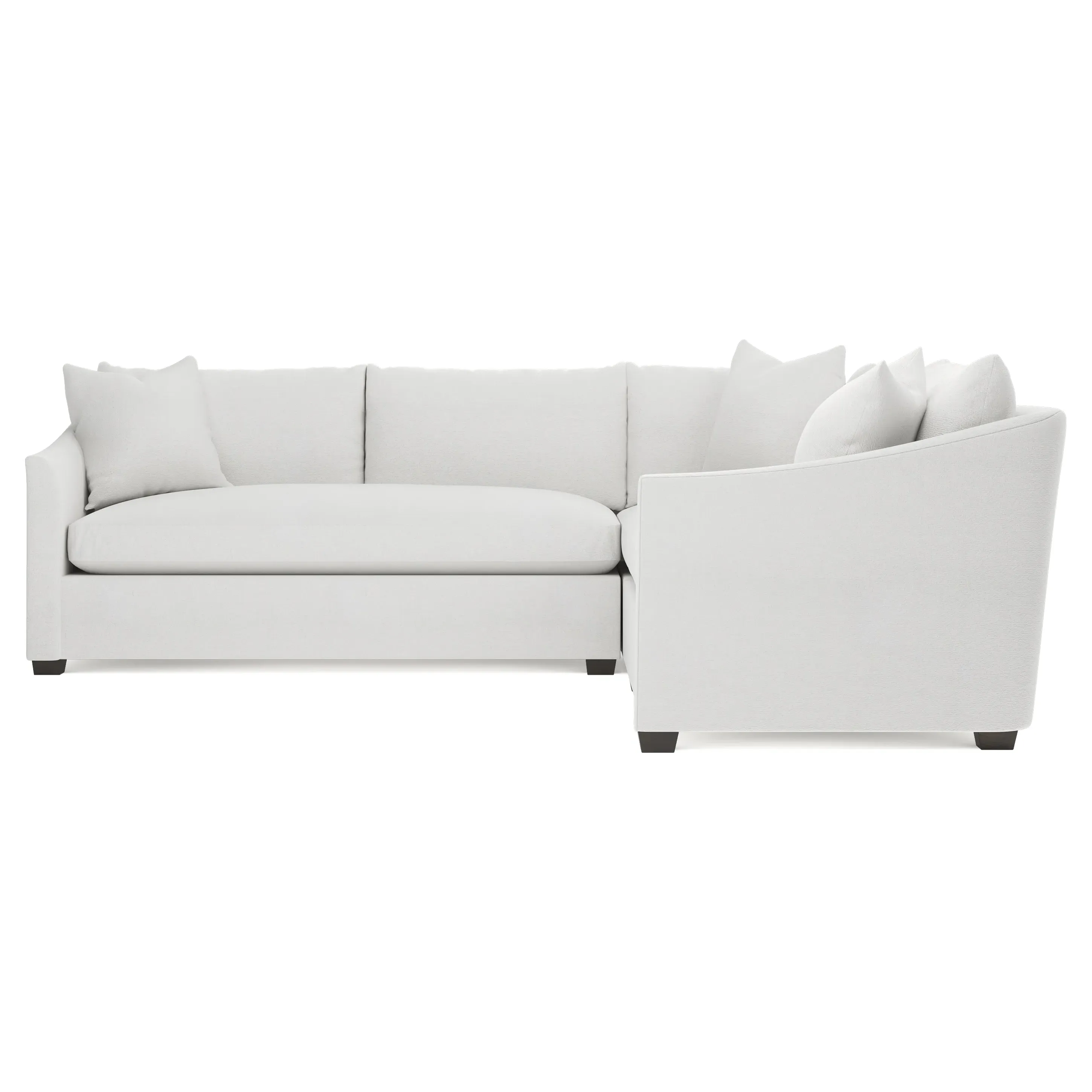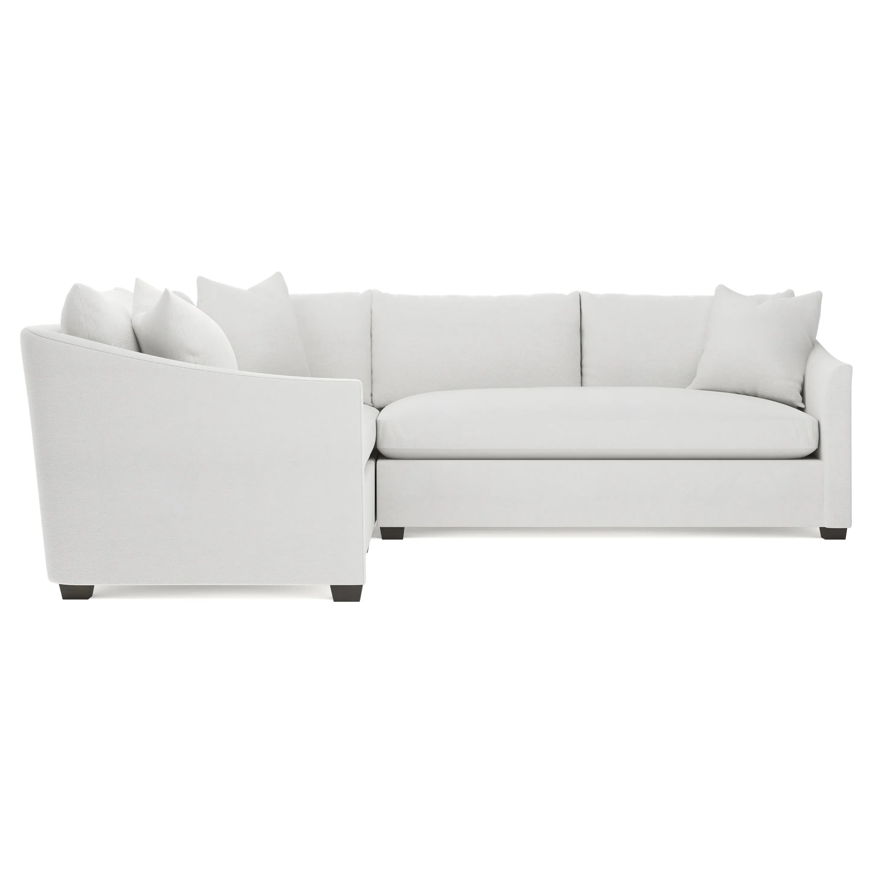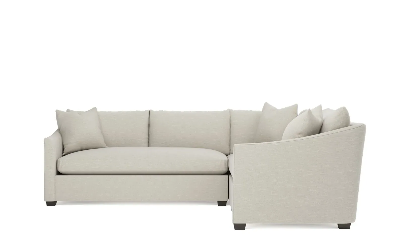 The left 105” Clairmont corner sectional is understated and comfortable, with a generous form perfect for any family room or great room. Set atop tapered wood legs, the inviting silhouette includes softly sloped arms, gently curved back corners, and cozy throw pillows. Soft yet supportive with a slightly firm sit, the low-maintenance seat cushions feature a foam core surrounded by plush fiber fill. Choose from a variety of upholstery options, including linen, velvet, and performance fabrics. <b>Overall Dimensions:</b> 105" W x 104" D x 36" H. <b>End Sofa Dimensions:</b> 66” W x 39” D x 36" H; <b>End Sofa with Corner Dimensions:</b> 104” W x 39” D x 36" H; <b>Seat Dimensions:</b> 24” D x 22” H; <b>Arm Height:</b> 28”; <b>Leg Height:</b> 2”. <b>Materials:</b> FSC®-certified, US-sourced, formaldehyde-free solid kiln-dried hardwood and furniture-grade laminates. <b>Material Finish:</b> Espresso legs. <b>Pieces Included:</b> Left end sofa, right end sofa with corner.