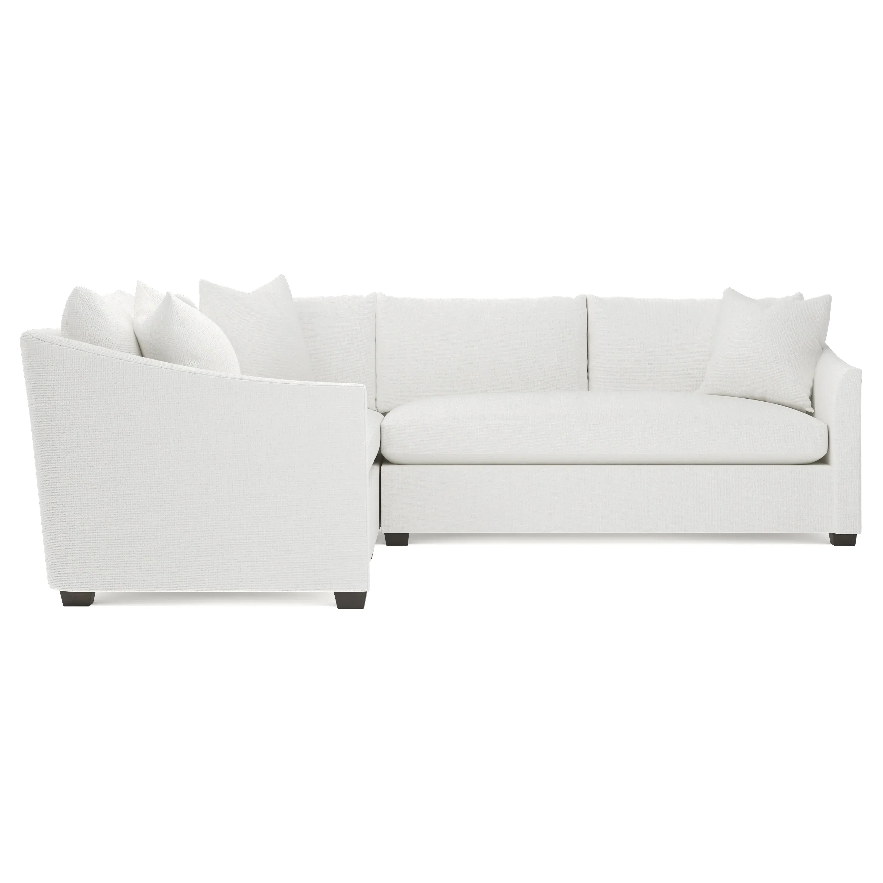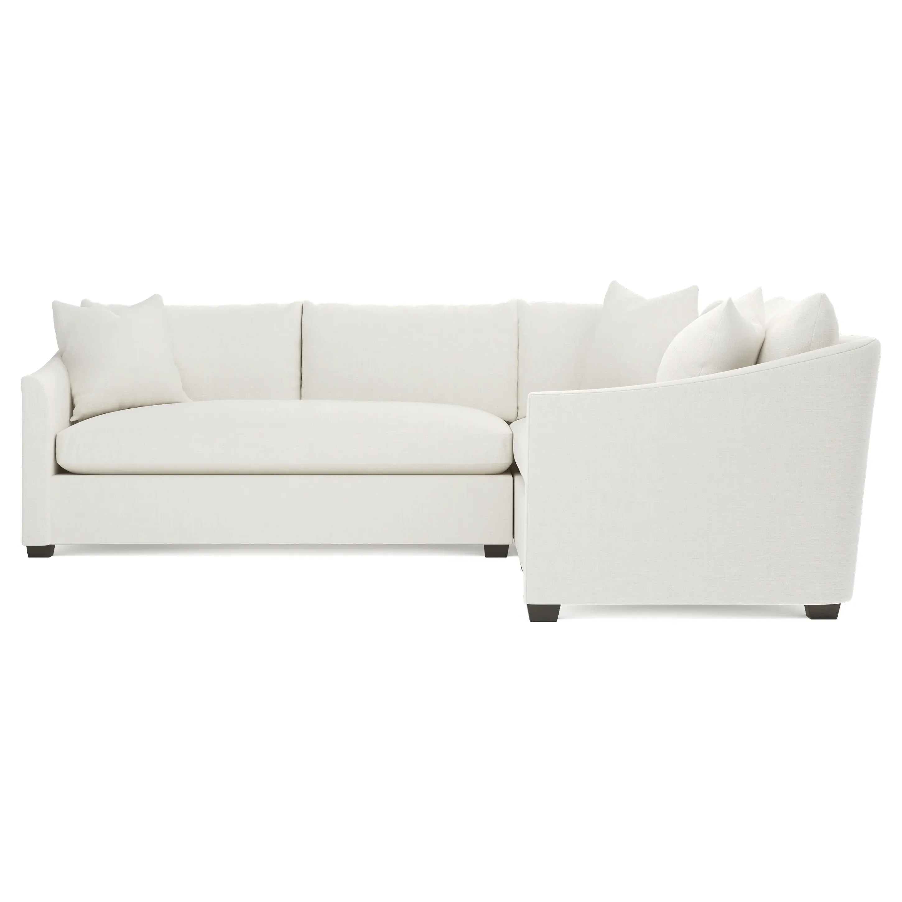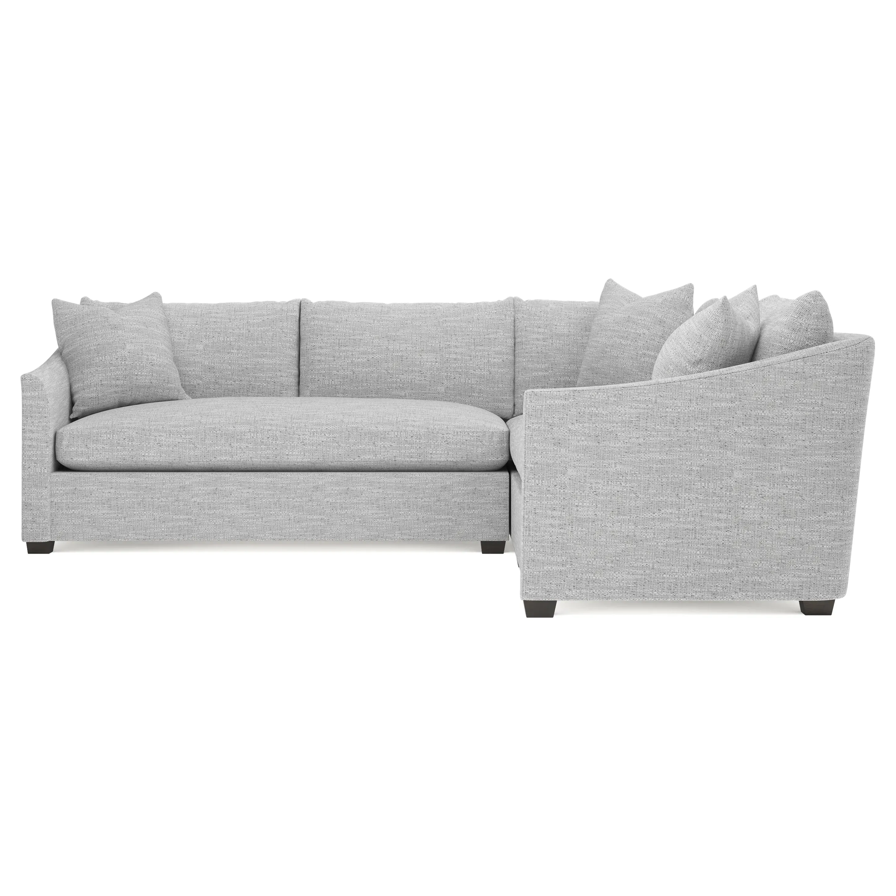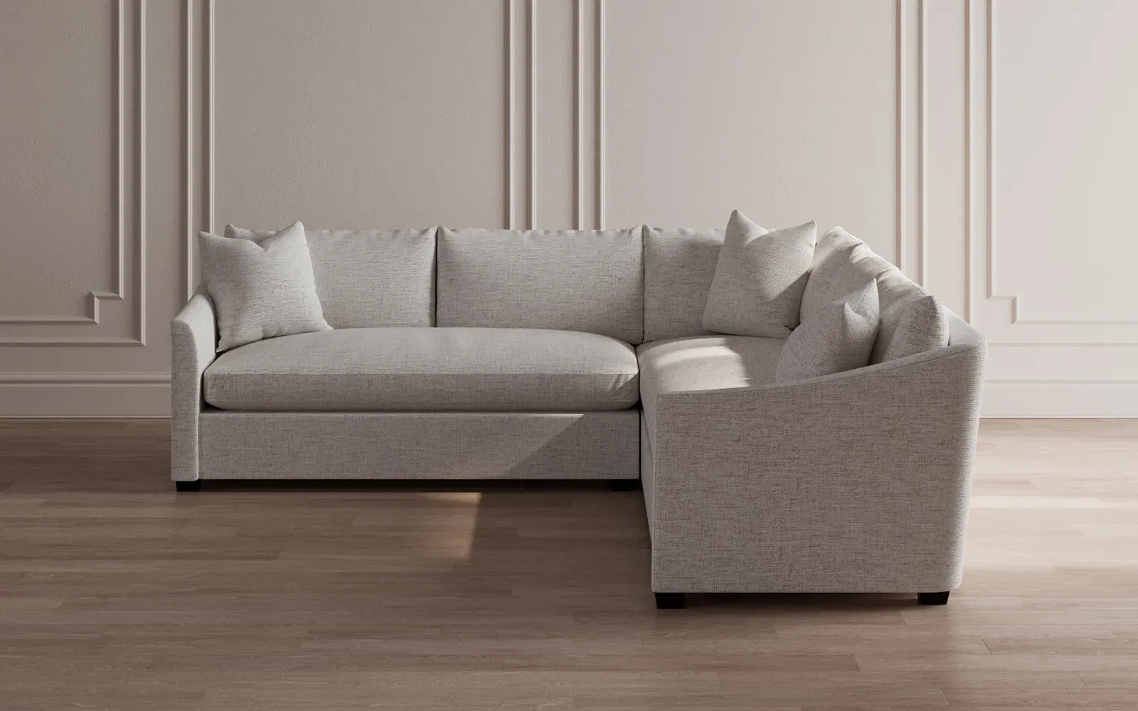 The left 105” Clairmont corner sectional is understated and comfortable, with a generous form perfect for any family room or great room. Set atop tapered wood legs, the inviting silhouette includes softly sloped arms, gently curved back corners, and cozy throw pillows. Soft yet supportive with a slightly firm sit, the low-maintenance seat cushions feature a foam core surrounded by plush fiber fill. Choose from a variety of upholstery options, including linen, velvet, and performance fabrics. <b>Overall Dimensions:</b> 105" W x 104" D x 36" H. <b>End Sofa Dimensions:</b> 66” W x 39” D x 36" H; <b>End Sofa with Corner Dimensions:</b> 104” W x 39” D x 36" H; <b>Seat Dimensions:</b> 24” D x 22” H; <b>Arm Height:</b> 28”; <b>Leg Height:</b> 2”. <b>Materials:</b> FSC®-certified, US-sourced, formaldehyde-free solid kiln-dried hardwood and furniture-grade laminates. <b>Material Finish:</b> Espresso legs. <b>Pieces Included:</b> Left end sofa, right end sofa with corner.