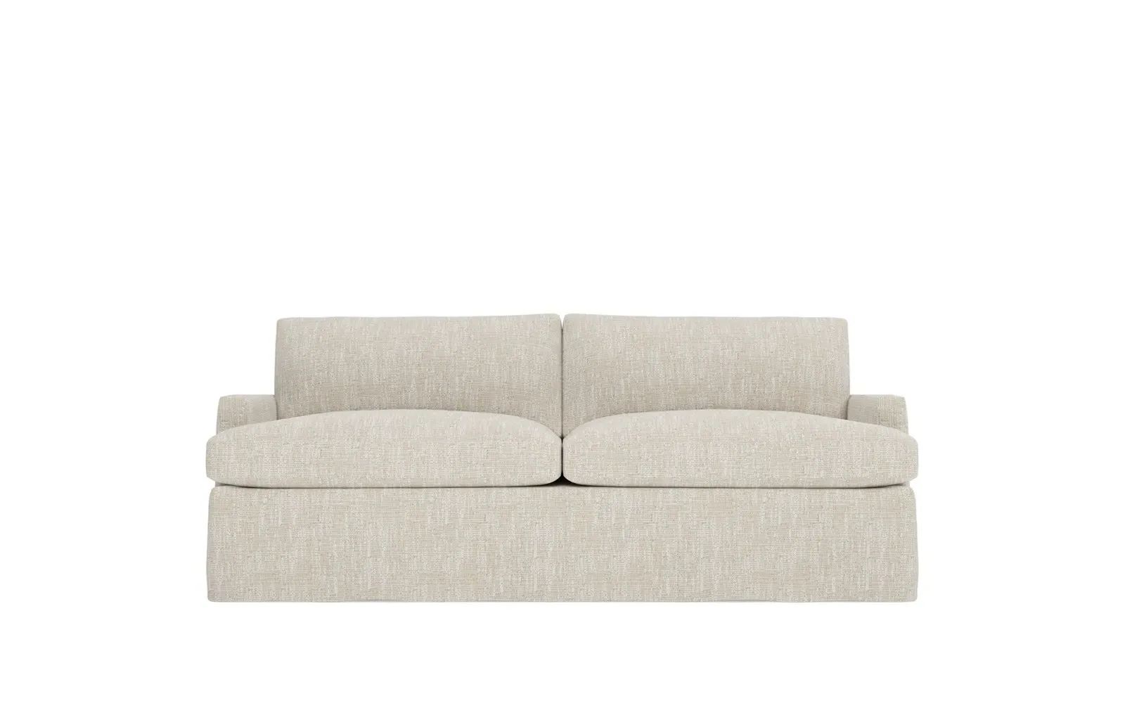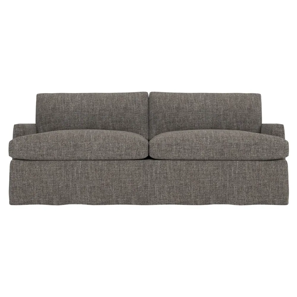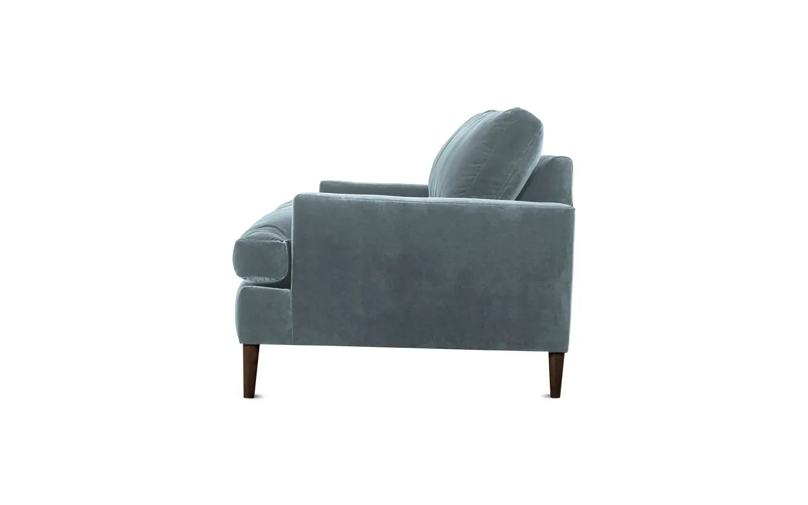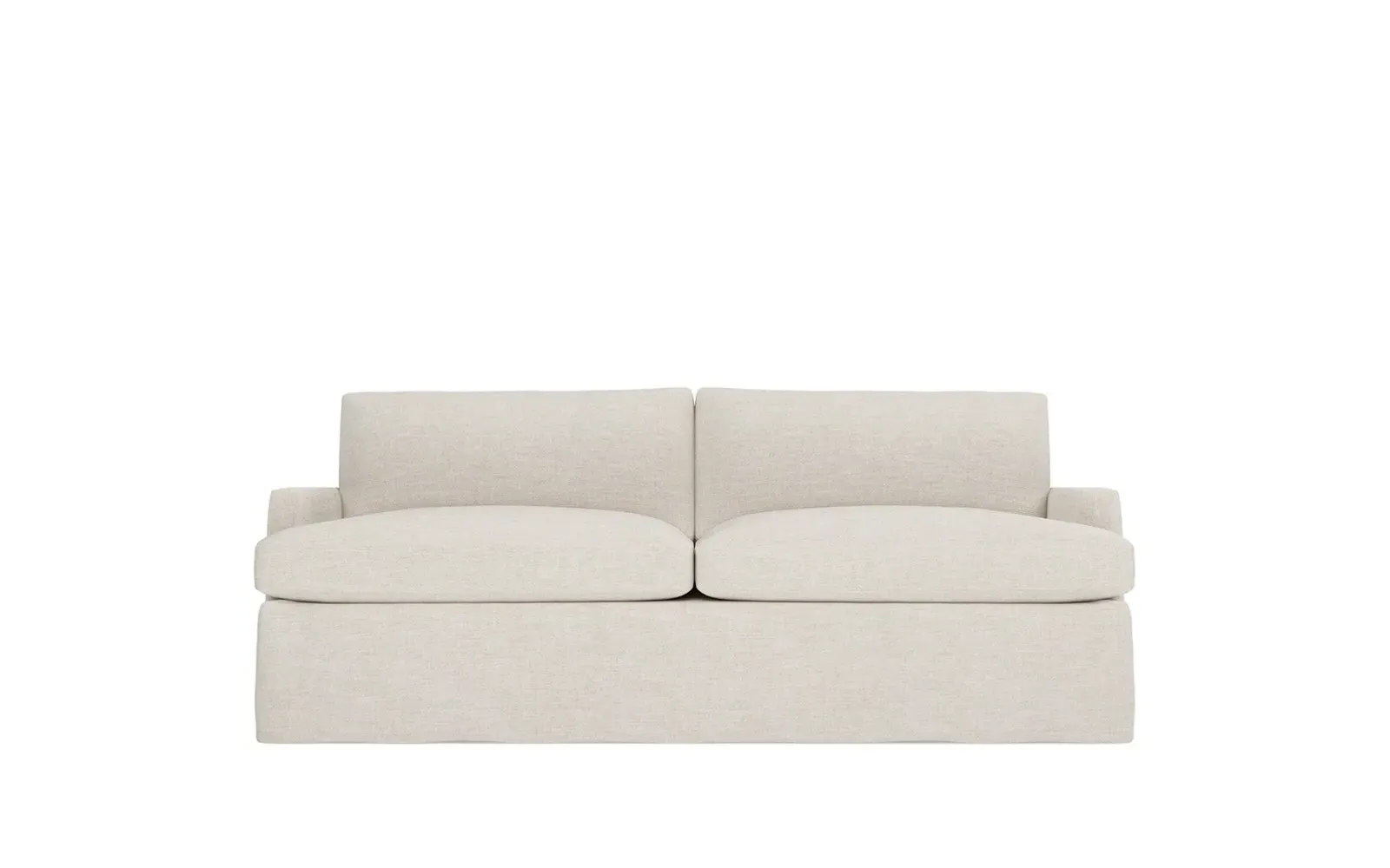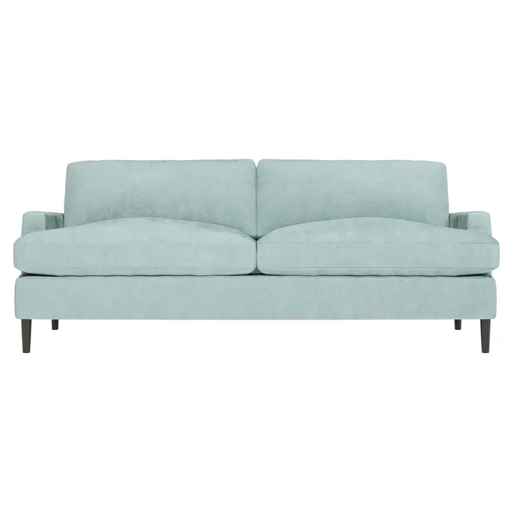 The 86" Claudie sofa draws inspiration from mid-century modern style, with clean lines and low track arms. Its tapered wood legs are slightly taller in the front, giving the frame a gentle upward stance. Soft yet supportive, the seat cushions are designed for supreme comfort, with a foam core surrounded by a blend of fiber, down, and feather fill. Choose from a variety of upholstery options, including linen, velvet, and performance fabrics. <b>Overall Dimensions:</b> 86" W x 41" D x 36" H. <b>Seat Dimensions:</b> 25” D x 23” H; <b>Distance Between Arms:</b> 77”; <b>Arm Height:</b> 24”; <b>Rear Leg Height:</b> 5 ¾”; <b>Front Leg Height:</b> 6 ¾”. <b>Materials:</b> FSC®-certified, US-sourced, formaldehyde-free solid kiln-dried hardwood and furniture-grade laminates. <b>Material Finish:</b> Espresso. <b>Cushion Fill:</b> A CertiPUR-US® certified, high-resiliency foam core wrapped with a super soft foam layer then inserted into a channel-quilted casing filled with a blend of 50% fiber, 5% down, and 45% feather.