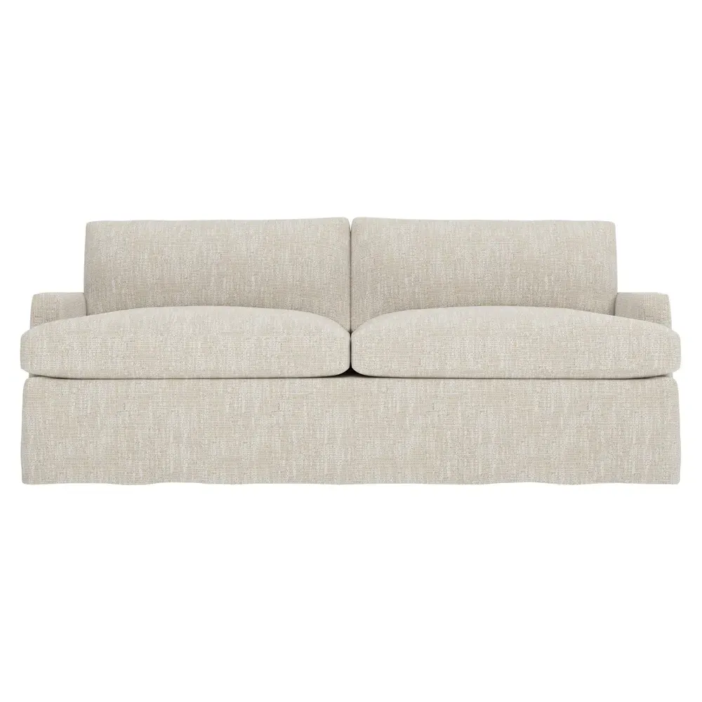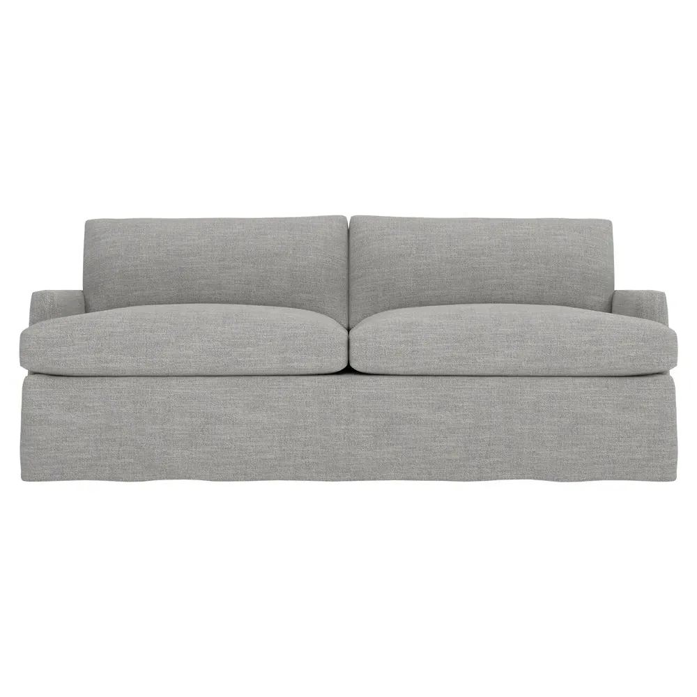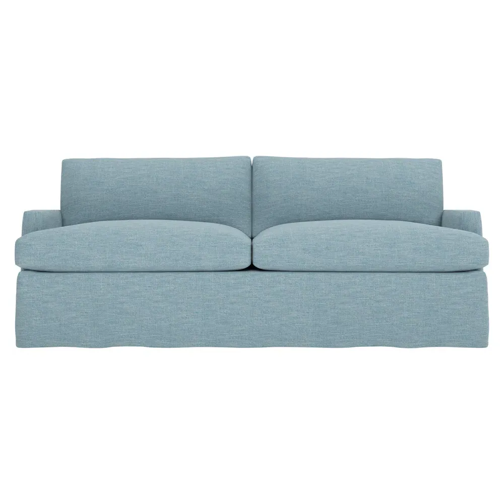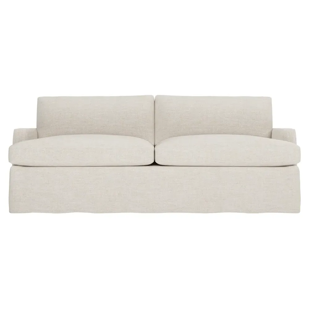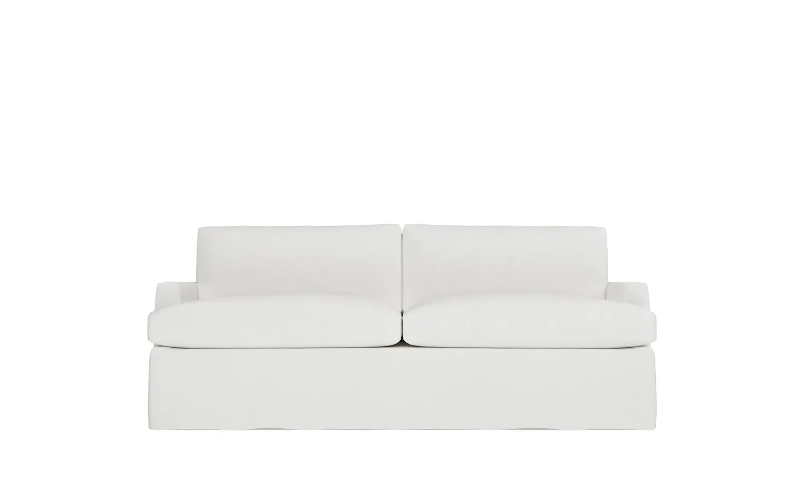 The 86" Claudie sofa draws inspiration from mid-century modern style, with clean lines and low track arms. Its tapered wood legs are slightly taller in the front, giving the frame a gentle upward stance. Soft yet supportive, the seat cushions are designed for supreme comfort, with a foam core surrounded by a blend of fiber, down, and feather fill. Choose from a variety of upholstery options, including linen, velvet, and performance fabrics. <b>Overall Dimensions:</b> 86" W x 41" D x 36" H. <b>Seat Dimensions:</b> 25” D x 23” H; <b>Distance Between Arms:</b> 77”; <b>Arm Height:</b> 24”; <b>Rear Leg Height:</b> 5 ¾”; <b>Front Leg Height:</b> 6 ¾”. <b>Materials:</b> FSC®-certified, US-sourced, formaldehyde-free solid kiln-dried hardwood and furniture-grade laminates. <b>Material Finish:</b> Espresso. <b>Cushion Fill:</b> A CertiPUR-US® certified, high-resiliency foam core wrapped with a super soft foam layer then inserted into a channel-quilted casing filled with a blend of 50% fiber, 5% down, and 45% feather.