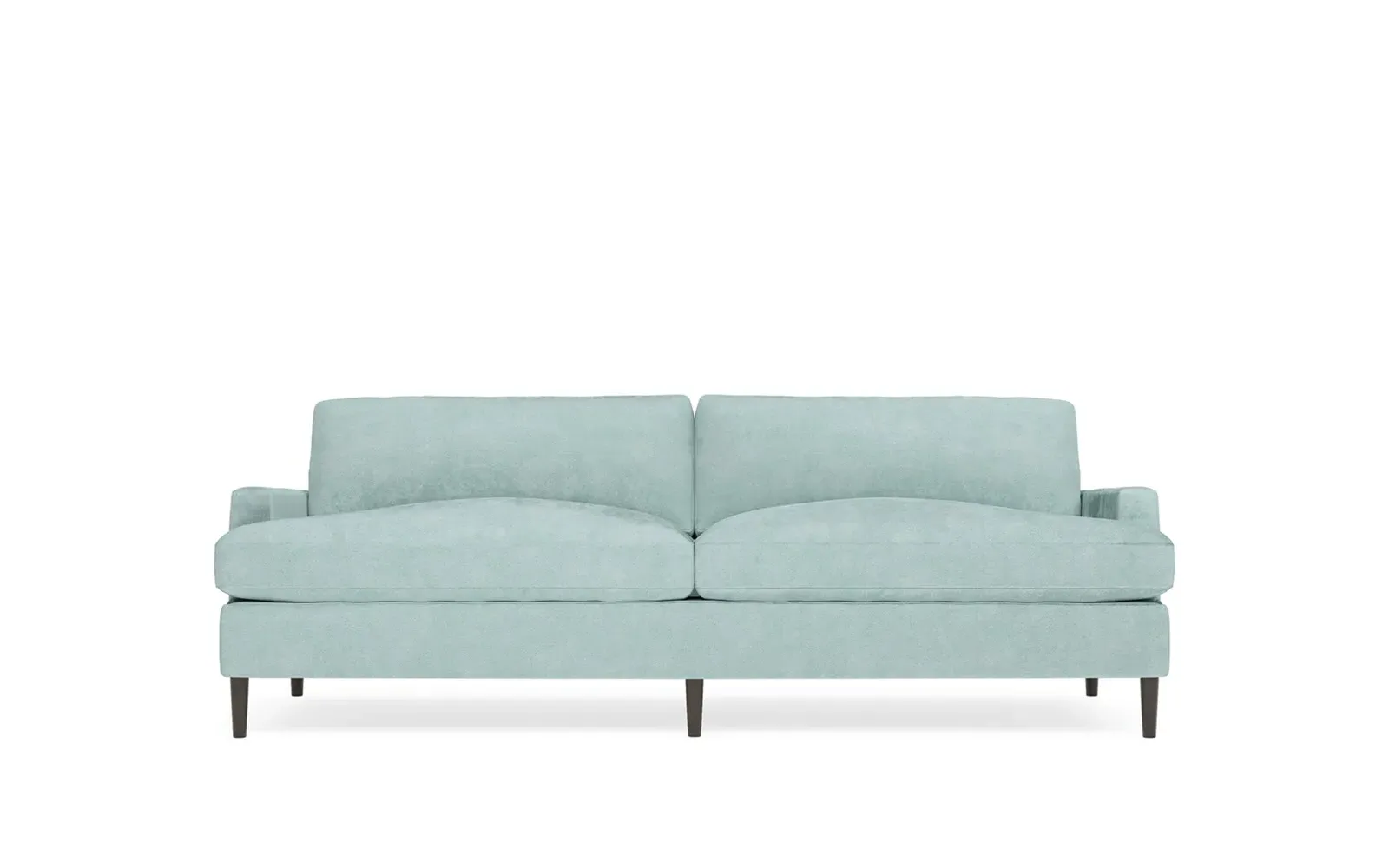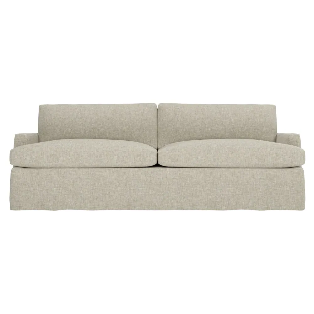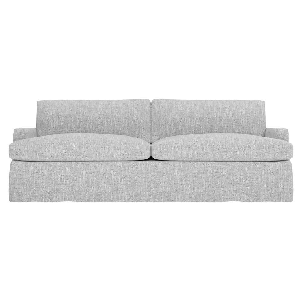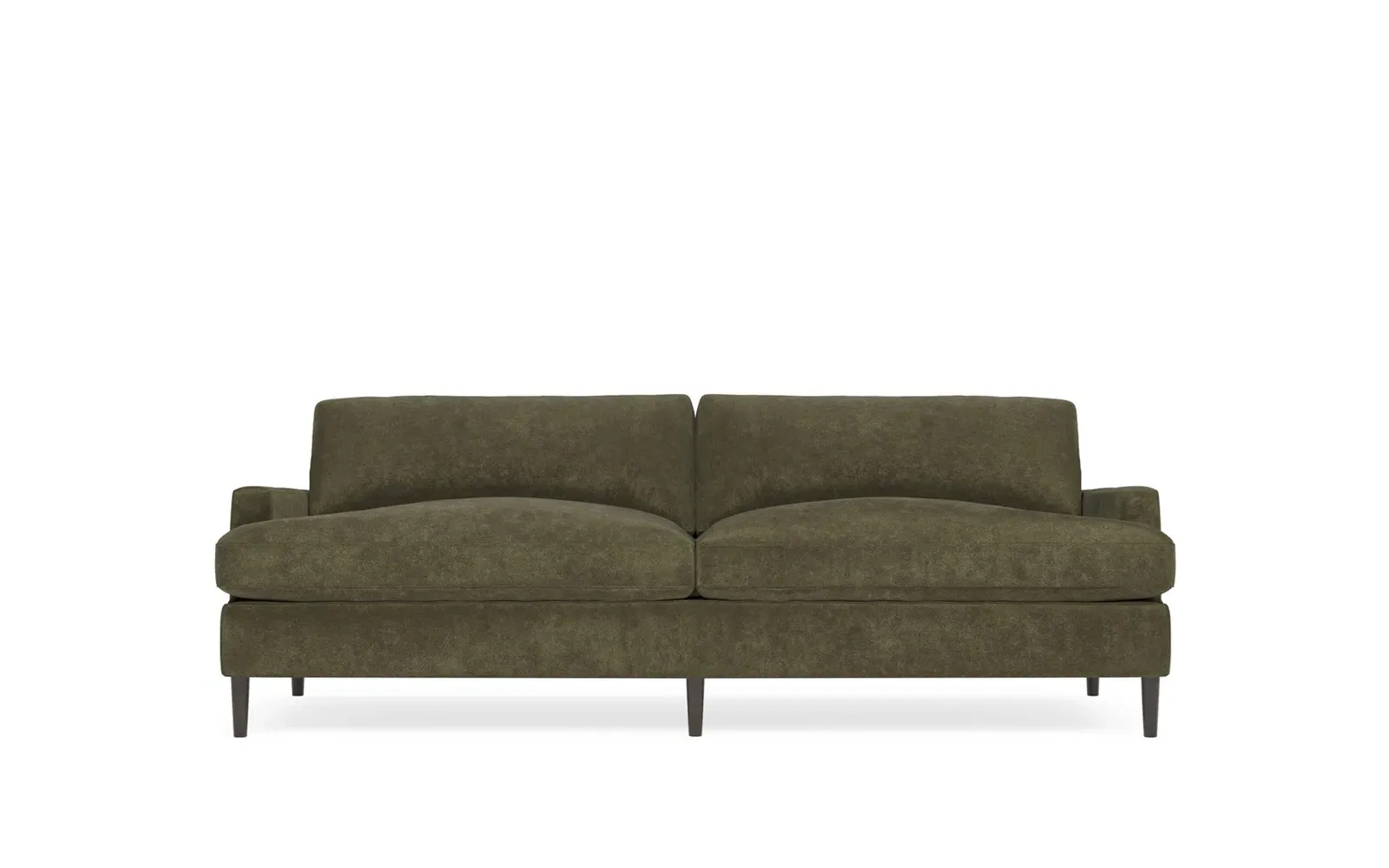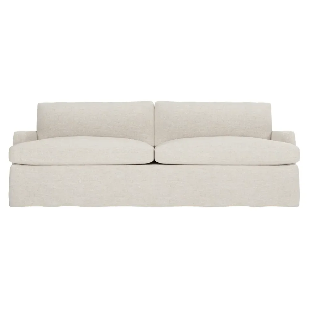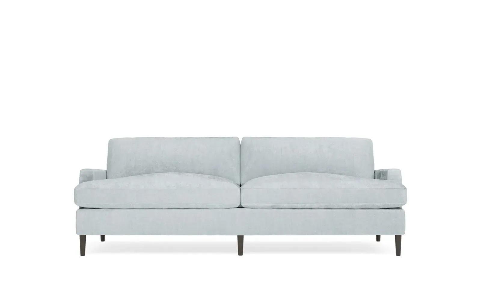 The 96" Claudie sofa draws inspiration from mid-century modern style, with clean lines and low track arms. Its tapered wood legs are slightly taller in the front, giving the frame a gentle upward stance. Soft yet supportive, the seat cushions are designed for supreme comfort, with a foam core surrounded by a blend of fiber, down, and feather fill. Choose from a variety of upholstery options, including linen, velvet, and performance fabrics. <b>Overall Dimensions:</b> 96" W x 41" D x 36" H. <b>Seat Dimensions:</b> 25” D x 23” H; <b>Distance Between Arms:</b> 88”; <b>Arm Height:</b> 24”; <b>Rear Leg Height:</b> 5 ¾”; <b>Front Leg Height:</b> 6 ¾”. <b>Materials:</b> FSC®-certified, US-sourced, formaldehyde-free solid kiln-dried hardwood and furniture-grade laminates. <b>Material Finish:</b> Espresso legs. <b>Cushion Fill:</b> A CertiPUR-US® certified, high-resiliency foam core wrapped with a super soft foam layer then inserted into a channel-quilted casing filled with a blend of 50% fiber, 5% down, and 45% feather.