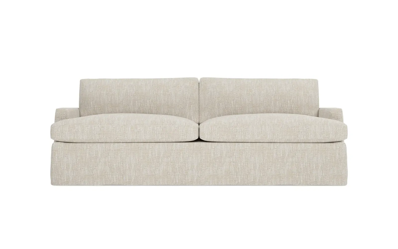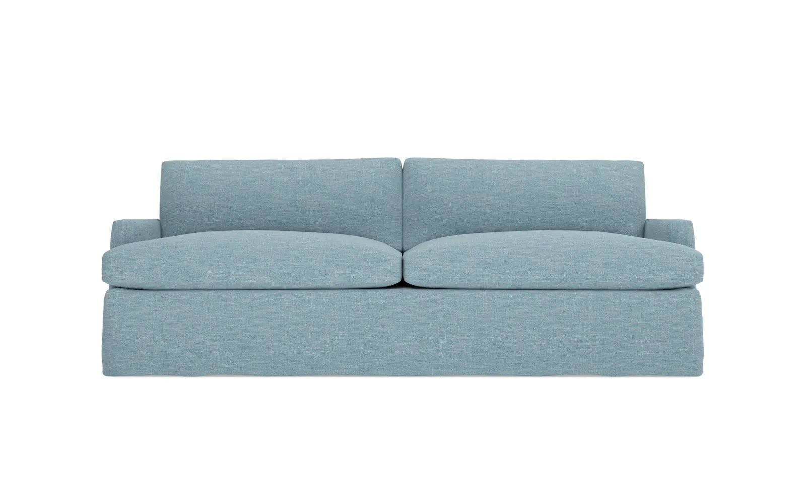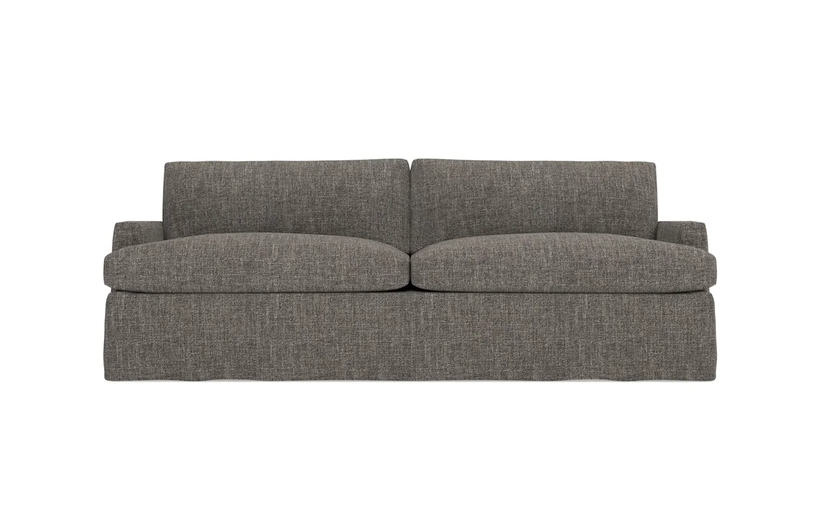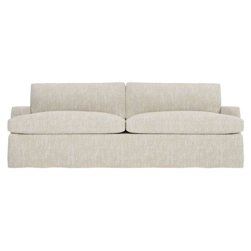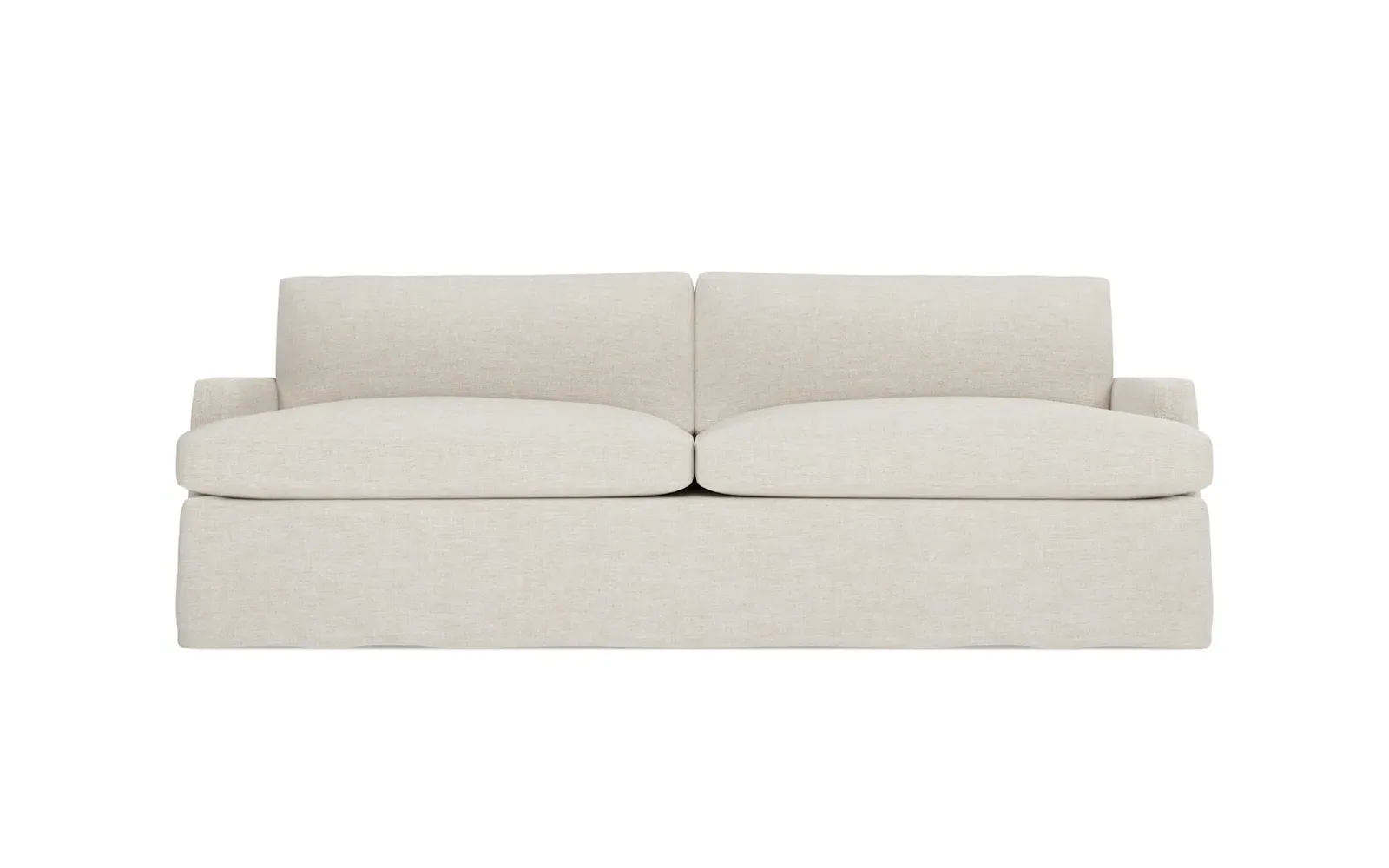 The 96" Claudie sofa draws inspiration from mid-century modern style, with clean lines and low track arms. Its tapered wood legs are slightly taller in the front, giving the frame a gentle upward stance. Soft yet supportive, the seat cushions are designed for supreme comfort, with a foam core surrounded by a blend of fiber, down, and feather fill. Choose from a variety of upholstery options, including linen, velvet, and performance fabrics. <b>Overall Dimensions:</b> 96" W x 41" D x 36" H. <b>Seat Dimensions:</b> 25” D x 23” H; <b>Distance Between Arms:</b> 88”; <b>Arm Height:</b> 24”; <b>Rear Leg Height:</b> 5 ¾”; <b>Front Leg Height:</b> 6 ¾”. <b>Materials:</b> FSC®-certified, US-sourced, formaldehyde-free solid kiln-dried hardwood and furniture-grade laminates. <b>Material Finish:</b> Espresso legs. <b>Cushion Fill:</b> A CertiPUR-US® certified, high-resiliency foam core wrapped with a super soft foam layer then inserted into a channel-quilted casing filled with a blend of 50% fiber, 5% down, and 45% feather.