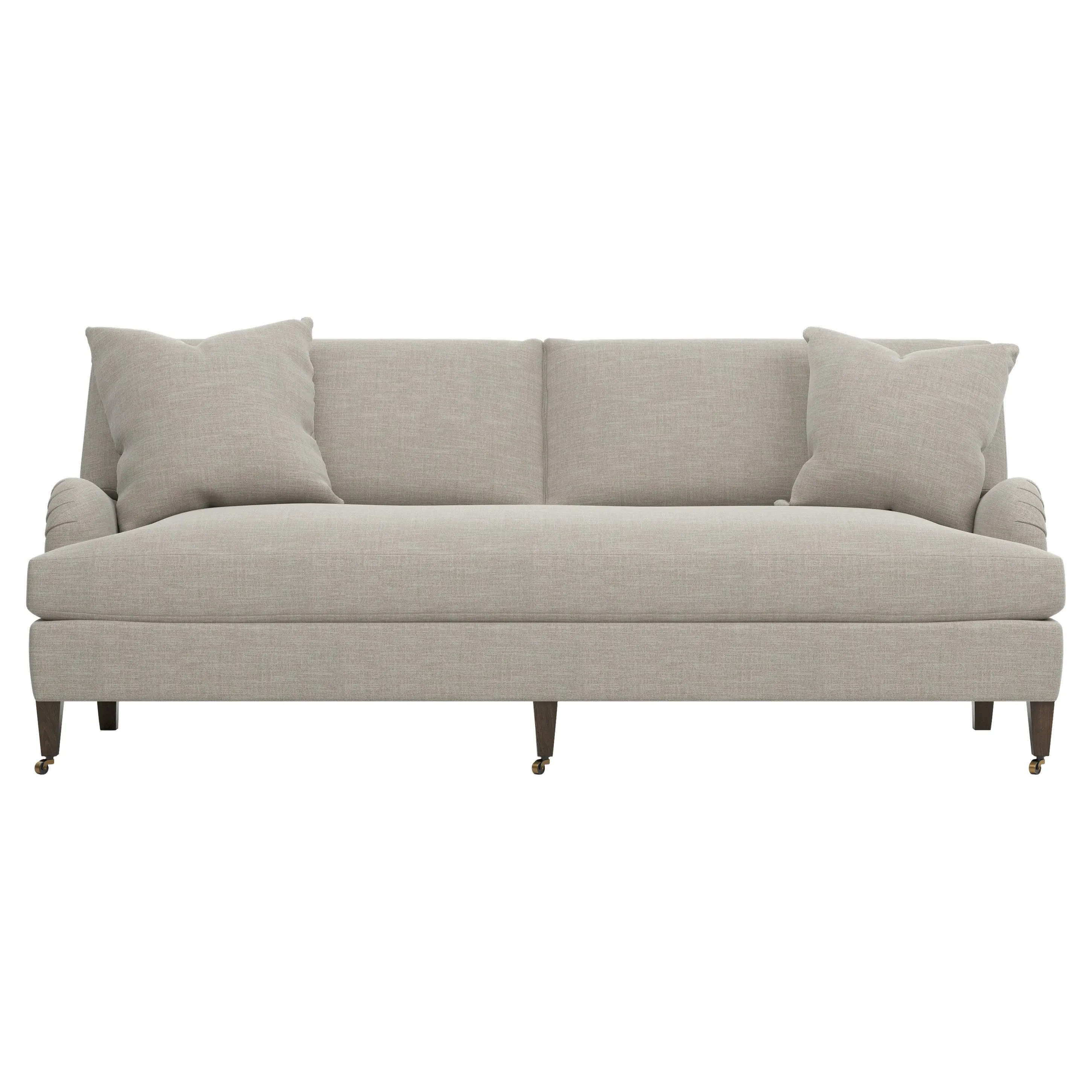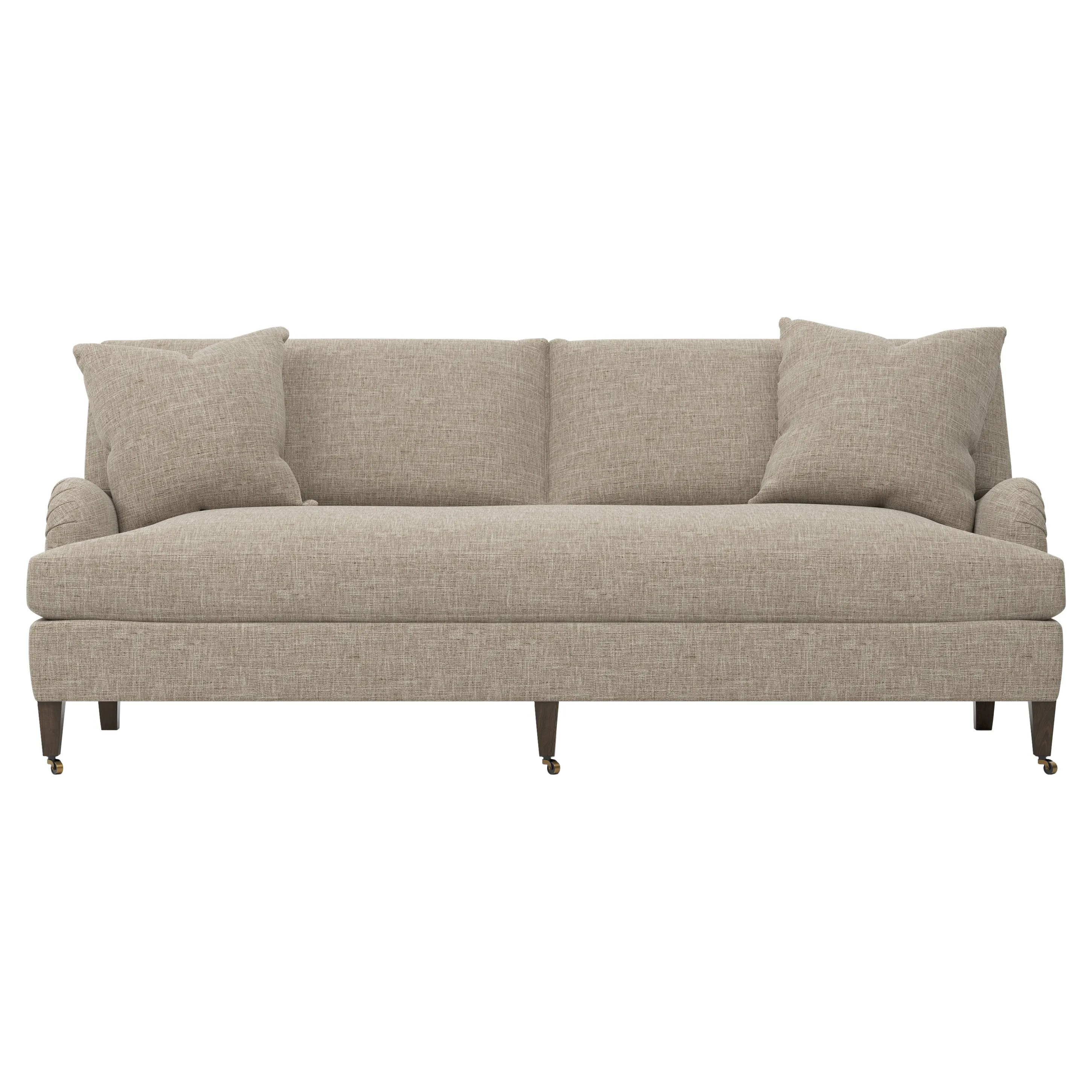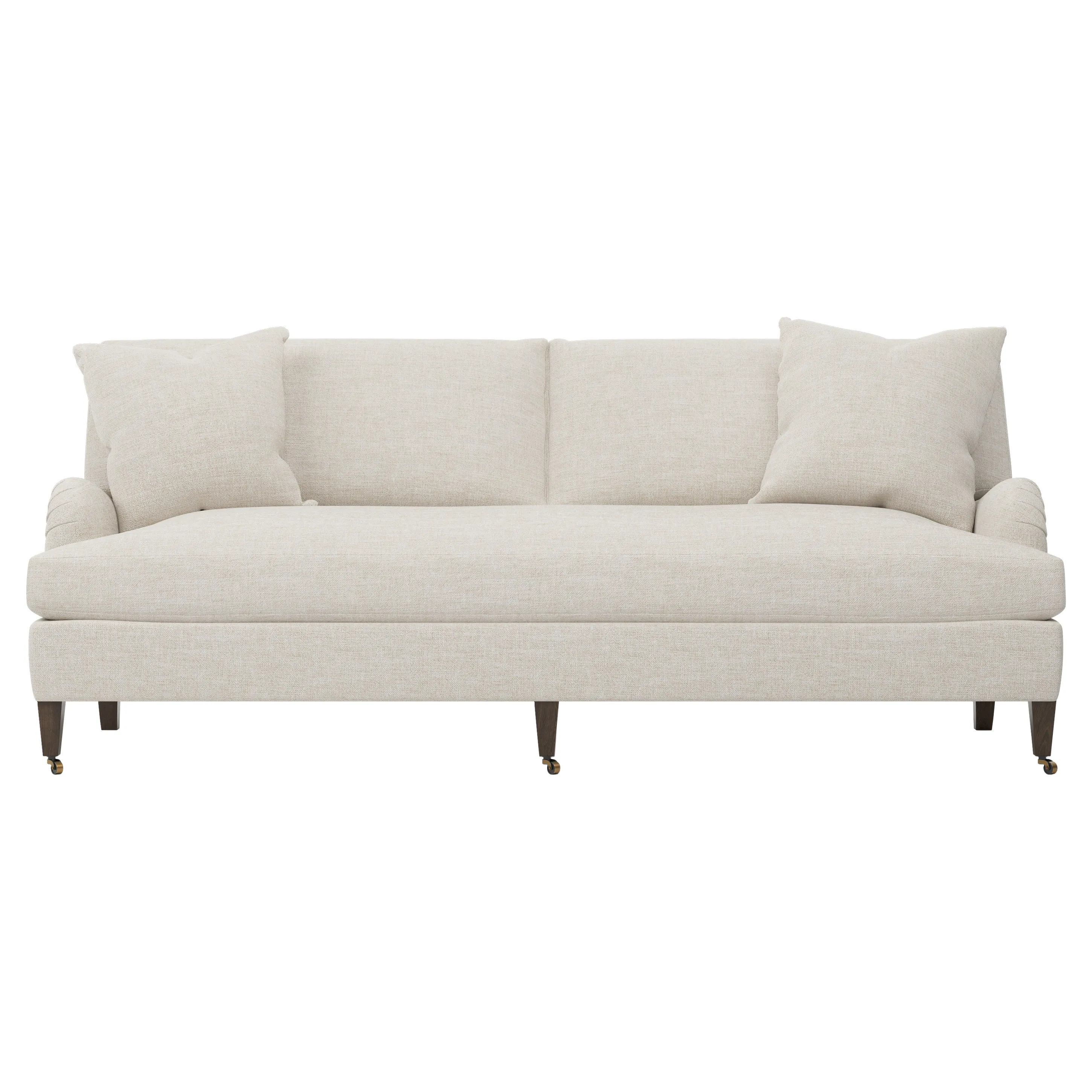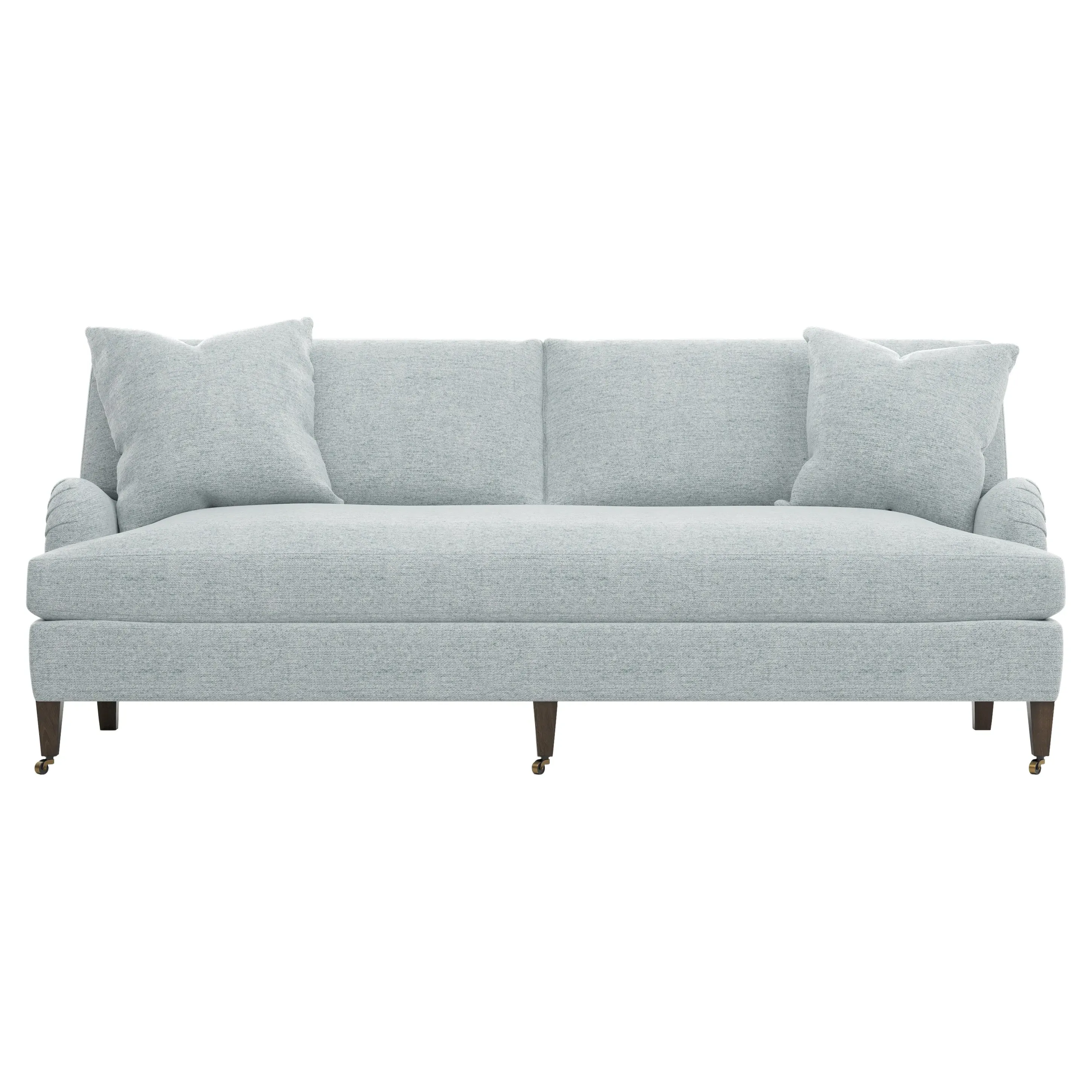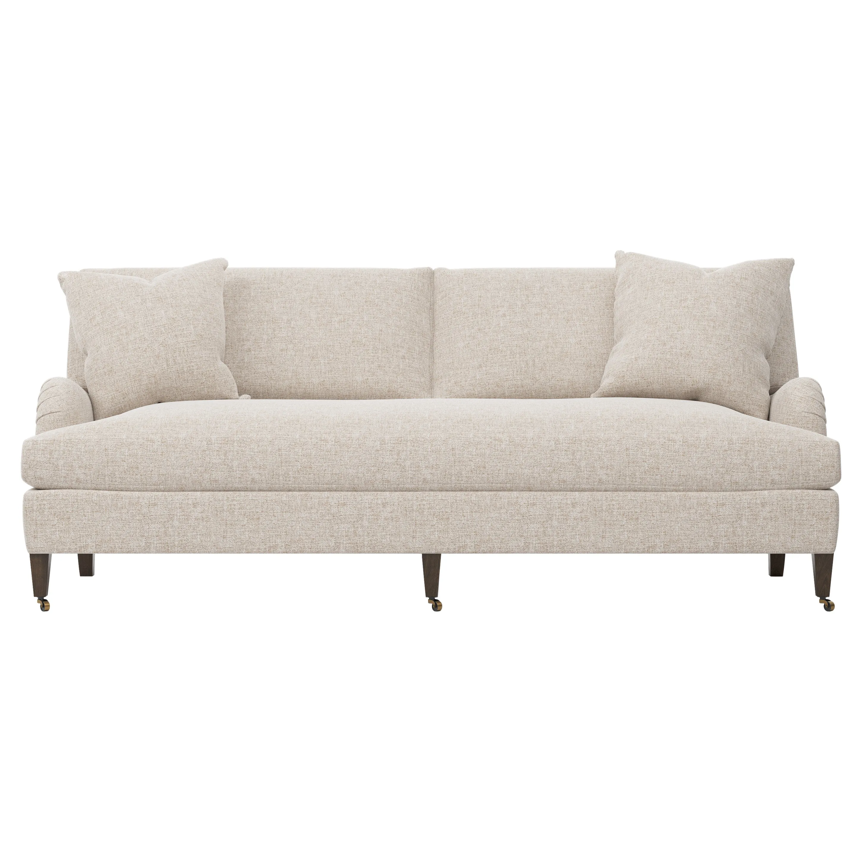 The Cordelia Bench Cushion Sofa combines comfort with sophisticated design, featuring a channel-quilted casing filled with a blend of fiber, down, and feather. Its FSC-certified kiln-dried hardwood frame provides lasting durability, while the high-resiliency foam core wrapped with soft foam delivers exceptional support. The espresso legs with brass casters add mobility and refined style. W236 x D104 x H94 cm.