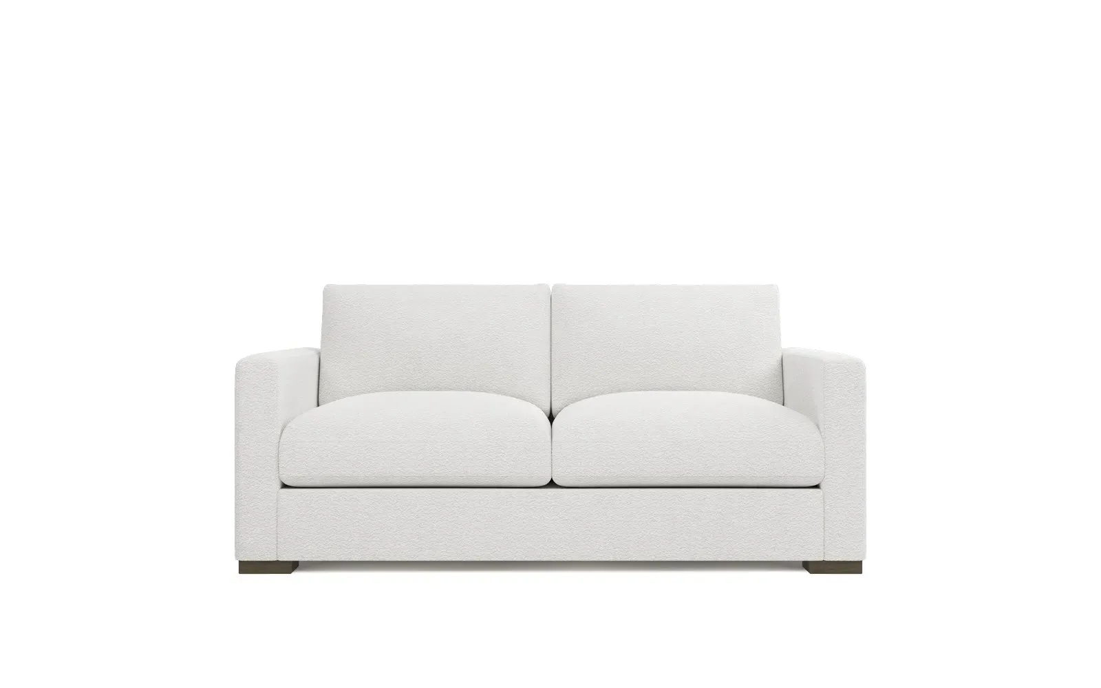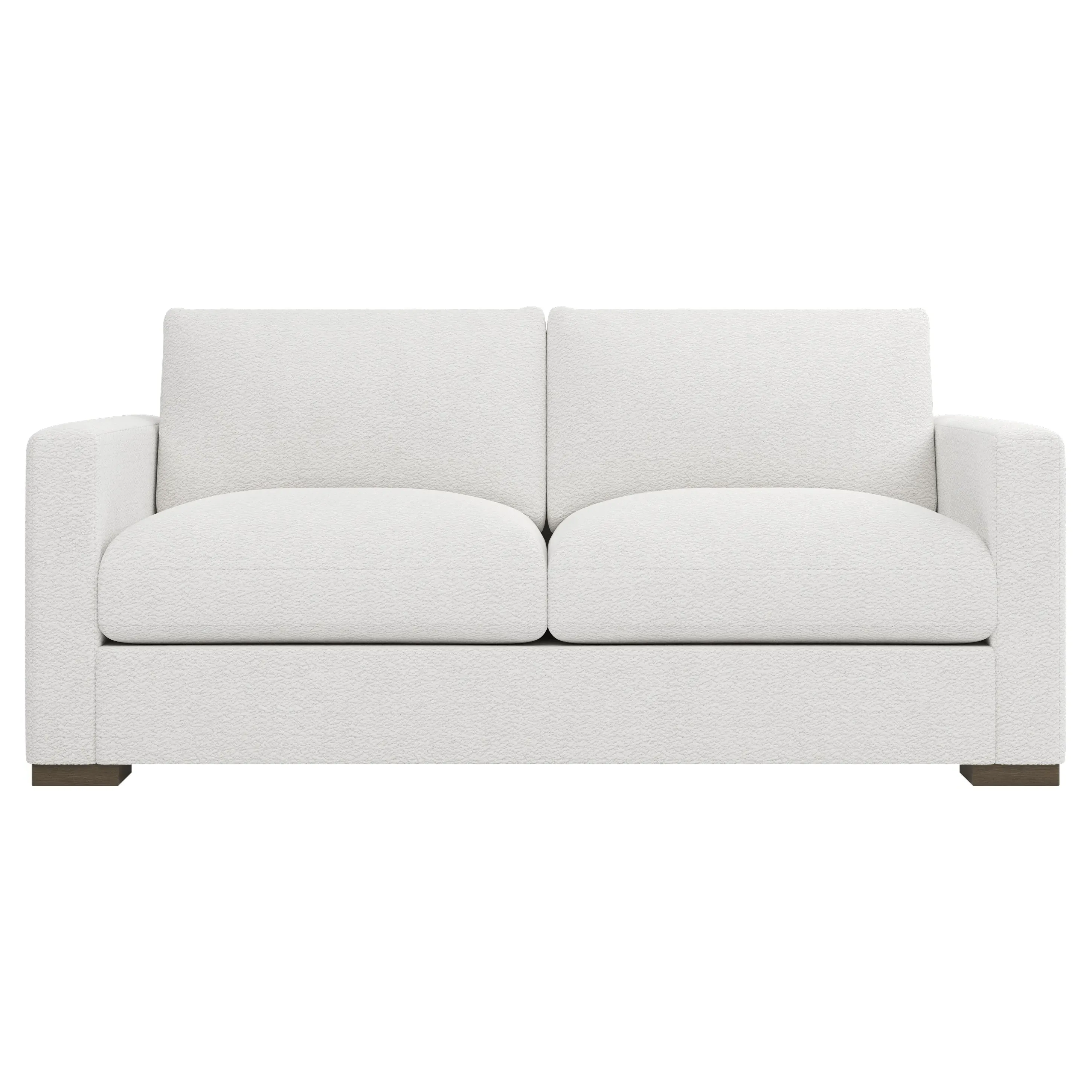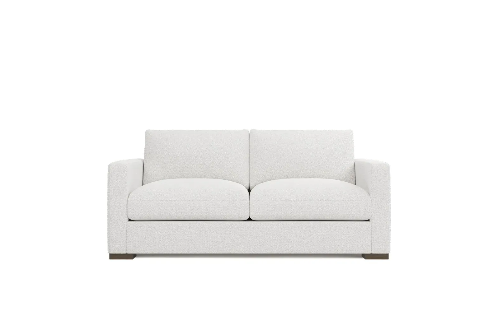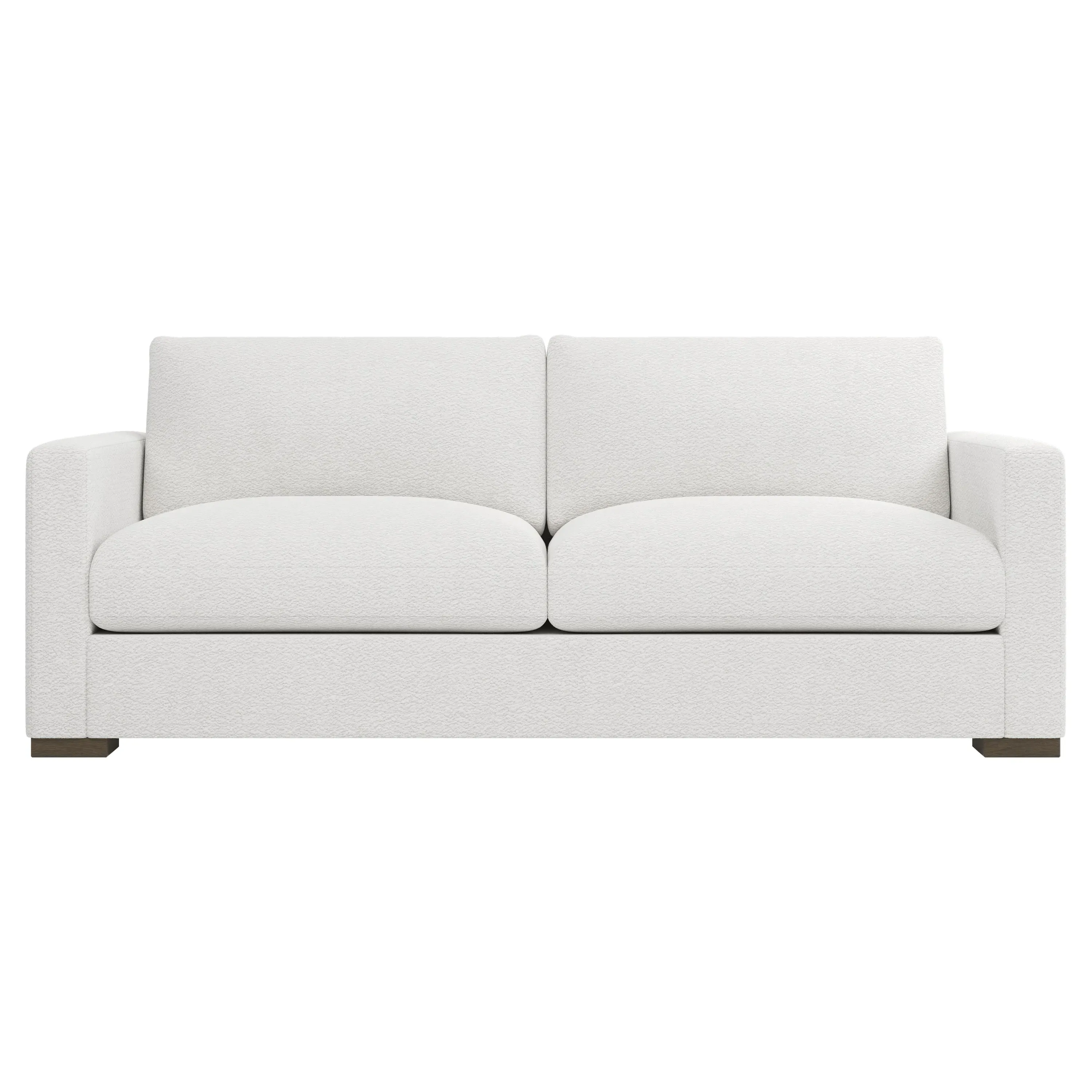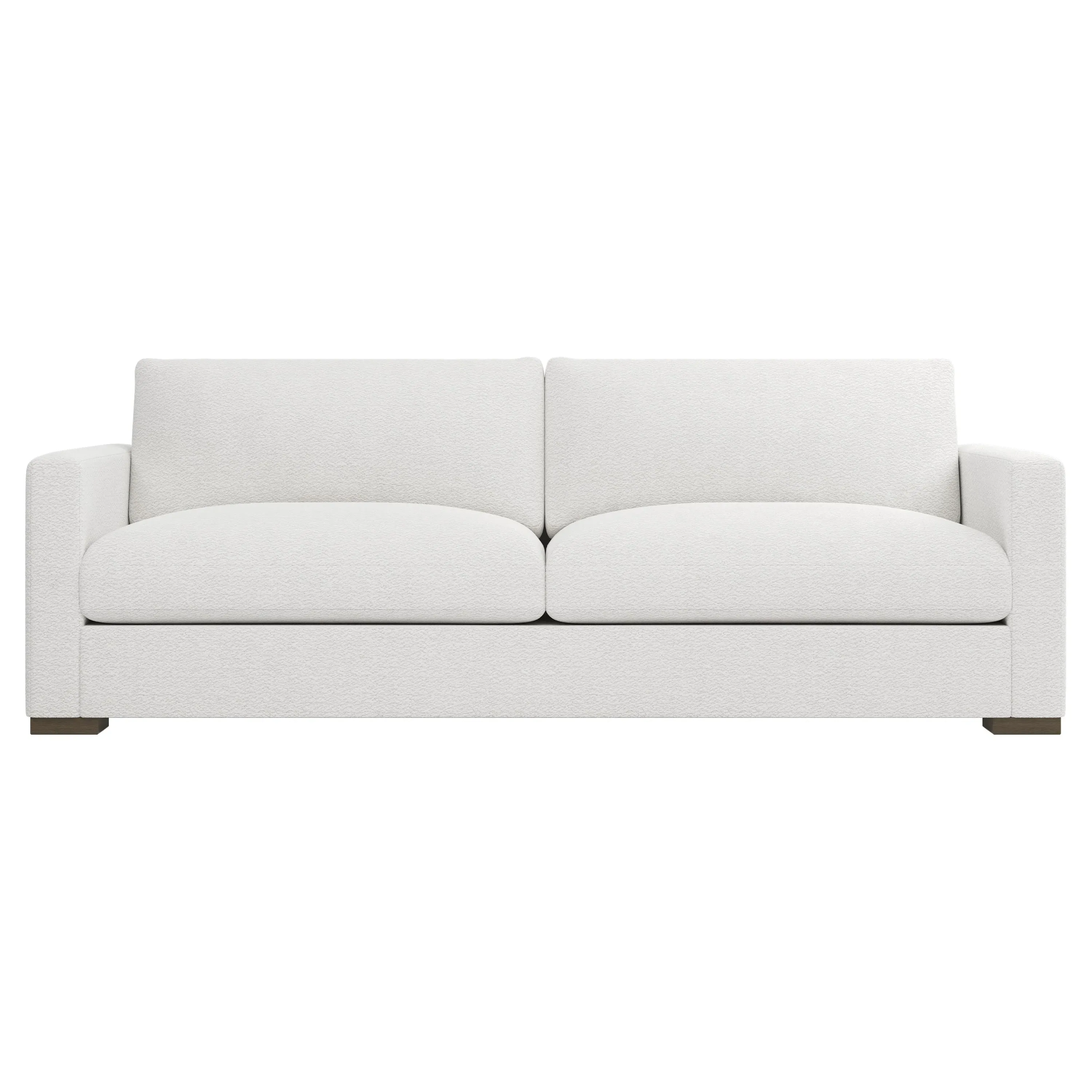 The Curtis Performance Sofa features premium white lamb upholstery with its compact 60-inch design for versatile placement. Its hardwood and plywood construction delivers reliable support, while the dove tail finish adds elegant detail. The proportioned seating suits smaller spaces without compromising comfort, and the low legs maintain visual lightness. W152 x D99 x H86 cm.