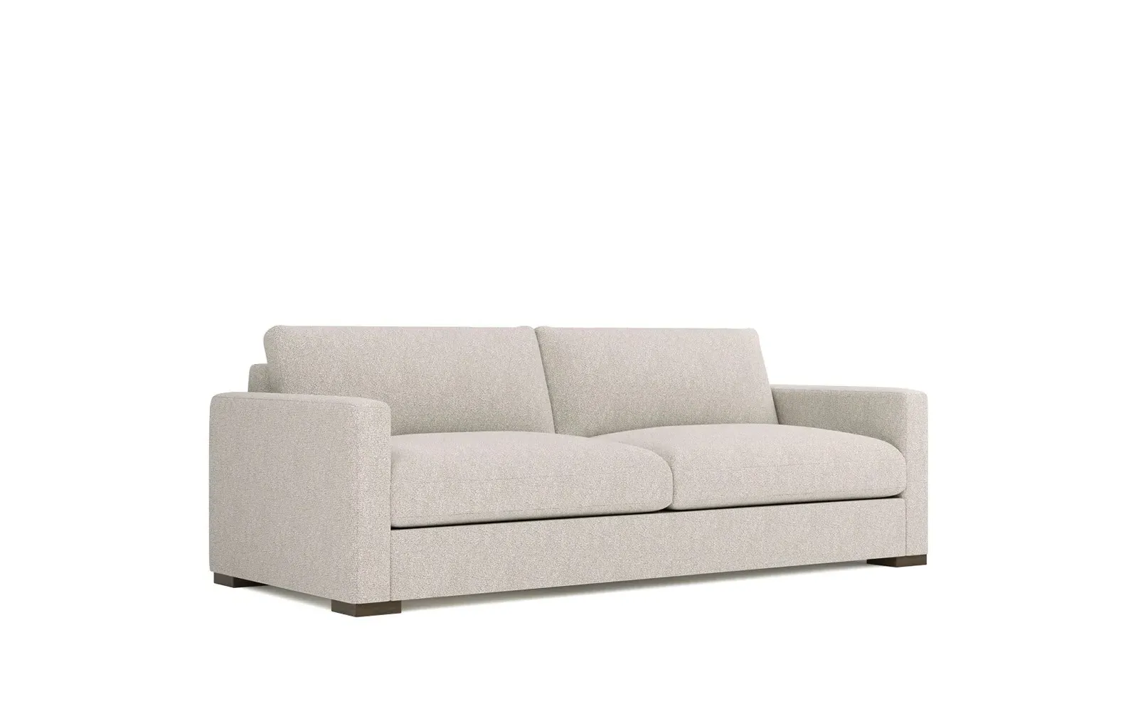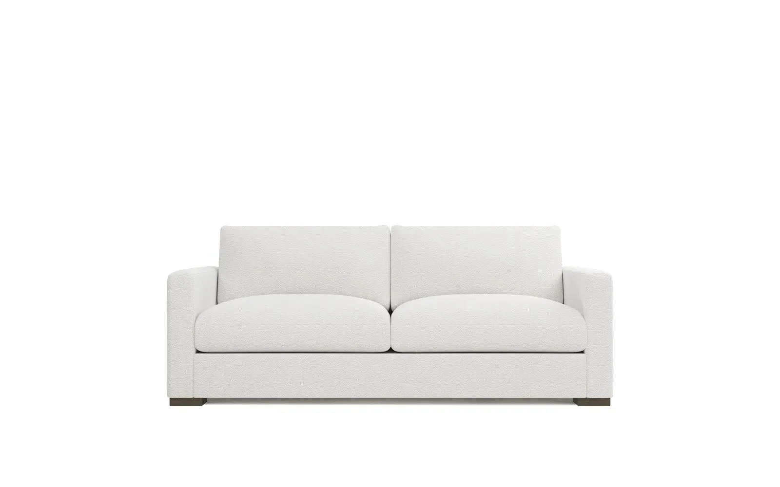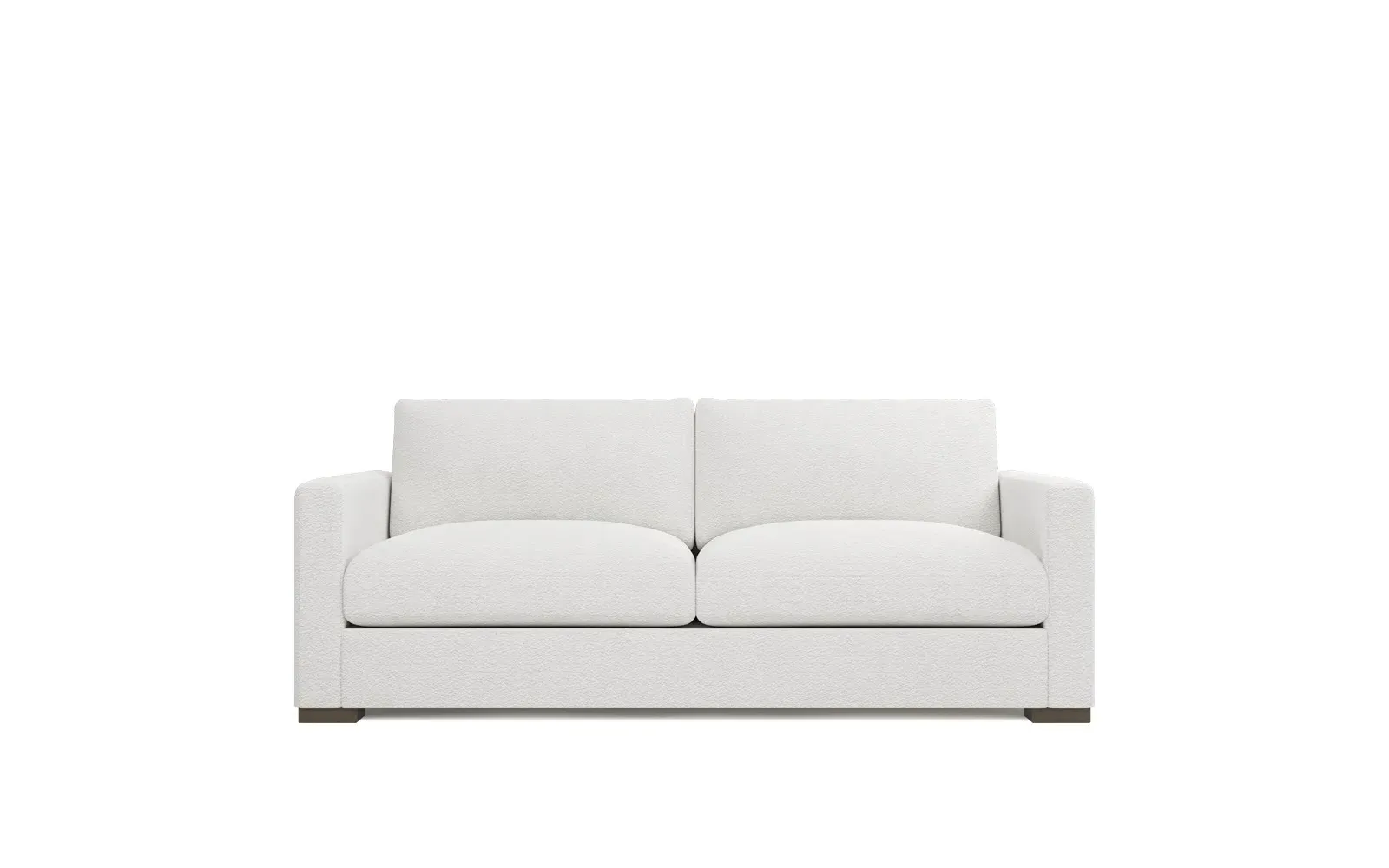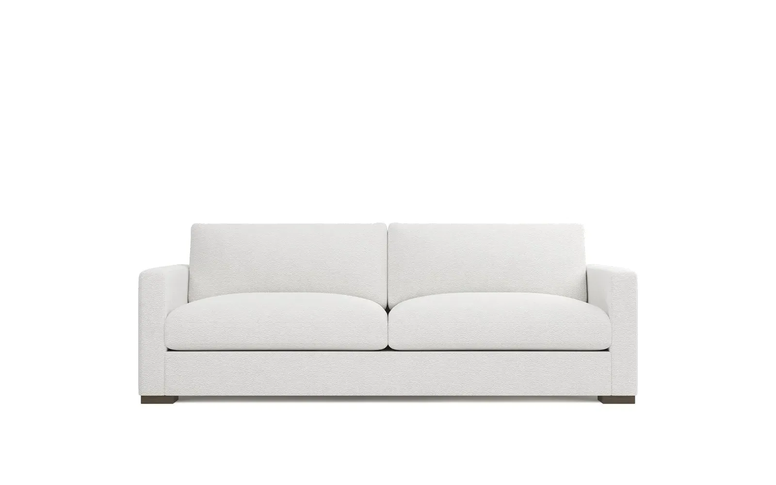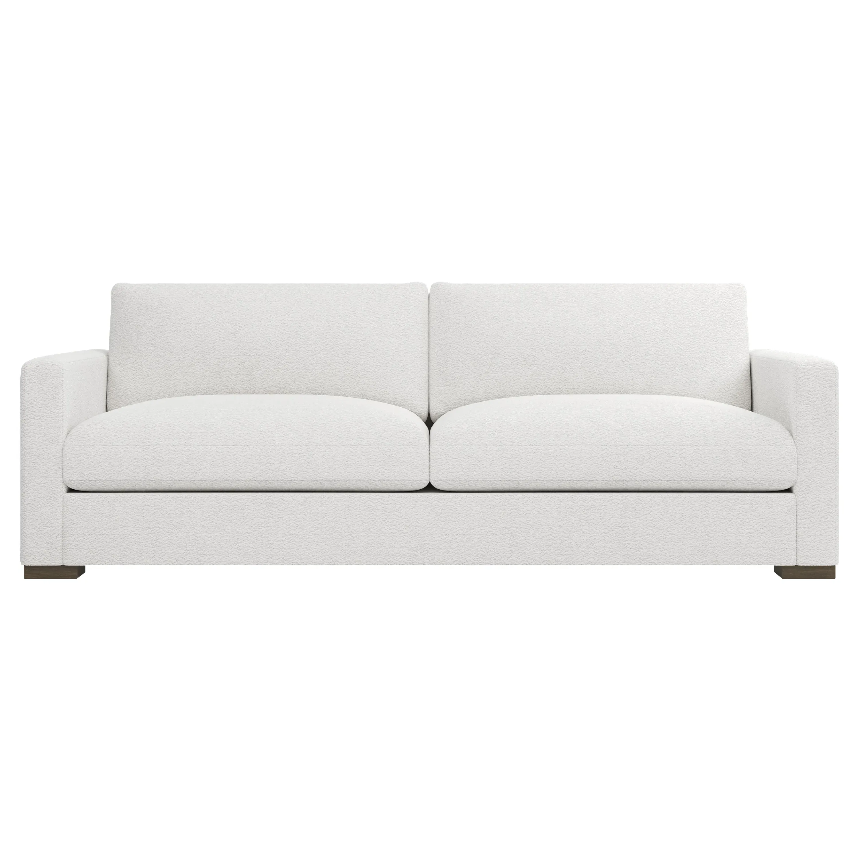 The Curtis Performance Sofa features premium white lamb upholstery with its compact 60-inch design for versatile placement. Its hardwood and plywood construction delivers reliable support, while the dove tail finish adds elegant detail. The proportioned seating suits smaller spaces without compromising comfort, and the low legs maintain visual lightness. W152 x D99 x H86 cm.