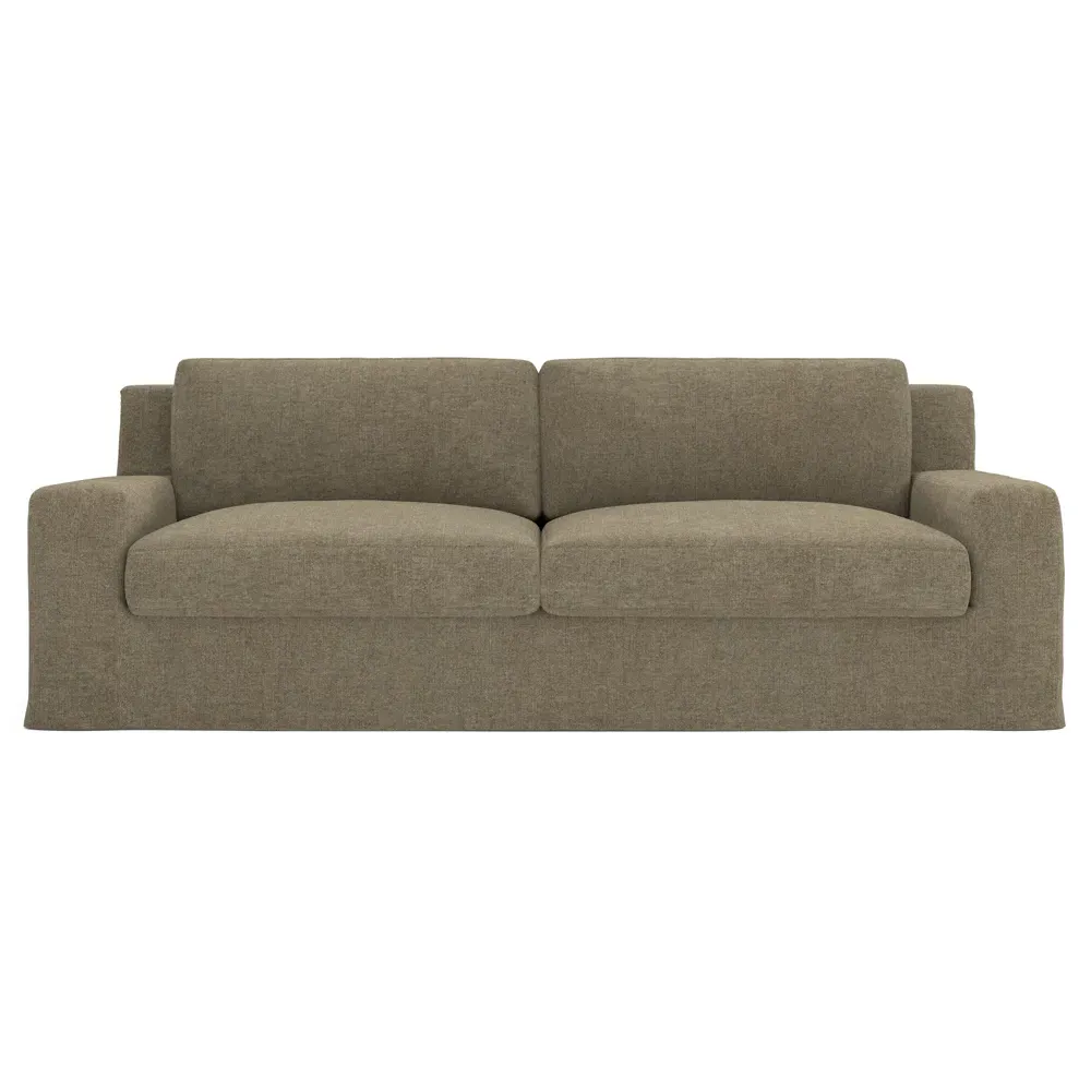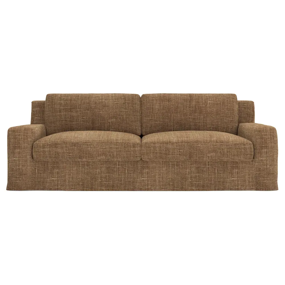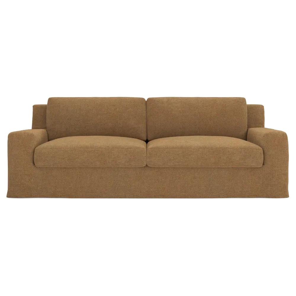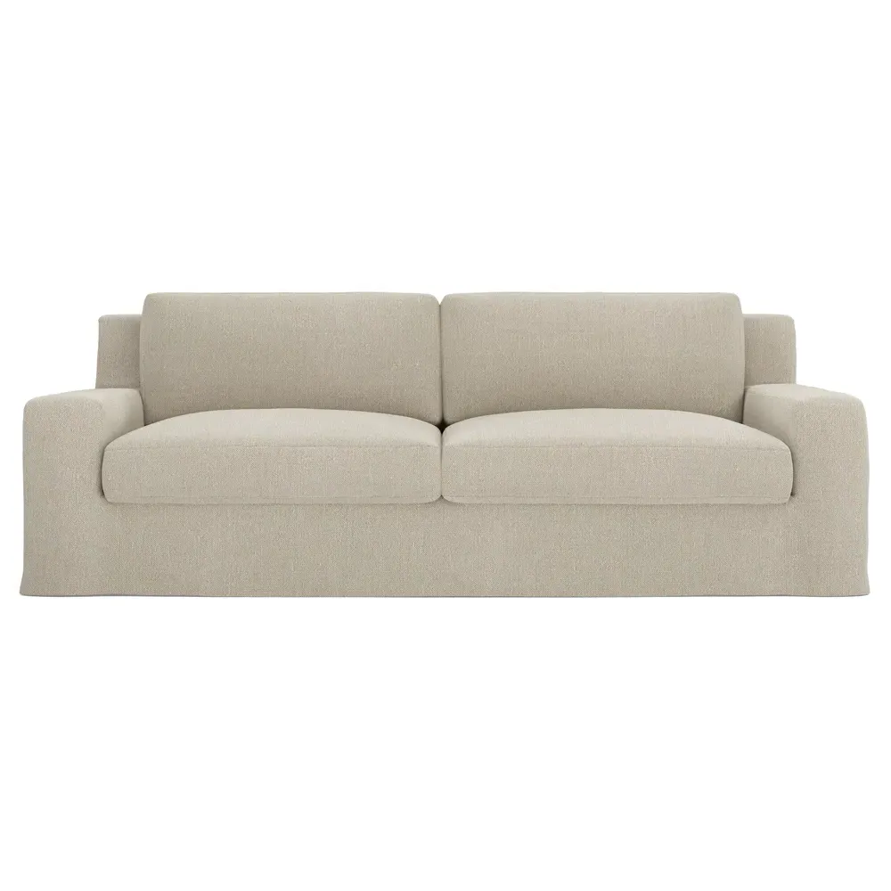 A Kathy Kuo Home exclusive, our 90” Henri sofa is UNBELIEVABLY COMFORTABLE and beautifully proportioned, lending modern yet timeless appeal to any home, from a townhouse to a beach house. With a deep seat, tapered back, and low track arms, its inviting silhouette makes you never want to get up. The seat cushions offer extraordinary comfort, with a foam core surrounded by a blend of feathers and duck down. Choose from a variety of slipcover options, including linen and performance fabrics. <b>Overall Dimensions:</b> 90" W x 39" D x 30" H. <b>Seat Dimensions:</b> 74" W x 24” D x 16” H; Arm Height: 21”; Back Rail Height: 30”. <b>Materials:</b> Hardwoods and engineered hardwoods from certified sustainable forests, recycled fiber, premium soy-based foam, and synthetic fiber. <b>Standard Cushion Fill (Down/Feather):</b> A premium soy-based, high-resiliency foam core is wrapped in an envelope of 90% feather and 10% duck down, then encased in a downproof ticking and sewn into channels to maintain an even sit. Back cushions are filled with a mixture of 90% feather and 10% duck down. <b>Seat Comfort (Down/Feather):</b> This cushion fill creates the plush yet supportive sit we love. Cushions with feather and down fill require regular fluffing and rotating to maintain their shape.