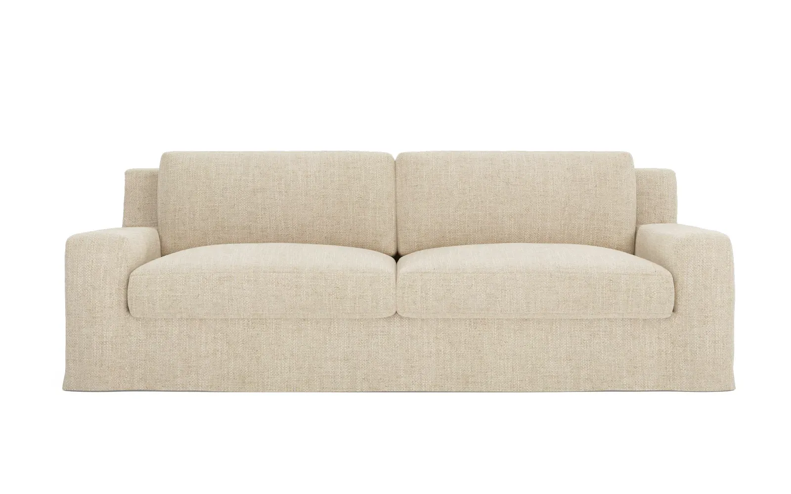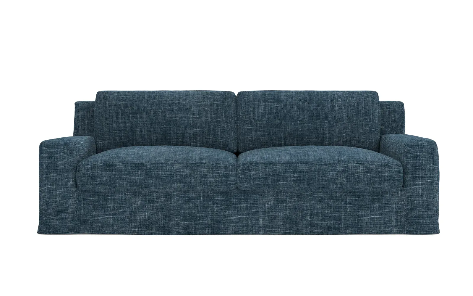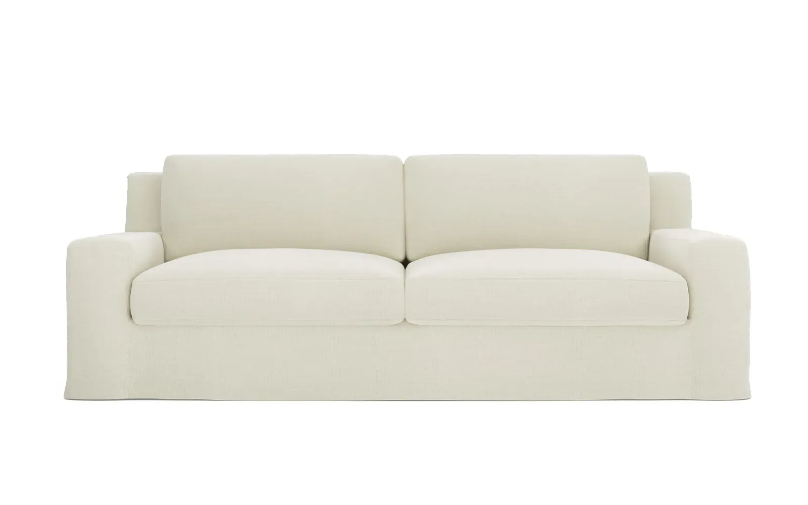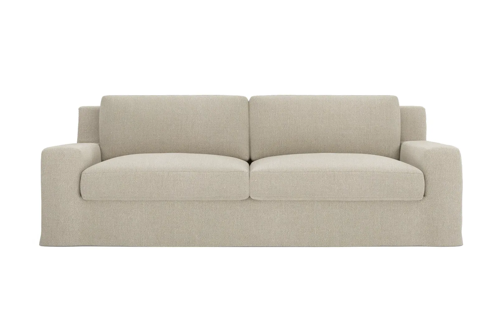 A Kathy Kuo Home exclusive, our 90” Henri sofa is UNBELIEVABLY COMFORTABLE and beautifully proportioned, lending modern yet timeless appeal to any home, from a townhouse to a beach house. With a deep seat, tapered back, and low track arms, its inviting silhouette makes you never want to get up. The seat cushions offer extraordinary comfort, with a foam core surrounded by a blend of feathers and duck down. Choose from a variety of slipcover options, including linen and performance fabrics. <b>Overall Dimensions:</b> 90" W x 39" D x 30" H. <b>Seat Dimensions:</b> 74" W x 24” D x 16” H; Arm Height: 21”; Back Rail Height: 30”. <b>Materials:</b> Hardwoods and engineered hardwoods from certified sustainable forests, recycled fiber, premium soy-based foam, and synthetic fiber. <b>Standard Cushion Fill (Down/Feather):</b> A premium soy-based, high-resiliency foam core is wrapped in an envelope of 90% feather and 10% duck down, then encased in a downproof ticking and sewn into channels to maintain an even sit. Back cushions are filled with a mixture of 90% feather and 10% duck down. <b>Seat Comfort (Down/Feather):</b> This cushion fill creates the plush yet supportive sit we love. Cushions with feather and down fill require regular fluffing and rotating to maintain their shape.