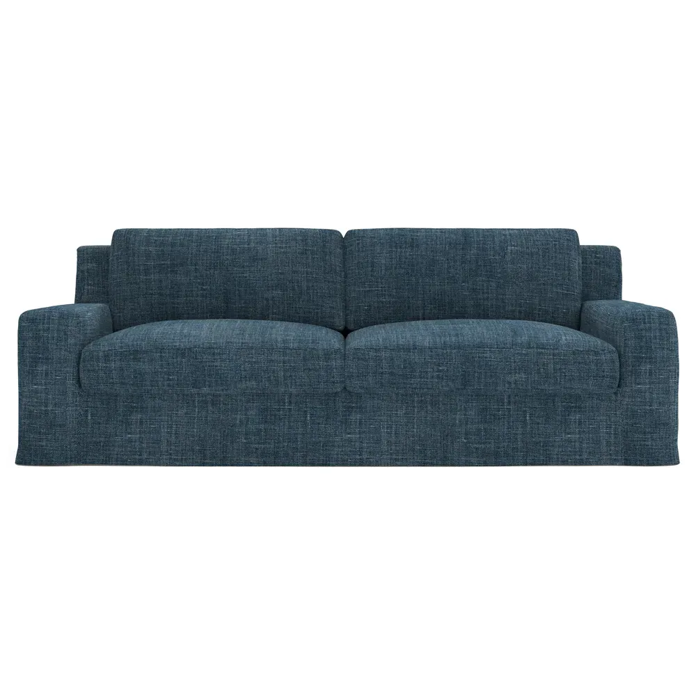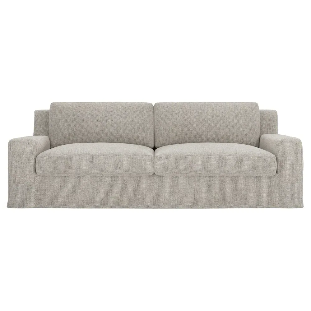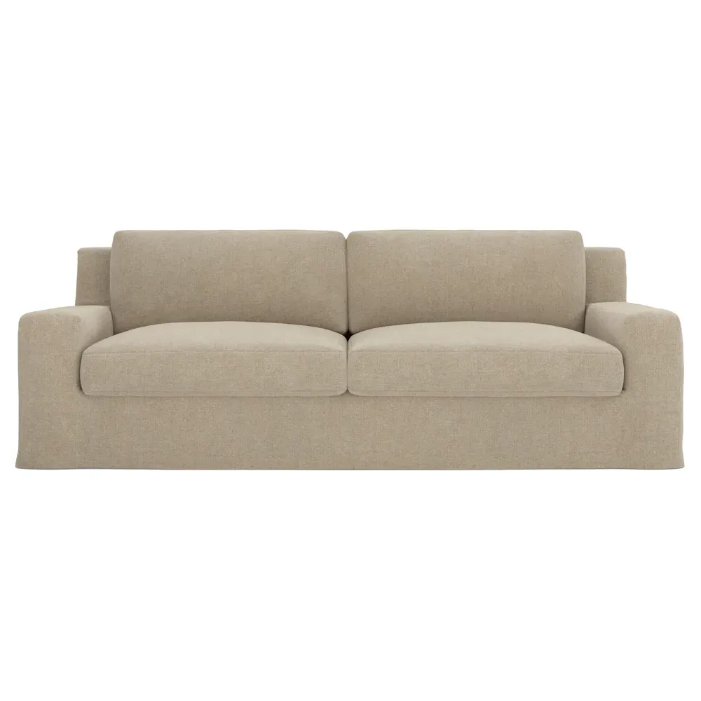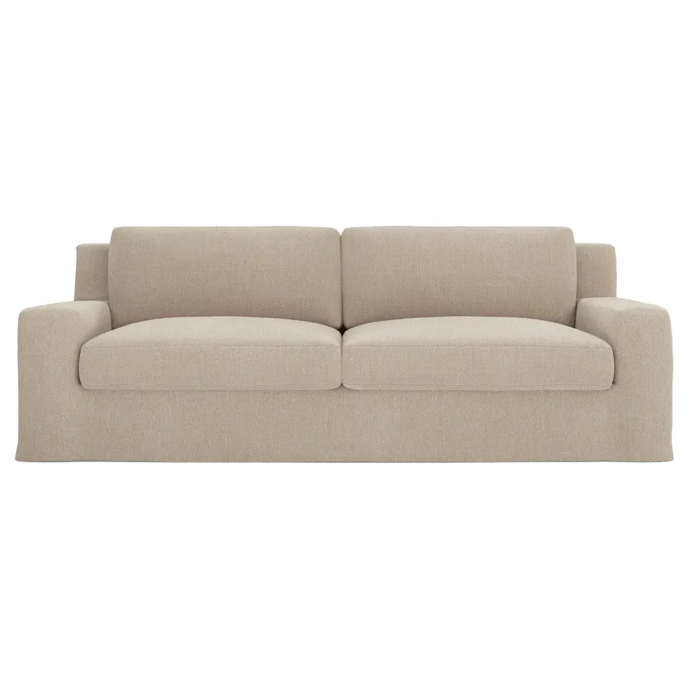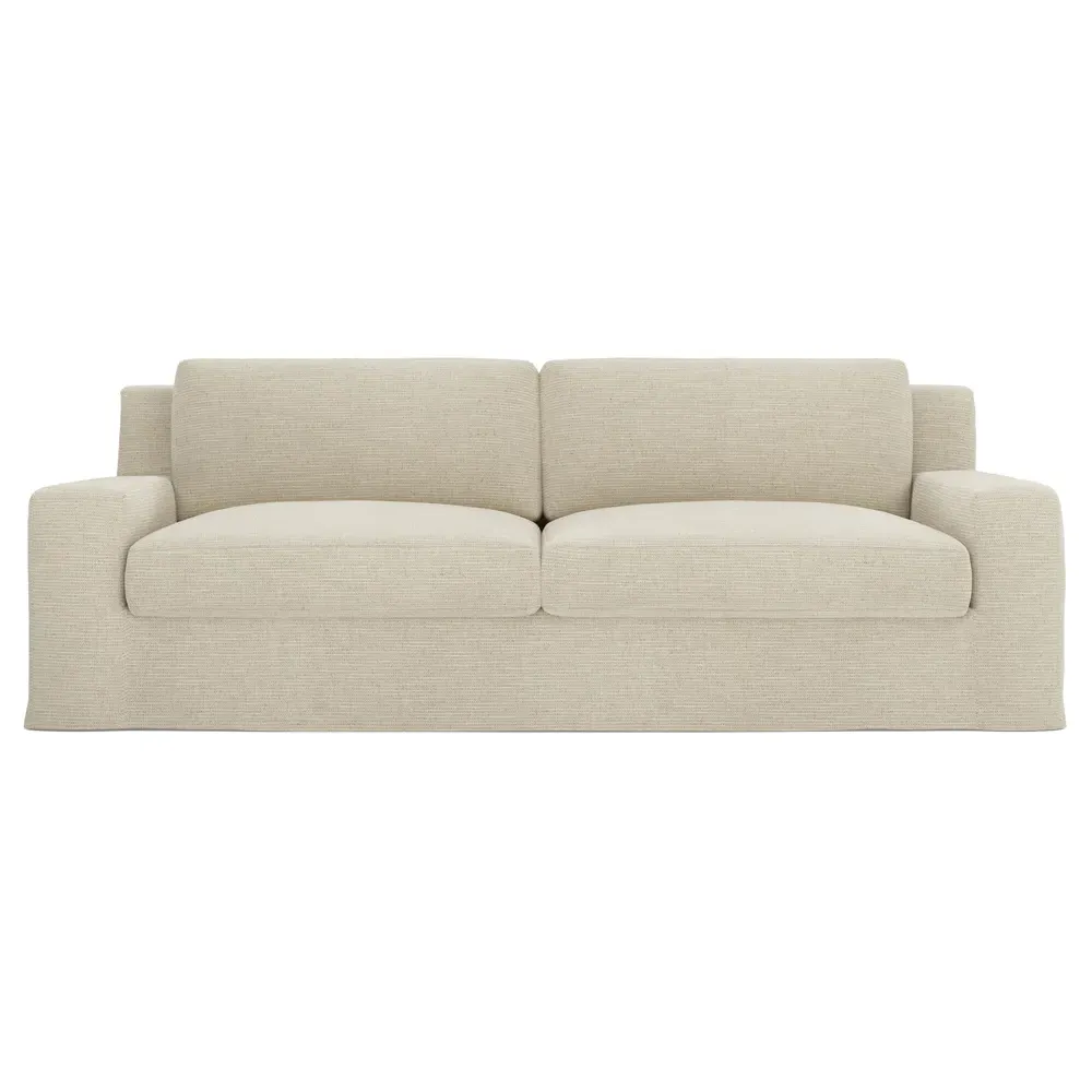 The Henri Slipcovered Sofa offers exceptional comfort with its deep seat and tapered back design. Its premium soy-based foam core is wrapped in an envelope of 90% feather and 10% duck down, providing plush yet supportive seating. The low track arms and removable slipcover add versatility, while the hardwood frame from certified sustainable forests ensures lasting durability. W228 x D99 x H76 cm.