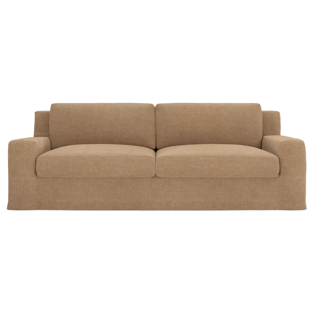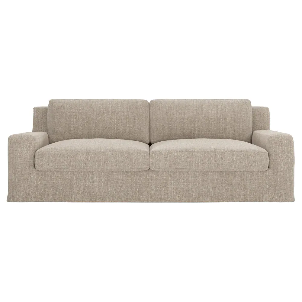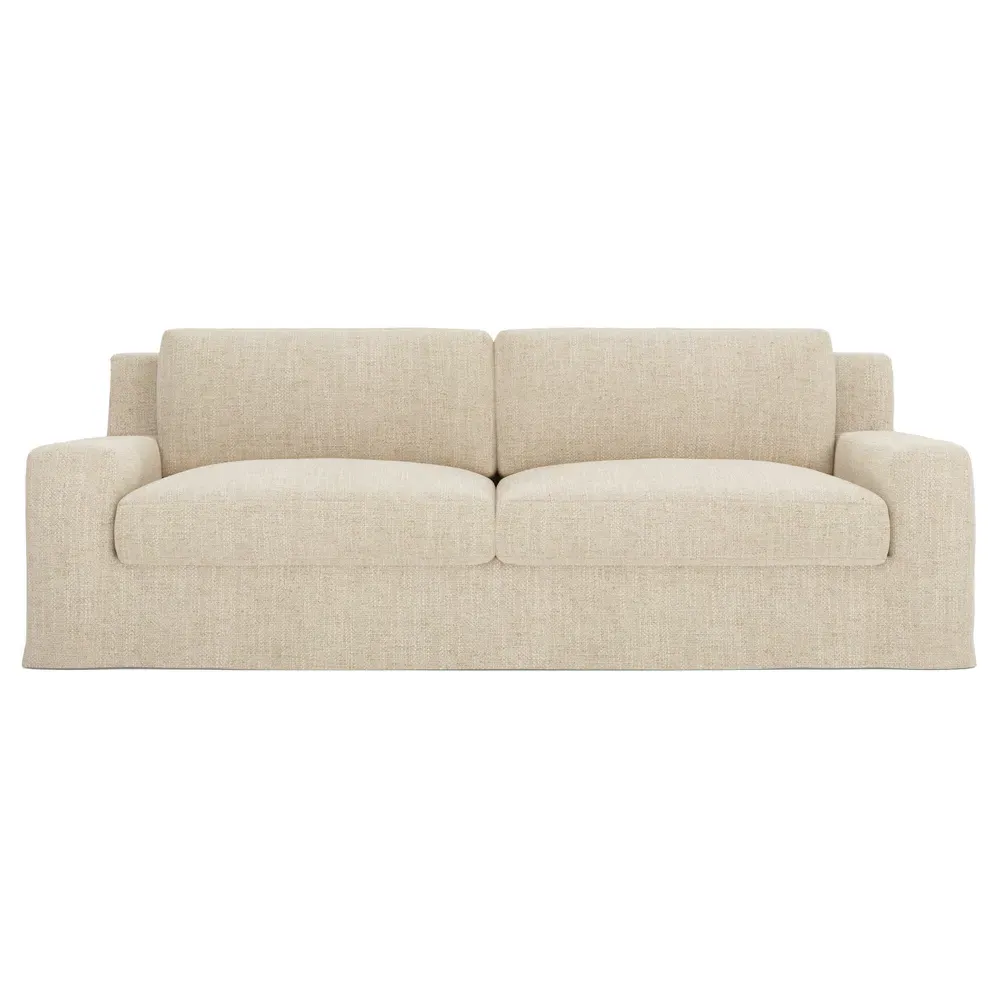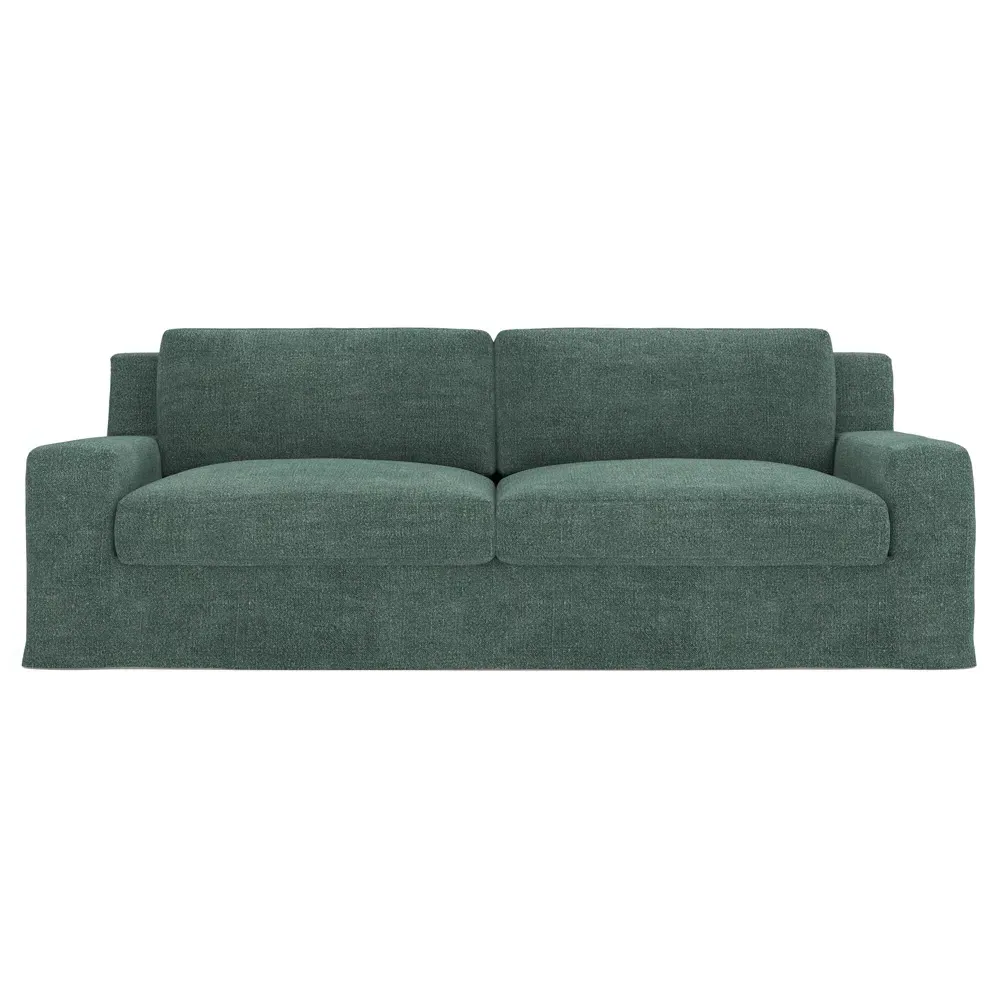 The Henri Slipcovered Sofa offers exceptional comfort with its deep seat and tapered back design. Its premium soy-based foam core is wrapped in an envelope of 90% feather and 10% duck down, providing plush yet supportive seating. The low track arms and removable slipcover add versatility, while the hardwood frame from certified sustainable forests ensures lasting durability. W228 x D99 x H76 cm.