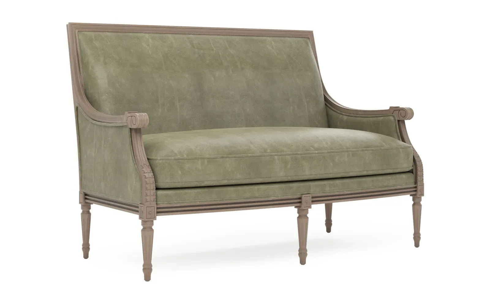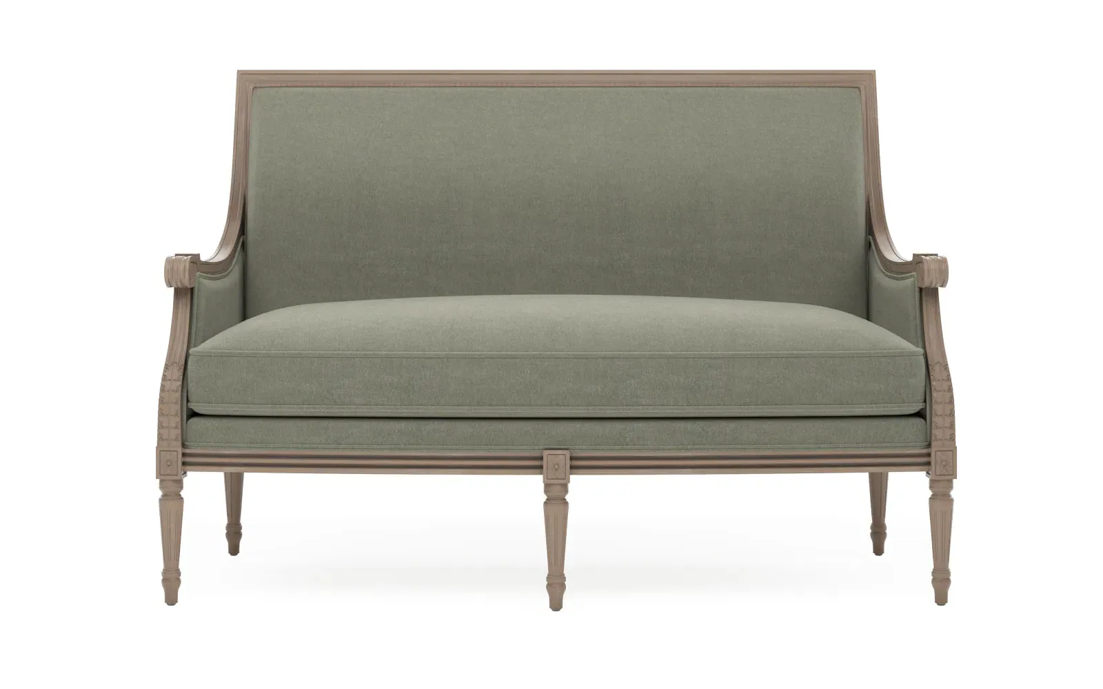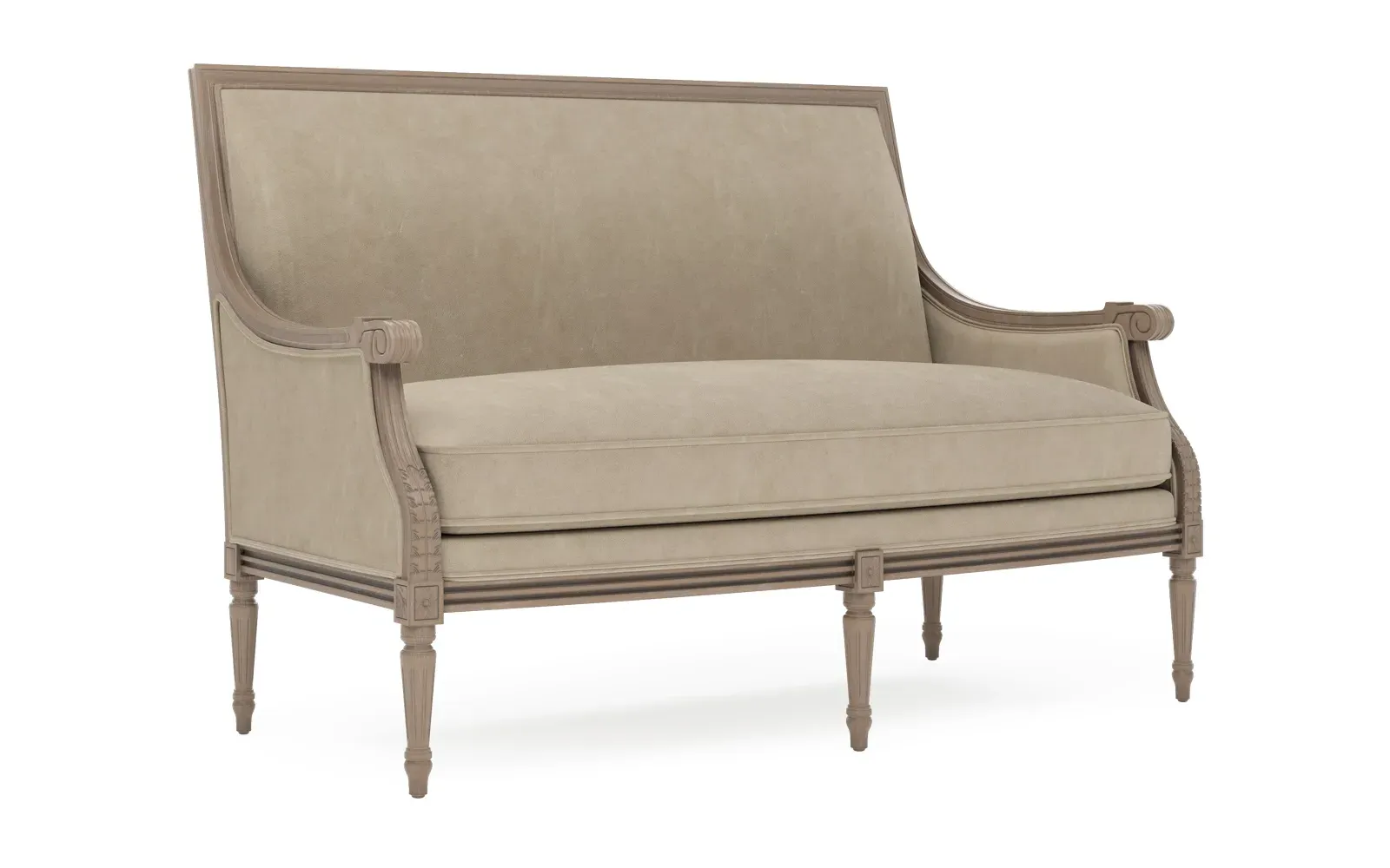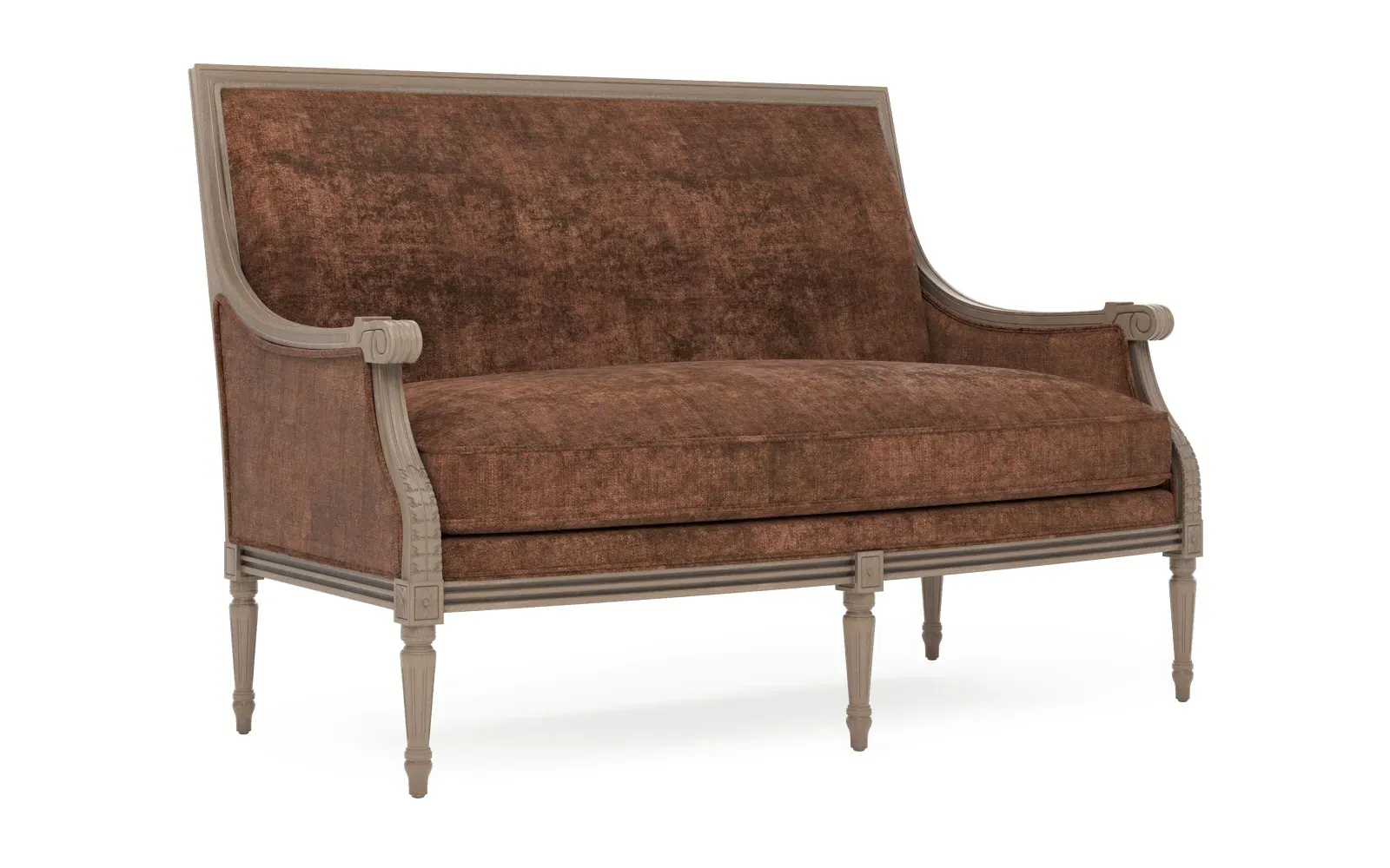 The Juliette settee combines comfort with its velvet upholstery and driftwood hardwood frame. Its CertiPUR-US certified foam core provides high-resiliency support, while the convoluted foam layer and feather-down blend adds luxurious comfort. The channeled downproof jacket ensures durability, and the hardwood construction with driftwood finish offers lasting stability. W142 x D79 x H99 cm.