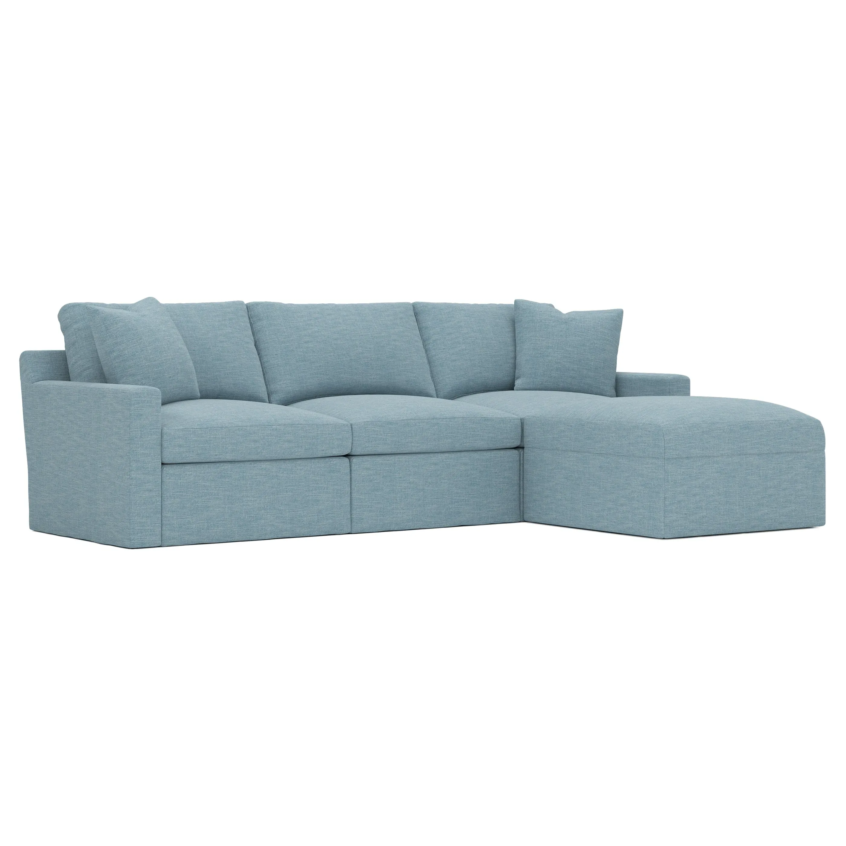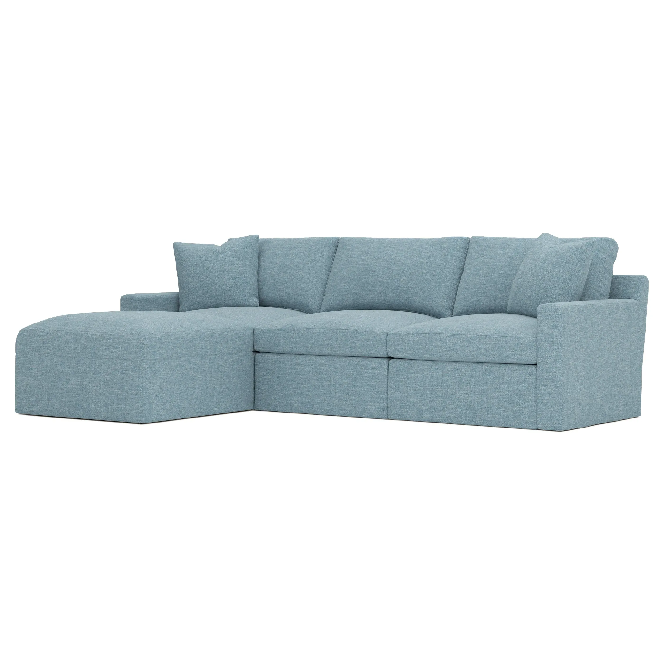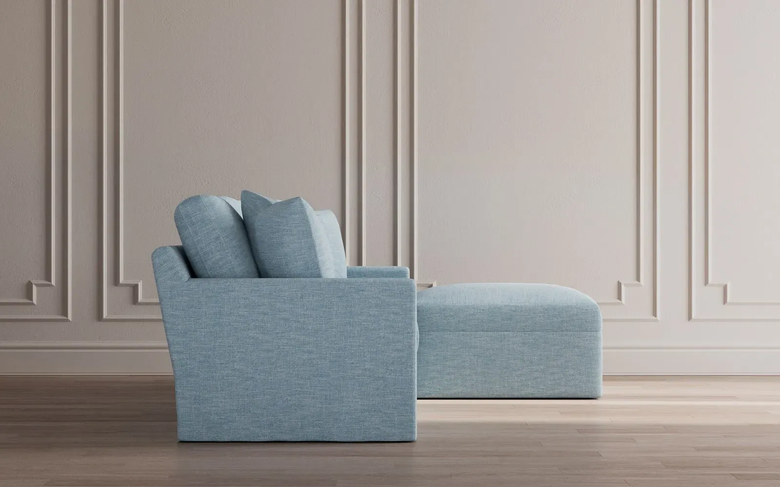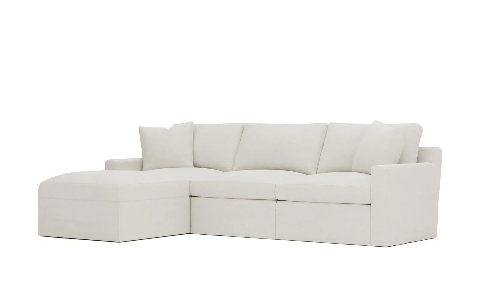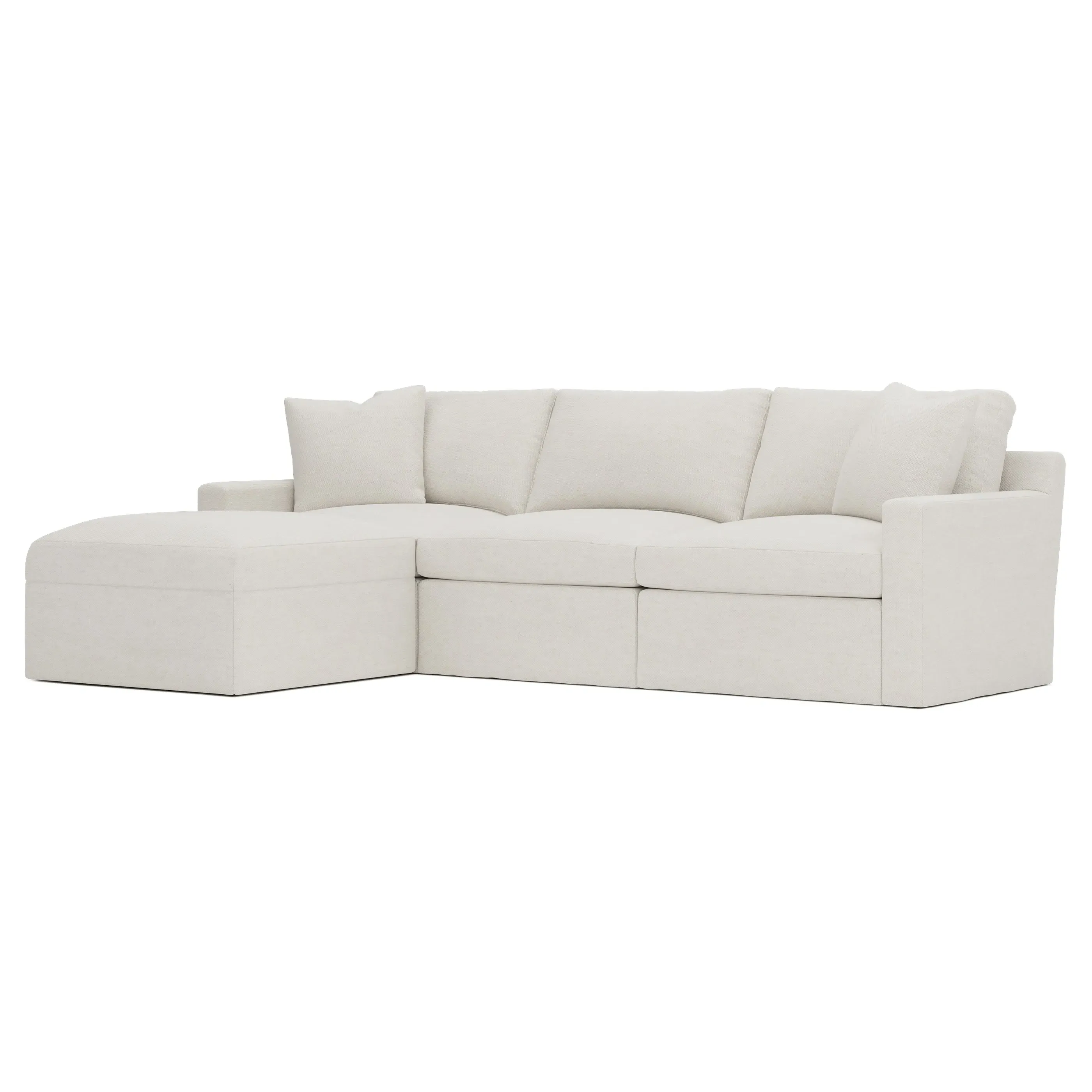 The Kamryn sectional offers versatile seating with its modular 4-piece configuration, featuring an ottoman, corner seat, armless seat, and single seat. Its FSC-certified kiln-dried hardwood frame provides lasting durability, while the espresso-finished legs add stability. The modular design allows for flexible arrangement, and the 24-inch arm height ensures comfortable lounging. W292 x D193 x H94 cm.
