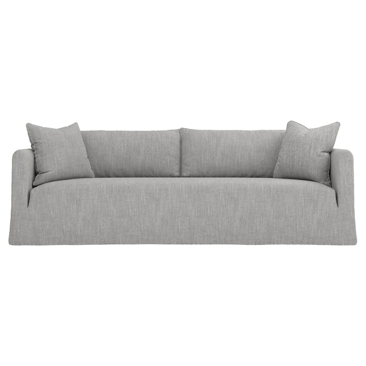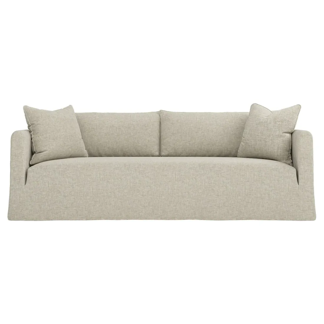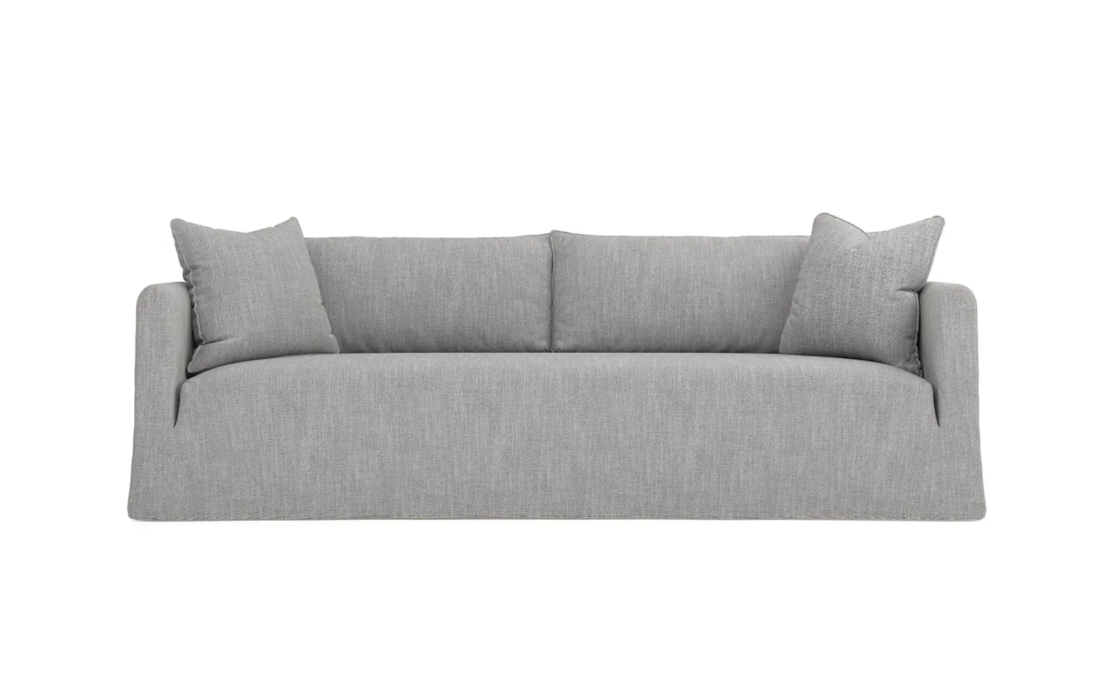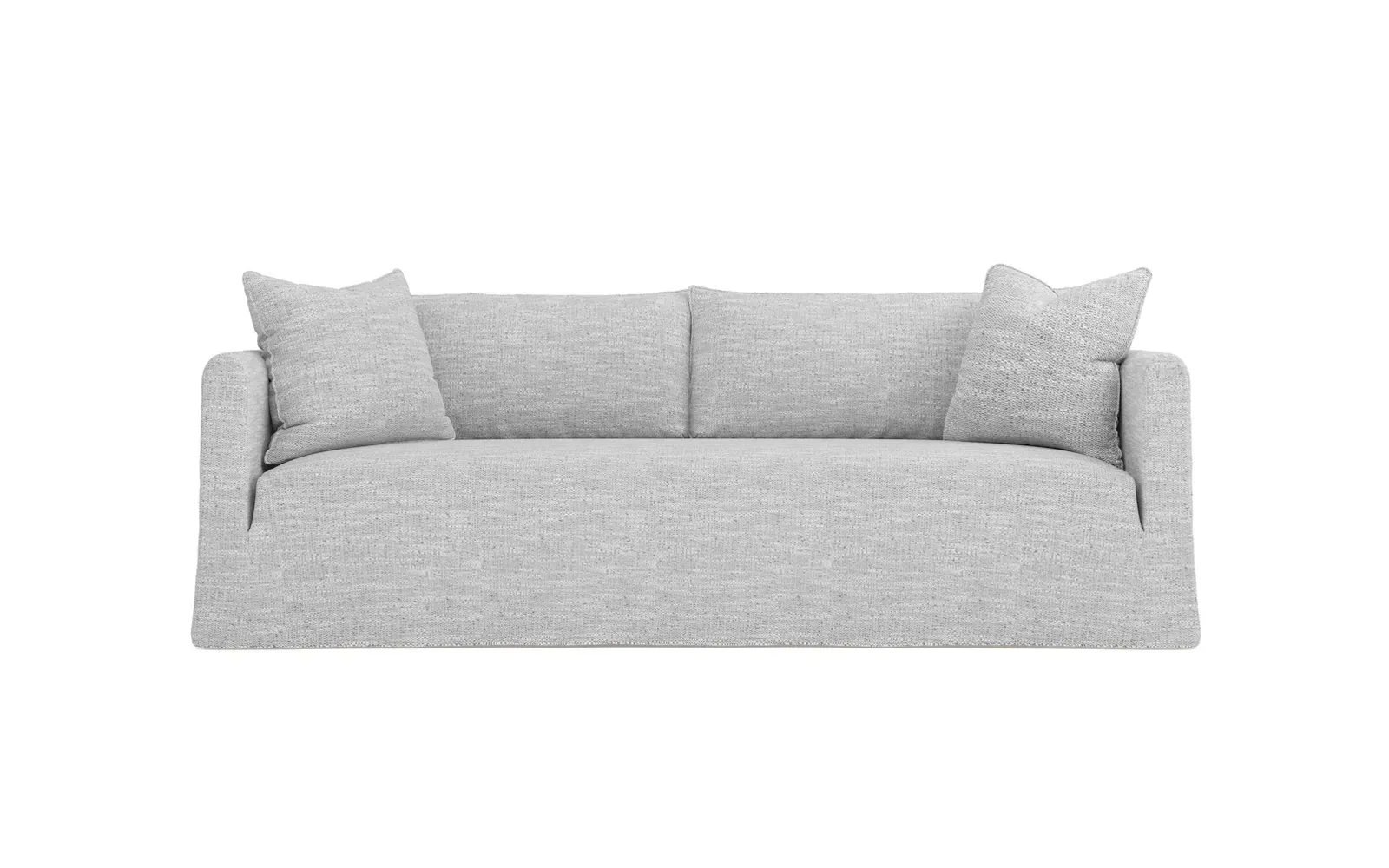 Timeless and versatile with a nod to Parisian style, the 90" Kaoru slipcovered sofa complements any modern, transitional, or coastal home. The tight seat is designed with premium foam cushioning for a firm yet comfortable sit. Accented with subtle flange edges, plush back pillows are filled with feathers and down. A pair of throw pillows lean against rounded track arms, flanking the seamless bench seat. Choose from washable slipcover fabrics in a variety of serene hues. <b>Overall Dimensions:</b> 90" W x 39" D x 33" H. <b>Seat Dimensions:</b> 23” D x 18” H; <b>Distance Between Arms:</b> 79”; <b>Arm Height:</b> 27”. <b>Materials:</b> FSC®-certified, US-sourced, formaldehyde-free solid kiln-dried hardwood and furniture-grade laminates. <b>Cushion Fill:</b> The tight seat is made with various layers of CertiPUR-US® certified foam. <b>Back Fill:</b> Loose back cushions are filled with a blend of feathers and down.