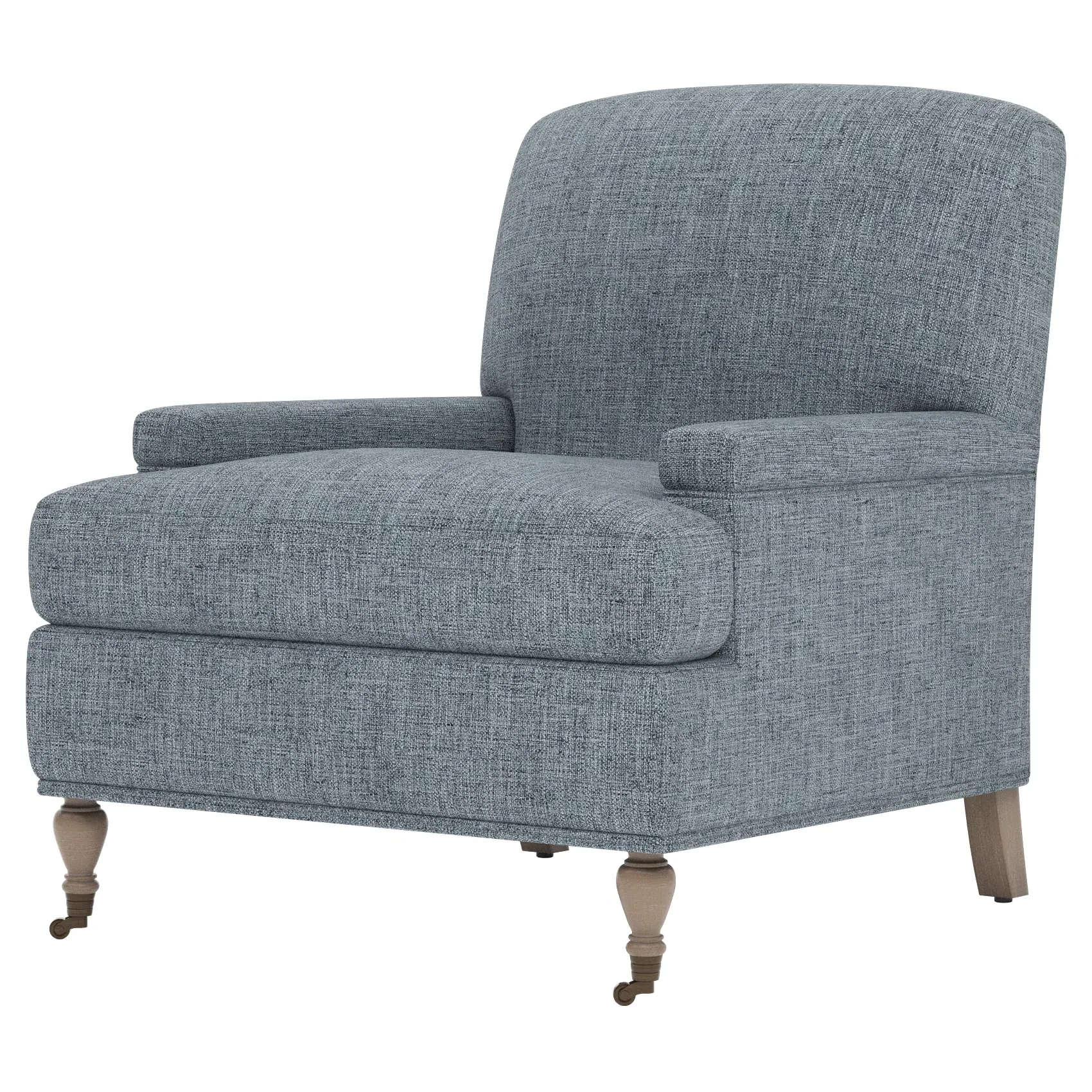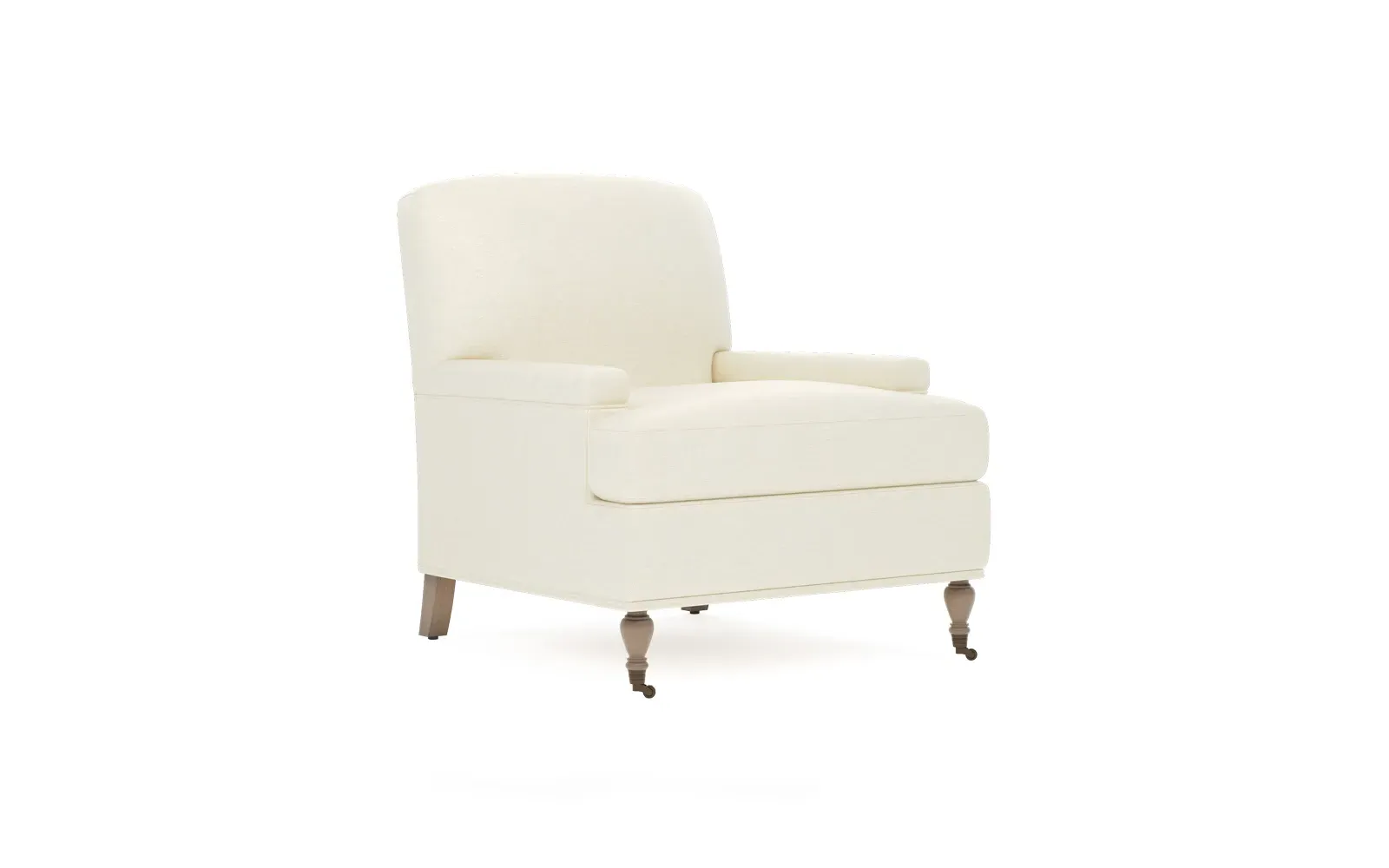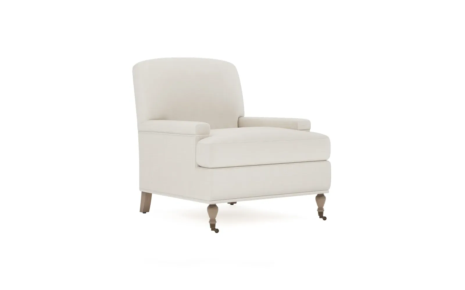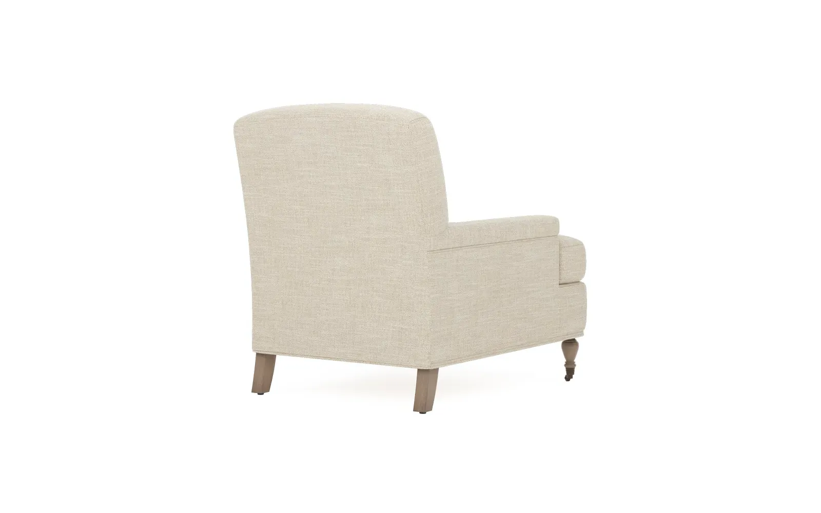<b>Overall Dimensions: </b>32" W x 37" D x 35" H. <b>Seat Dimensions: </b>23” W x 24” D x 19” H; <b>Arm Height: </b>22”; <b>Leg Height:</b> 7”. <b>Materials:</b> Hardwood. <b>Material Finish:</b> Driftwood. <b>Cushion Fill:</b> A CertiPUR-US® certified, 2.3-density, high-resiliency Ultracel foam core is surrounded by a convoluted foam layer and inserted into a channeled downproof jacket filled with 50% polyester fiber and 50% feather and down.