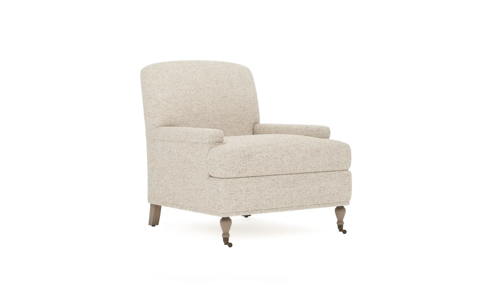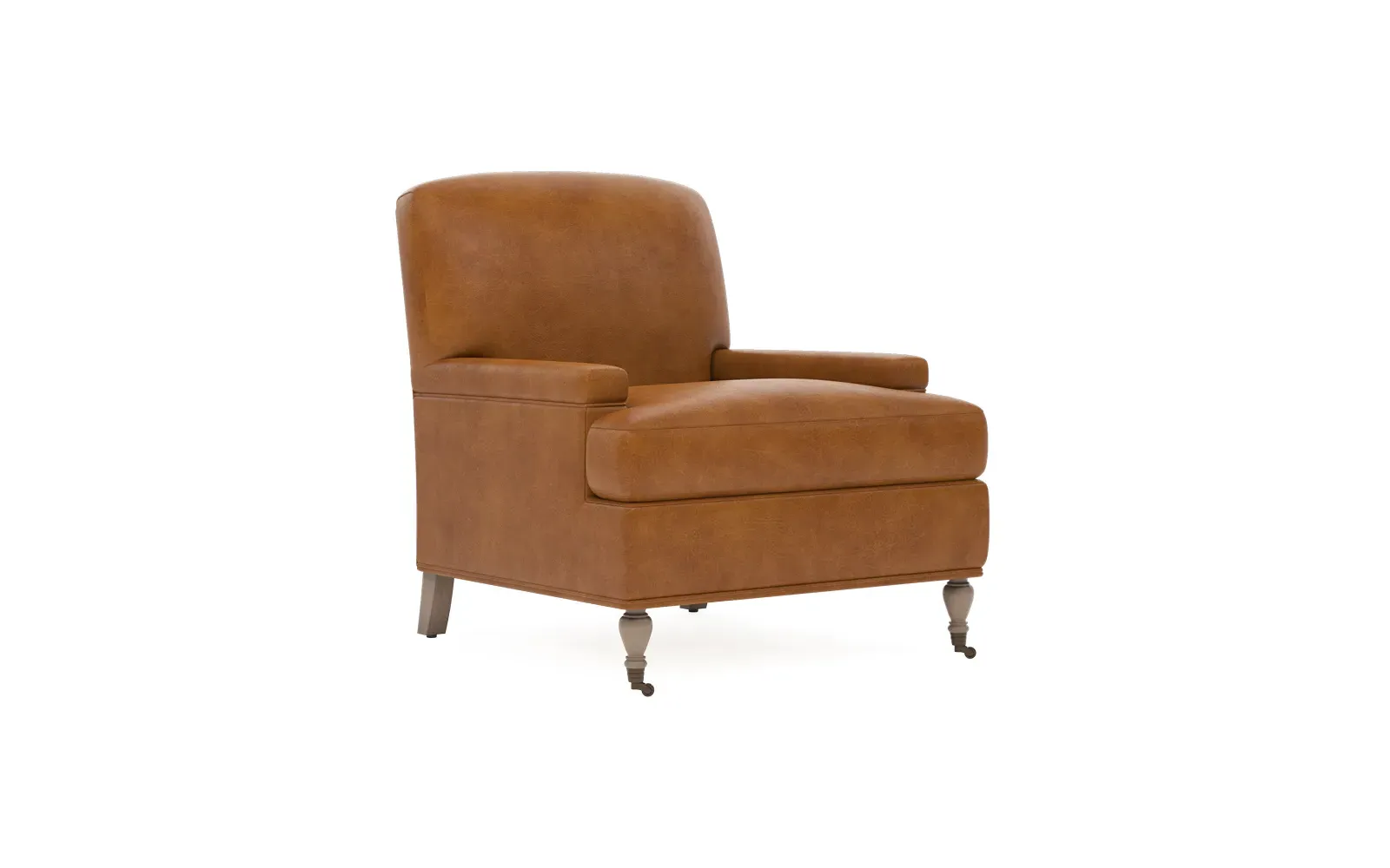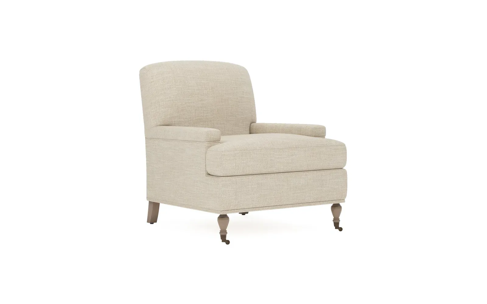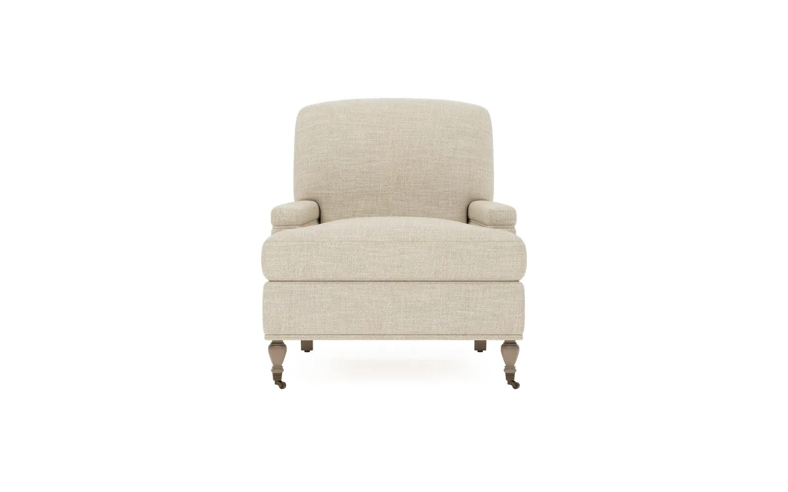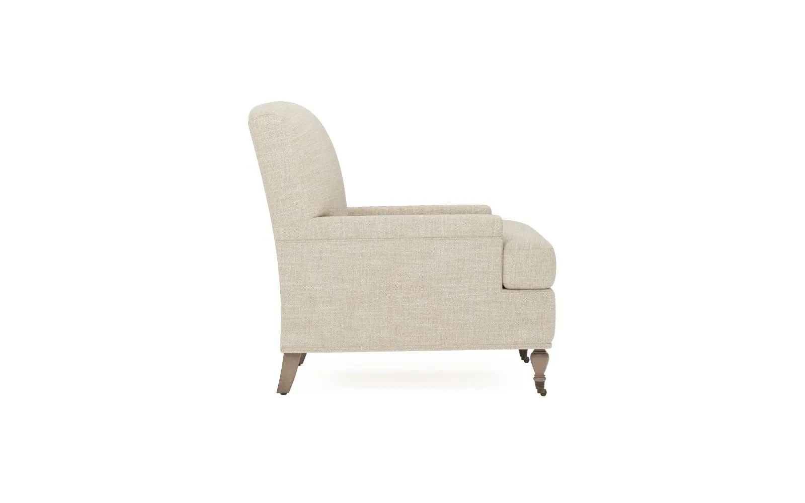 <b>Overall Dimensions: </b>32" W x 37" D x 35" H. <b>Seat Dimensions: </b>23” W x 24” D x 19” H; <b>Arm Height: </b>22”; <b>Leg Height:</b> 7”. <b>Materials:</b> Hardwood. <b>Material Finish:</b> Driftwood. <b>Cushion Fill:</b> A CertiPUR-US® certified, 2.3-density, high-resiliency Ultracel foam core is surrounded by a convoluted foam layer and inserted into a channeled downproof jacket filled with 50% polyester fiber and 50% feather and down.