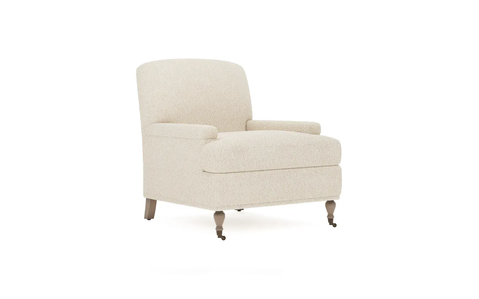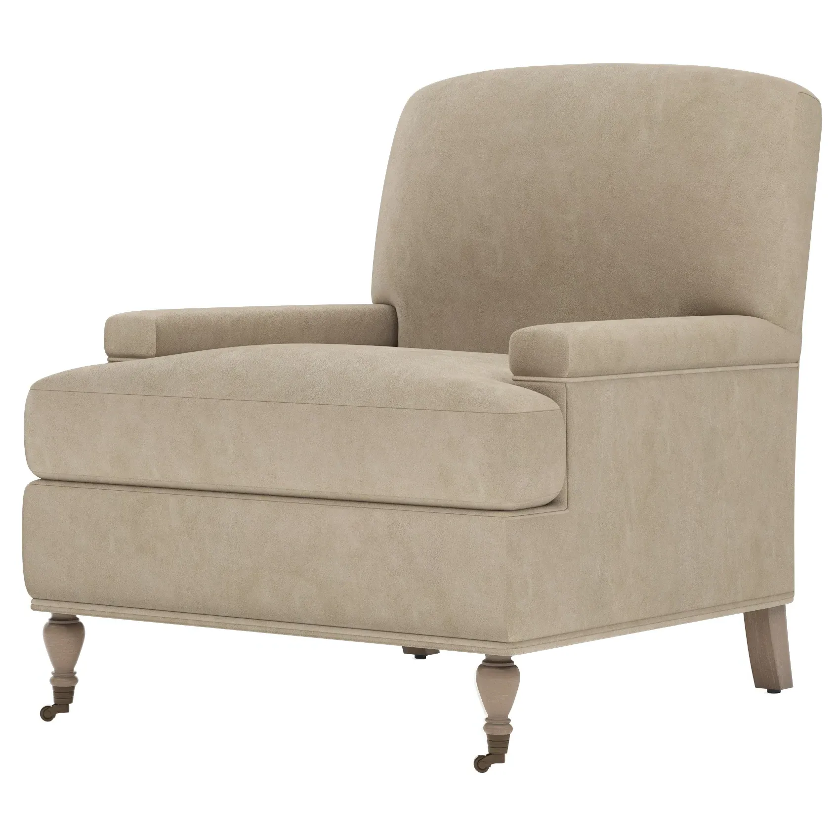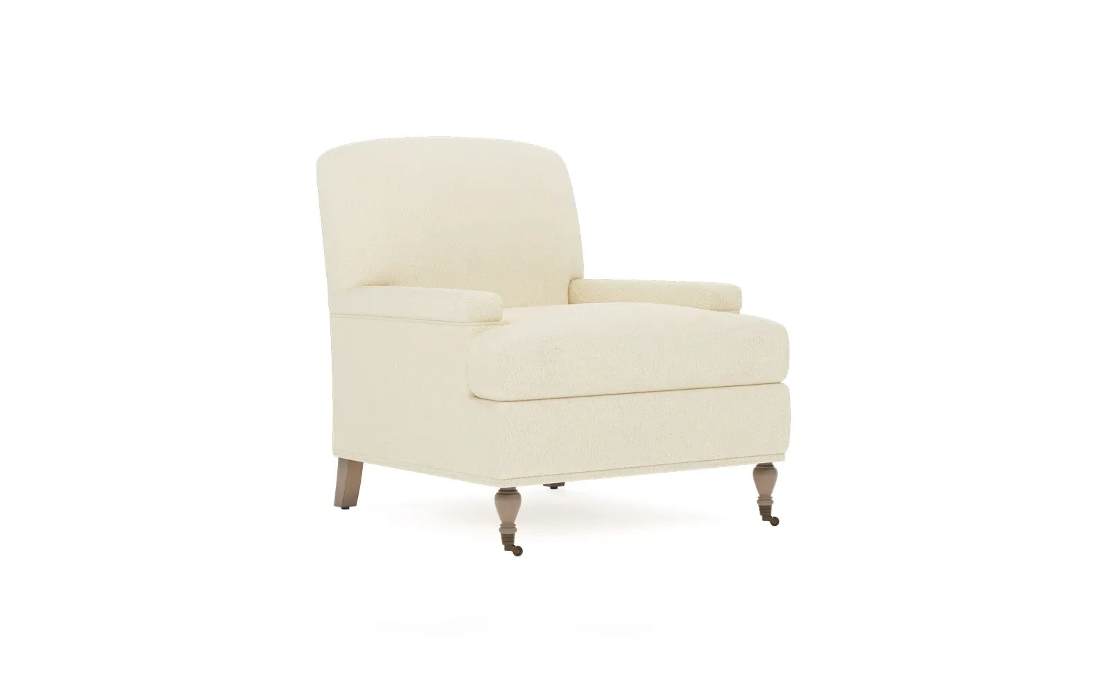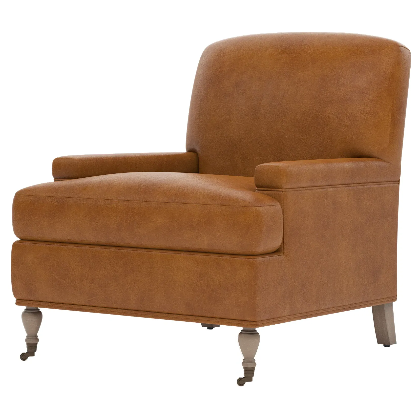 <b>Overall Dimensions: </b>32" W x 37" D x 35" H. <b>Seat Dimensions: </b>23” W x 24” D x 19” H; <b>Arm Height: </b>22”; <b>Leg Height:</b> 7”. <b>Materials:</b> Hardwood. <b>Material Finish:</b> Driftwood. <b>Cushion Fill:</b> A CertiPUR-US® certified, 2.3-density, high-resiliency Ultracel foam core is surrounded by a convoluted foam layer and inserted into a channeled downproof jacket filled with 50% polyester fiber and 50% feather and down.