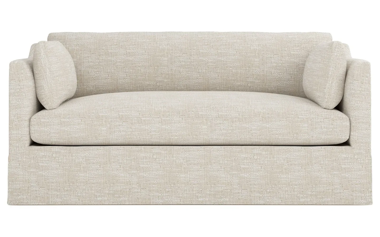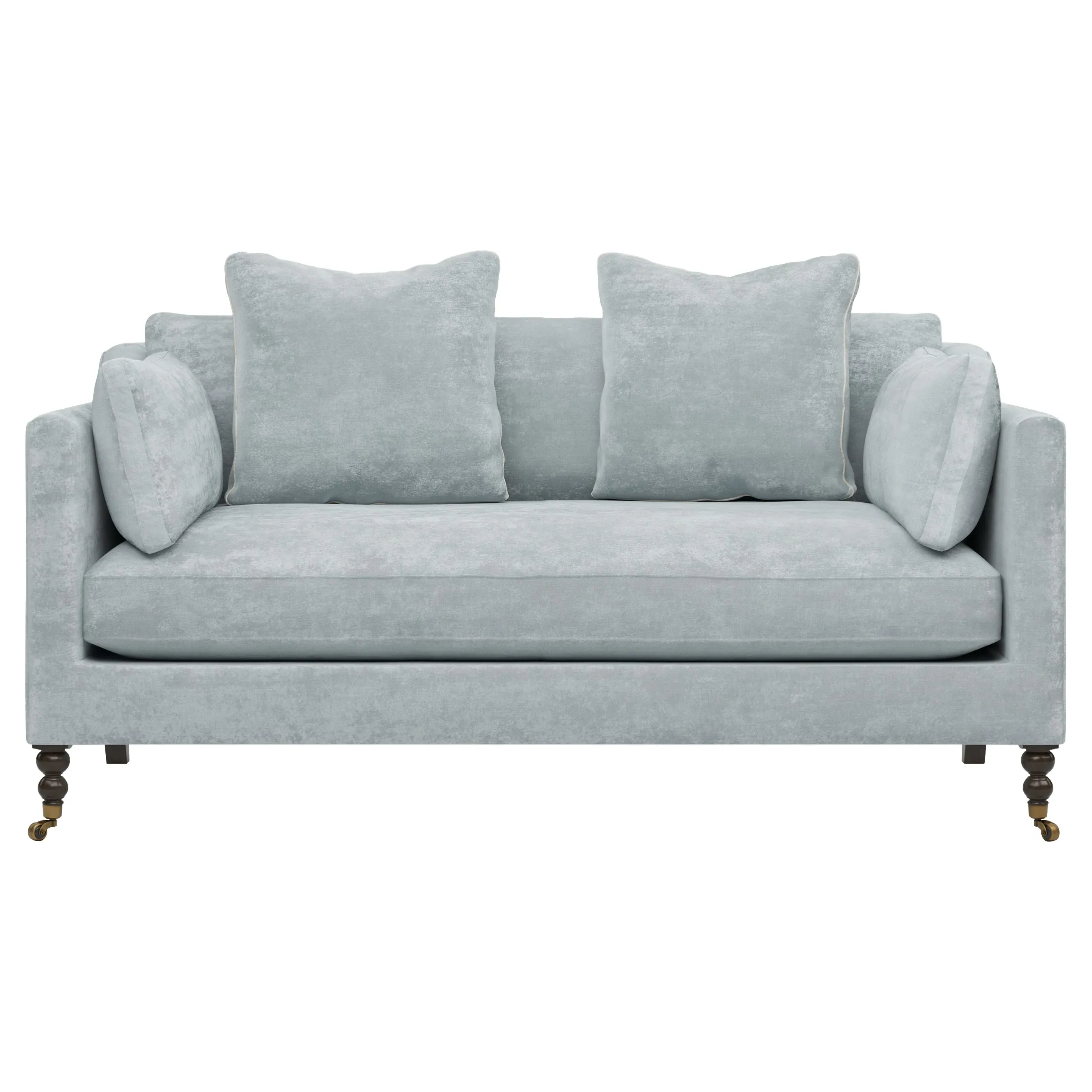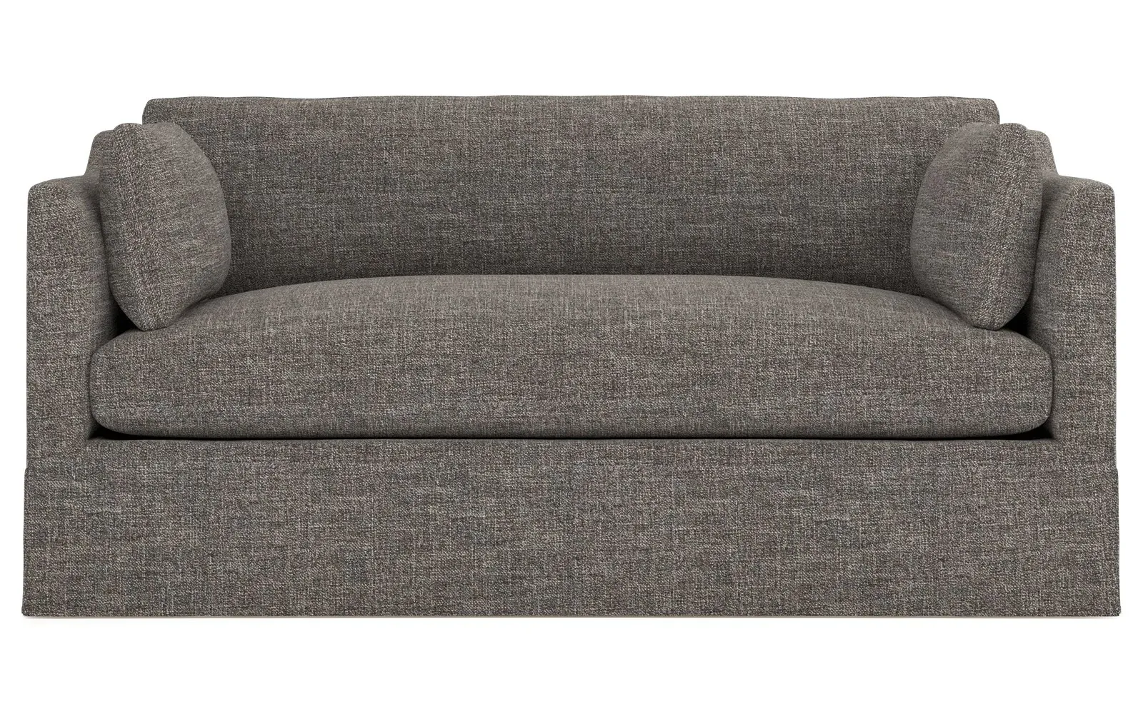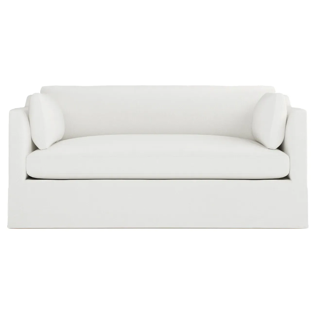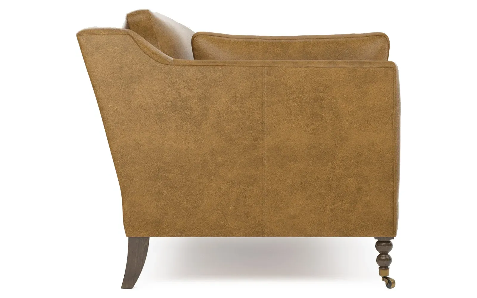 The Madeline loveseat combines clean lines with a balanced silhouette for relaxed versatility. Its seat cushion features a high-resiliency foam core wrapped with soft foam and filled with a blend of fiber, down, and feather for supreme comfort. Turned wood legs with brass casters in the front pair with curved legs in the back, while the solid kiln-dried hardwood frame ensures lasting durability. Bolster pillows flank the bench seat, and the channel-quilted casing keeps materials evenly distributed. W180 x D102 x H86 cm.