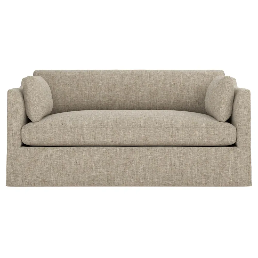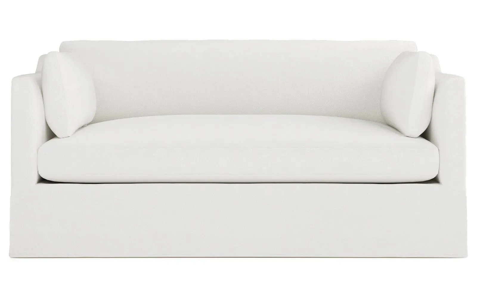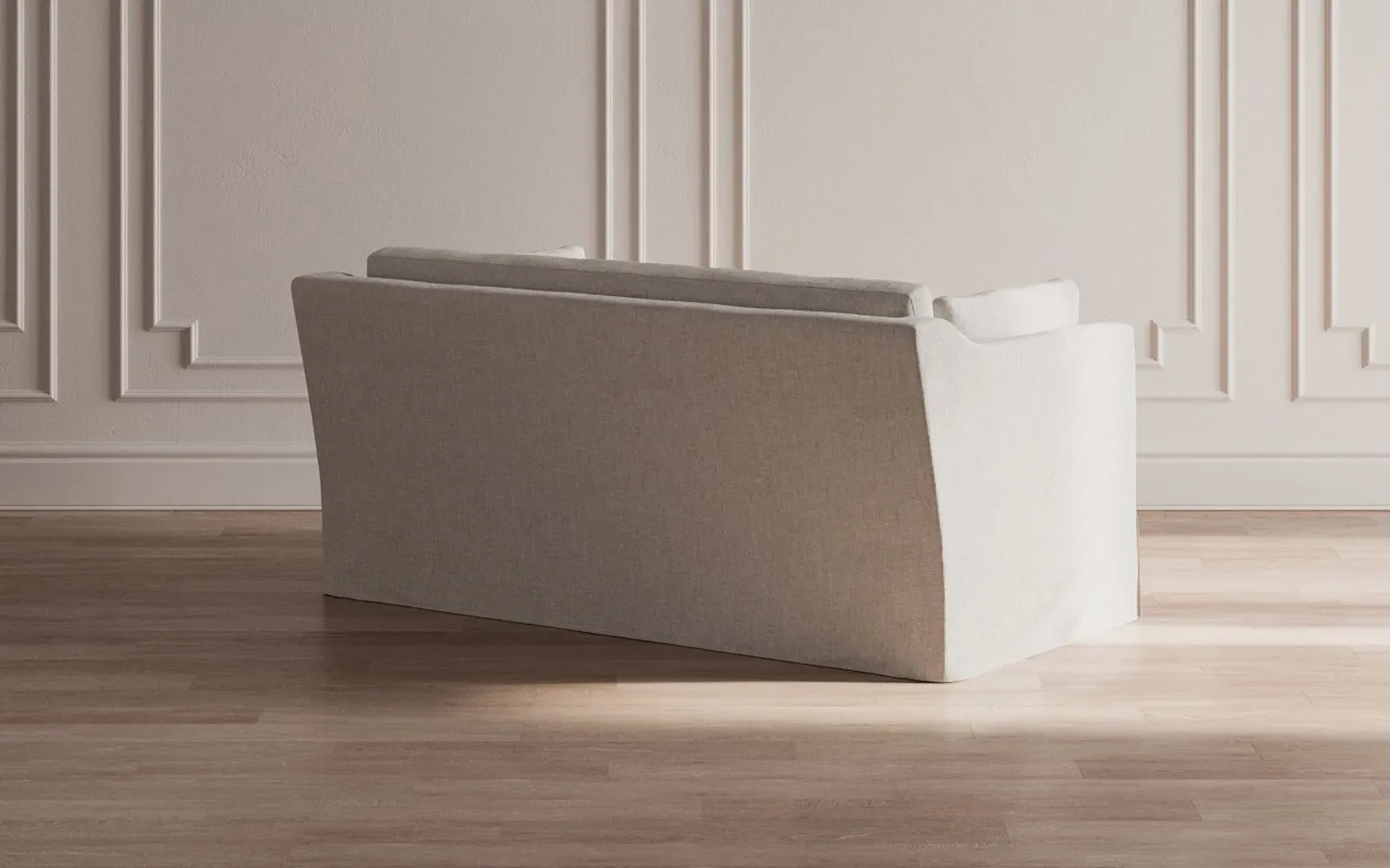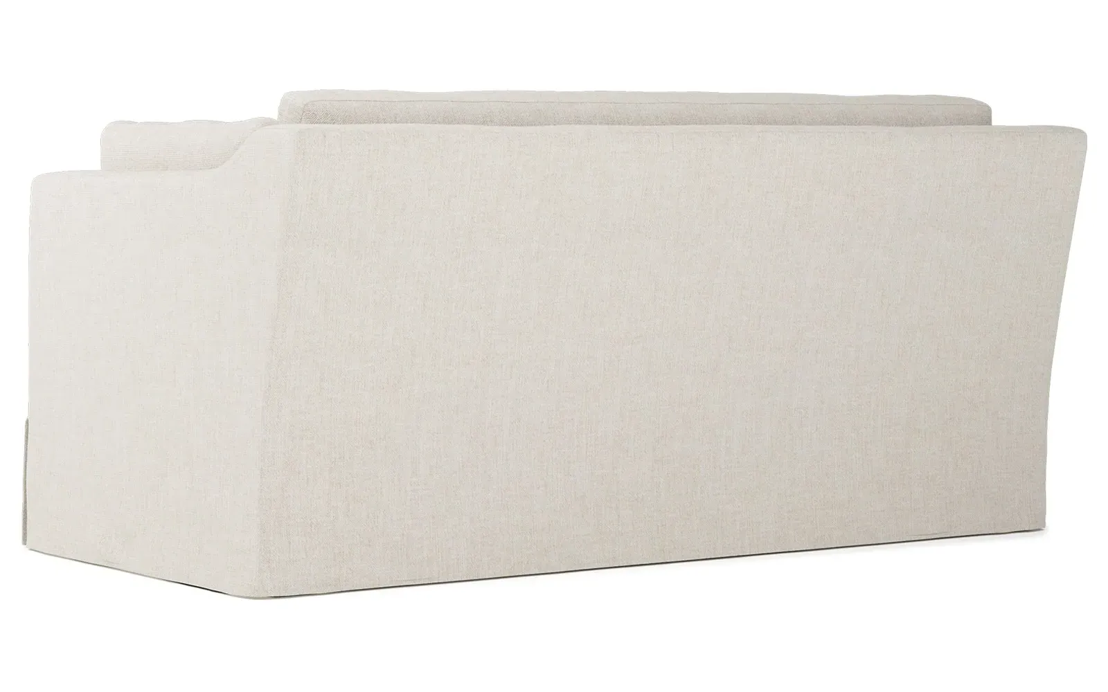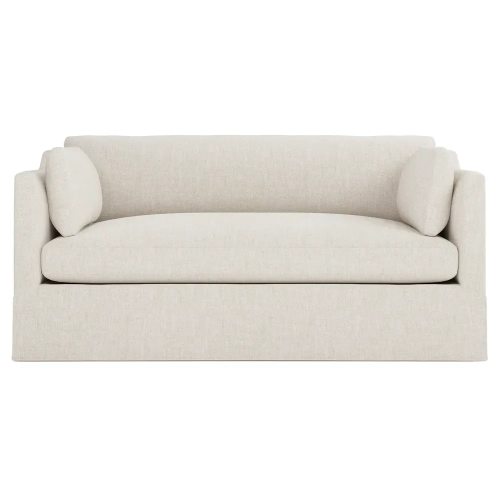 The Madeline loveseat combines clean lines with a balanced silhouette for relaxed versatility. Its seat cushion features a high-resiliency foam core wrapped with soft foam and filled with a blend of fiber, down, and feather for supreme comfort. Turned wood legs with brass casters in the front pair with curved legs in the back, while the solid kiln-dried hardwood frame ensures lasting durability. Bolster pillows flank the bench seat, and the channel-quilted casing keeps materials evenly distributed. W180 x D102 x H86 cm.