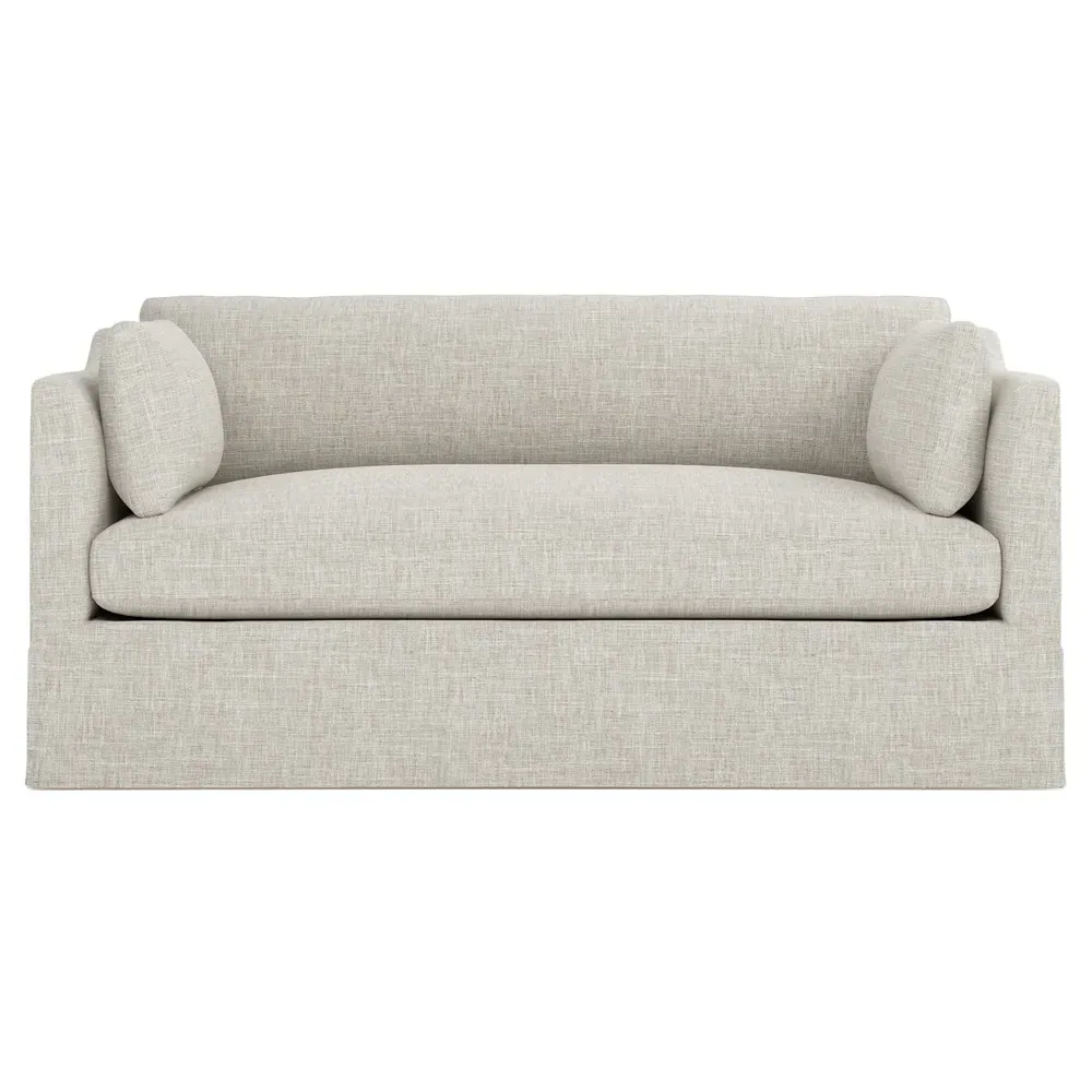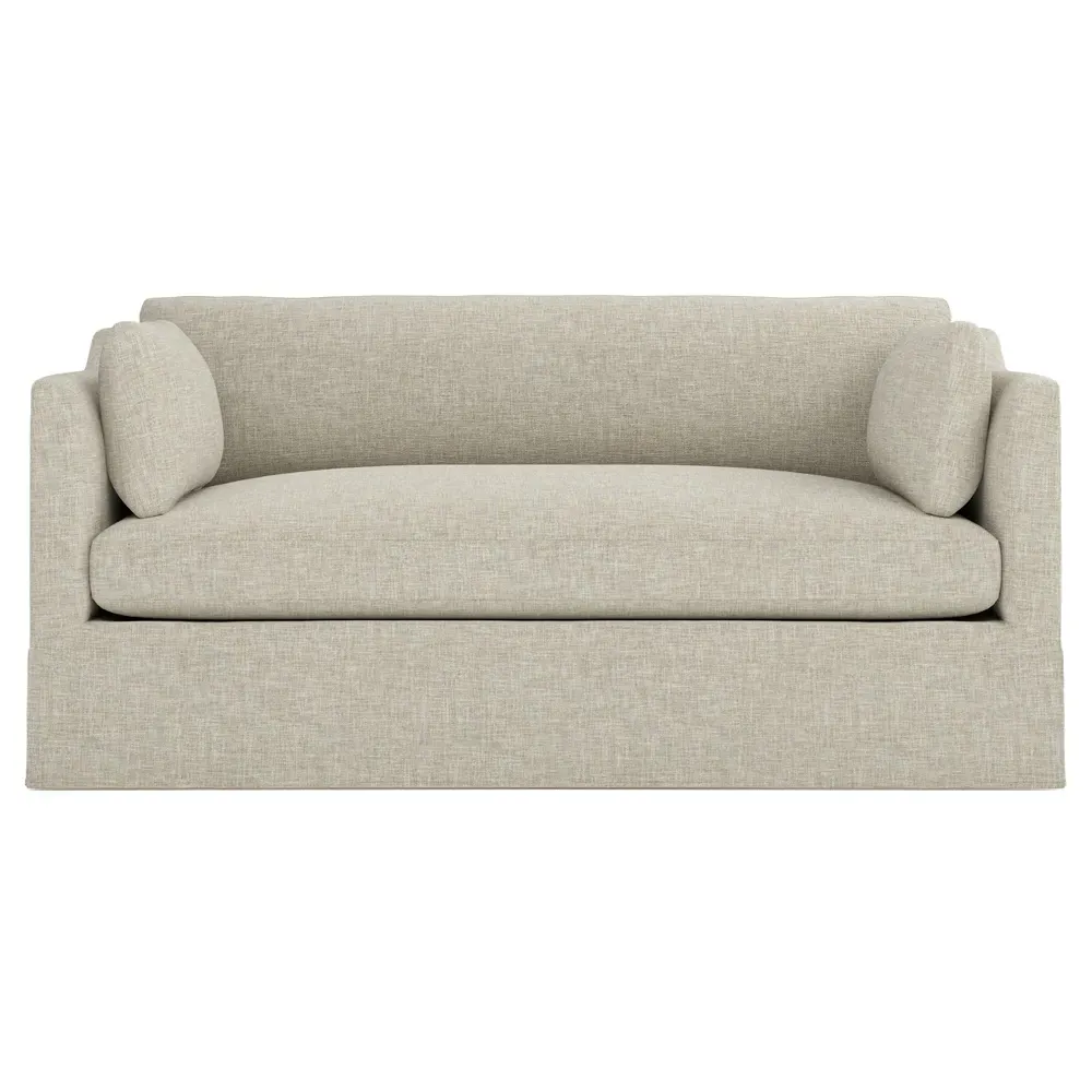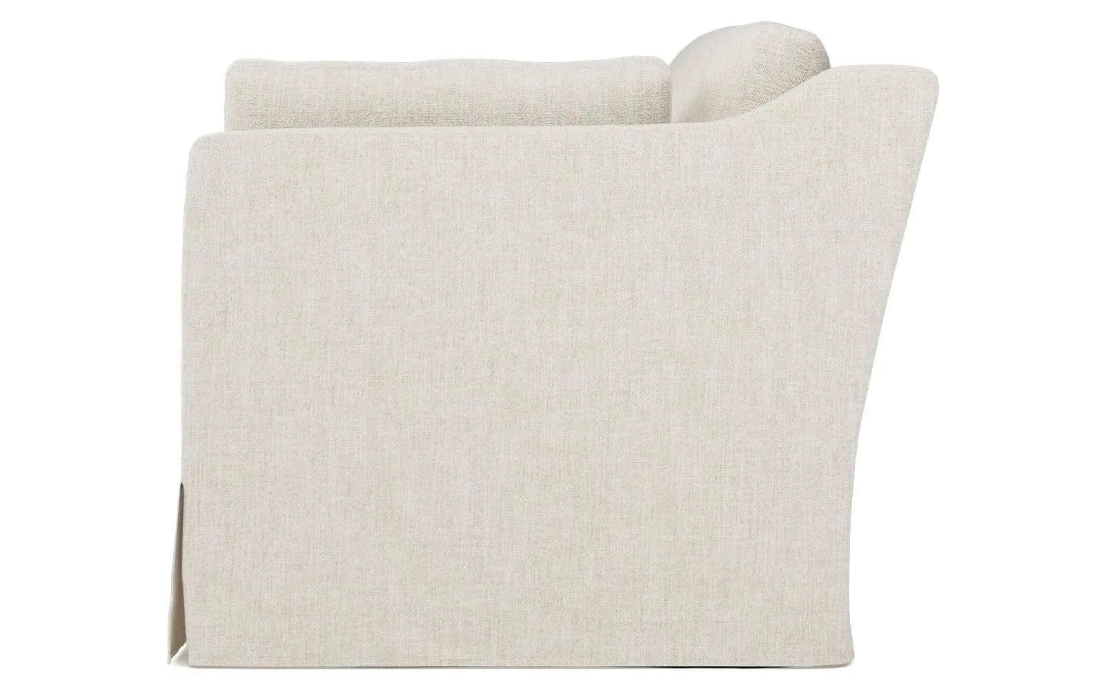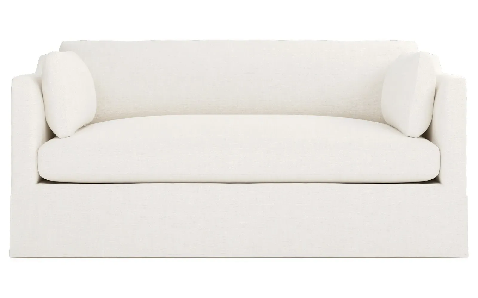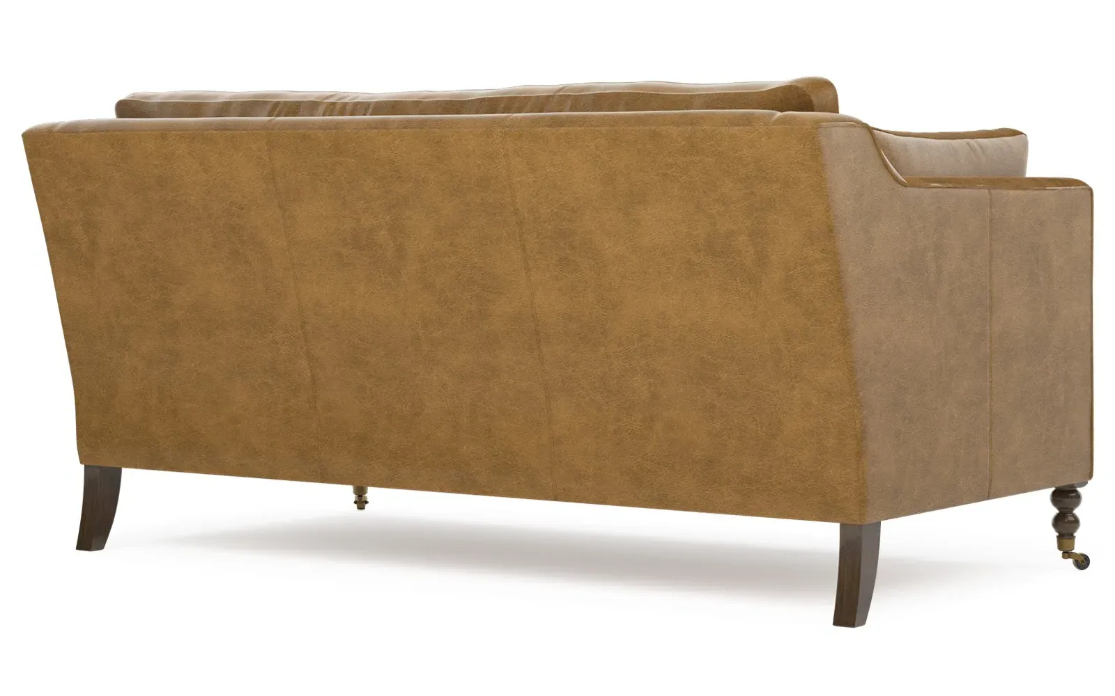 The Madeline loveseat combines clean lines with a balanced silhouette for relaxed versatility. Its seat cushion features a high-resiliency foam core wrapped with soft foam and filled with a blend of fiber, down, and feather for supreme comfort. Turned wood legs with brass casters in the front pair with curved legs in the back, while the solid kiln-dried hardwood frame ensures lasting durability. Bolster pillows flank the bench seat, and the channel-quilted casing keeps materials evenly distributed. W180 x D102 x H86 cm.
