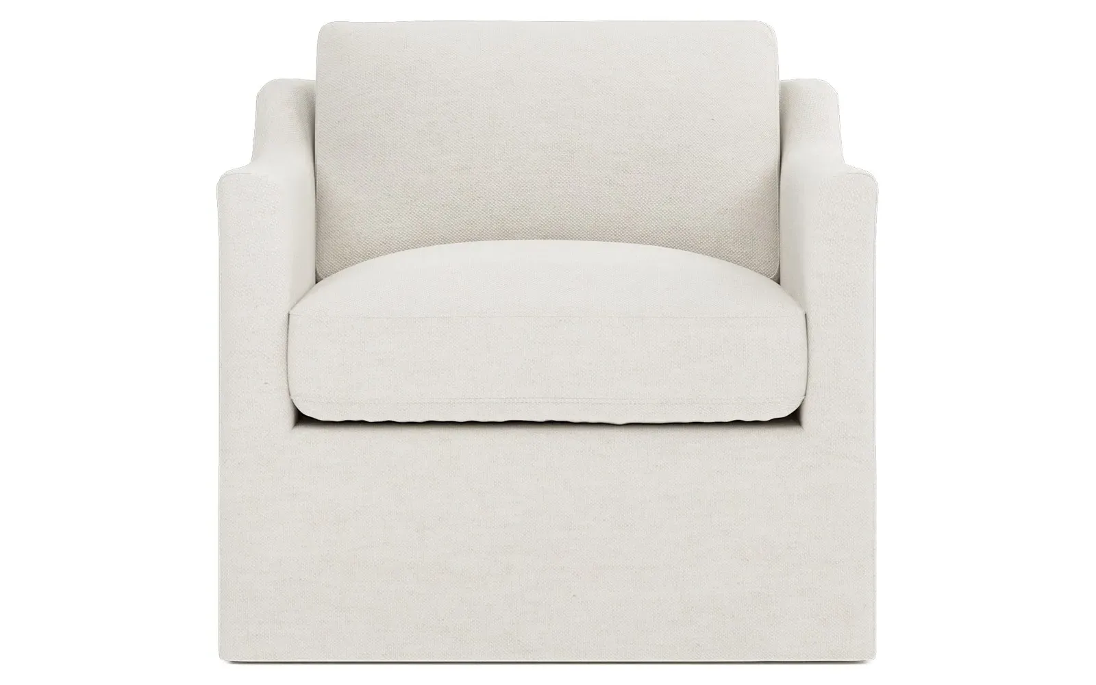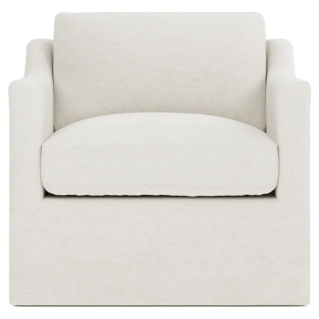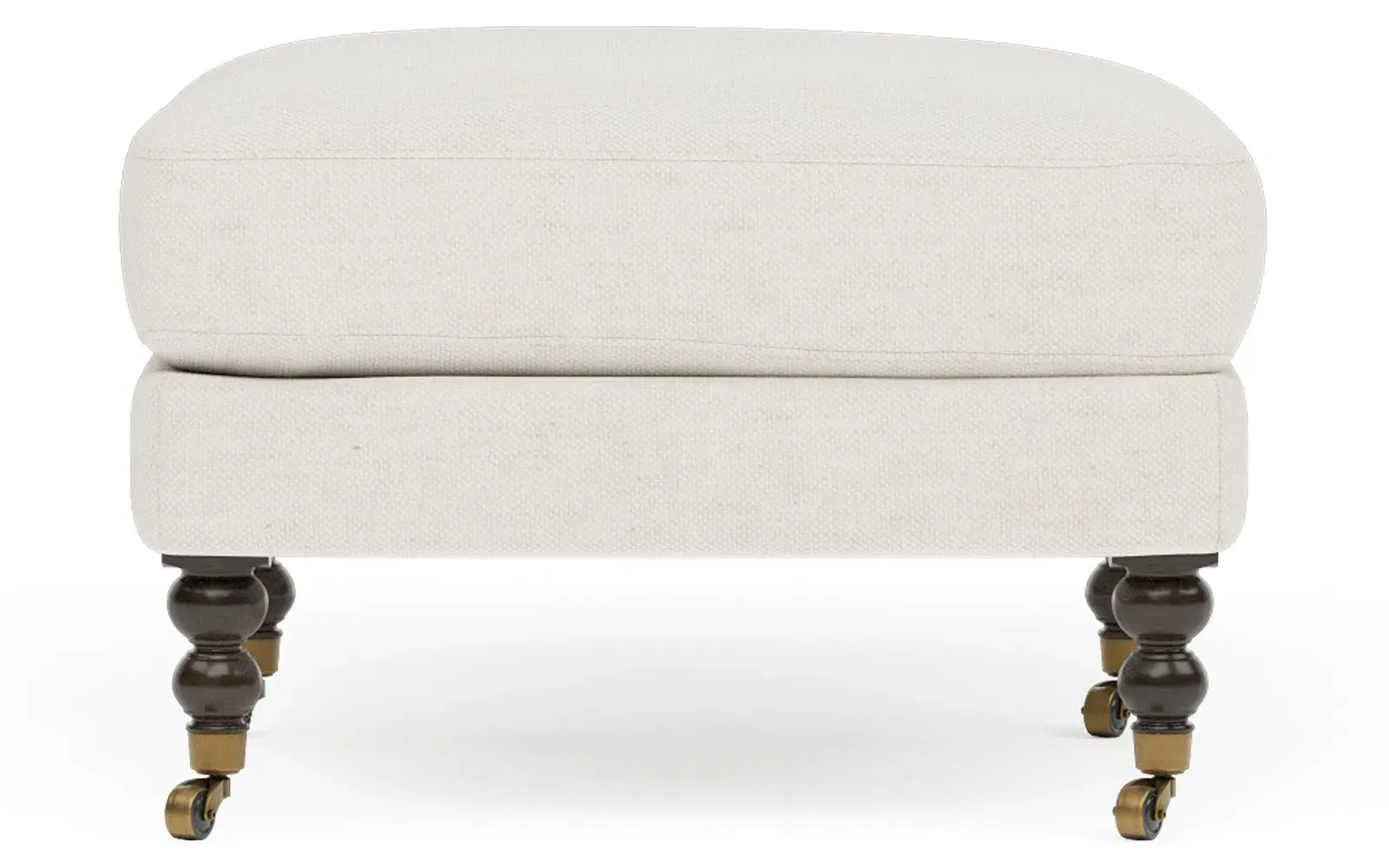 The Madeline slipcovered ottoman provides versatile seating and footrest functionality with its clean-lined design. Its cushion combines a high-resiliency foam core with fiber, down, and feather fill for plush yet supportive comfort. The webbing seat construction and corner-block frame joinery ensure structural integrity, while the washable slipcover offers easy care. The FSC-certified hardwood construction features mortise and tenon joints for long-lasting stability. W69 x D58 x H48 cm.